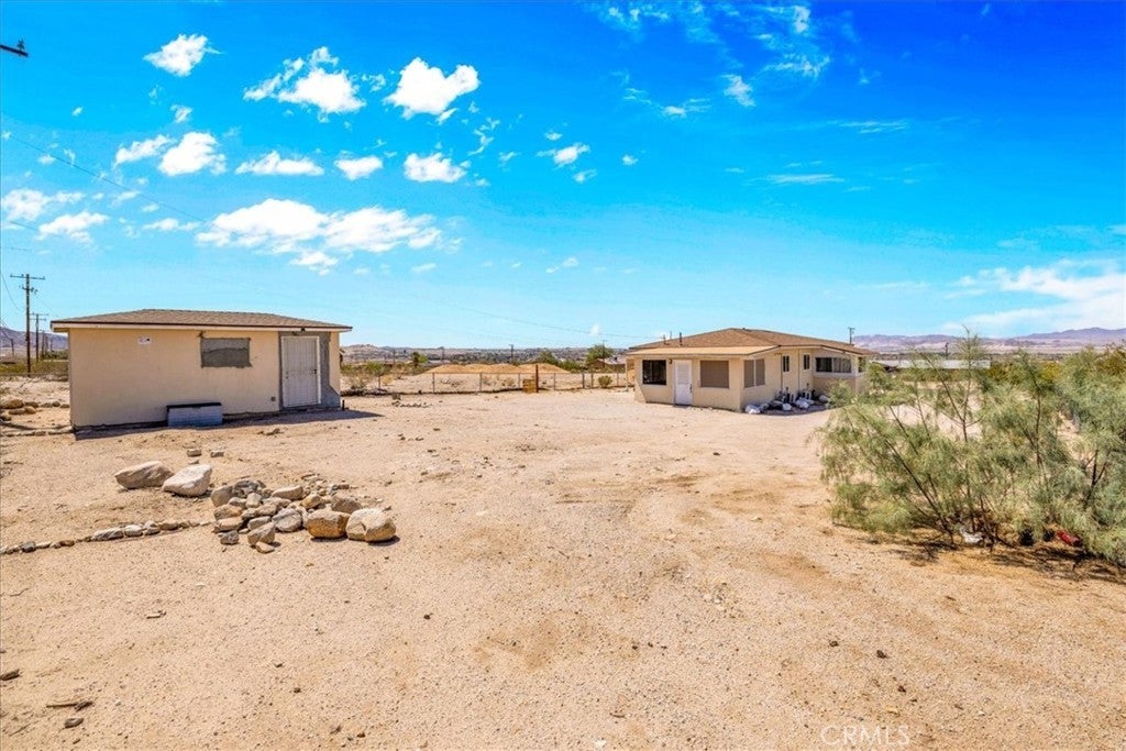 Amazing Deal! Located on over 1/2 an Acre, on a corner lot with a Detached Casita that is equipped with electric! This fantastic Home has a New Roof, New Dual Pane Vinyl Windows, Mini-Split Air Conditioning Units and More! Perfectly located near the East Entrance to the Joshua Tree National Park! A shaded, charming Patio welcomes all that enter. Beyond the frosted full-light French Door you will be delighted to find a sizable Livingroom with expansive view windows. The interior has been updated in cool tones throughout. New flooring has been installed. Its official fancy name is “Vatican Travertine Stone-look Life-proof/Waterproof Vinyl Tile” and it was specially chosen for its durable qualities and aesthetics. The windows have been upgraded with dual-pane vinyl windows, which is a huge bonus and energy saver! Mini-split Air Conditioning/Heat Pumps have been installed in the Livingroom and both Bedrooms for year-round comfort! Attractive sliding barn door offers separation from the Kitchen area and allows for zoned cooling and heating options. Granite countertops adorn the Kitchen, which offers more storage in the adjacent Laundry Room. Indoor Laundry is always a plus in the Desert! A convenient door leading to a covered carport is a bonus for unloading your car after shopping. The Bathroom has been updated in marble-look tile and backsplash surrounding the vanity. The bathroom is partitioned for privacy and convenience. Both Bedrooms offer ample space. The rear Bedroom has a huge walk-in closet with plenty of natural light. The rear Bedroom also offers a private entry onto a large, fully enclosed, screened patio at the rear of the home. Everyone loves a screened patio hang out! Behind the home is a detached stucco casita that is currently being used for storage but think of all of the possibilities for your own use! Make this your very own art studio, Yoga room, craft haven or workshop! Perfectly located only 3.2 miles to the Entrance Gate to the National Park, and only 1.2 miles to the Tortoise Rock Casino. If you have school-aged children, Palm Vista Elementary School is within walking distance, making it convenient in location. With so many bonuses, do not hesitate to call your Agent today!