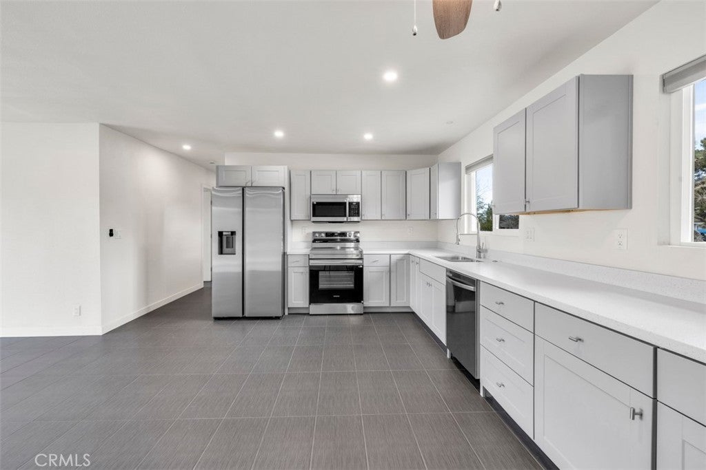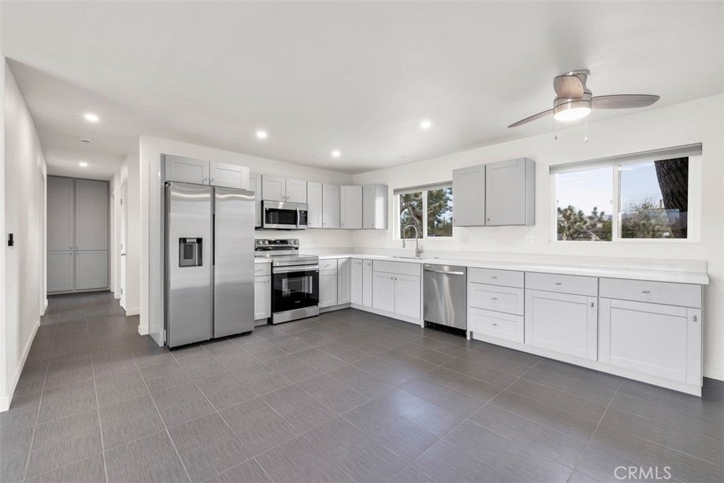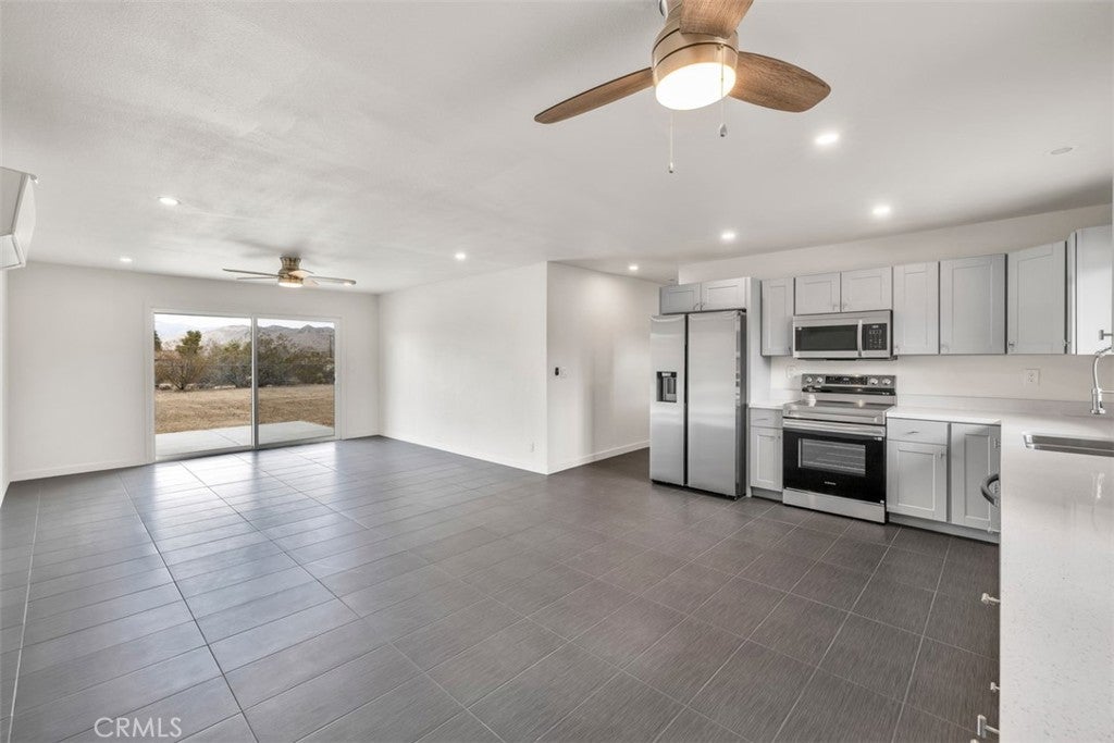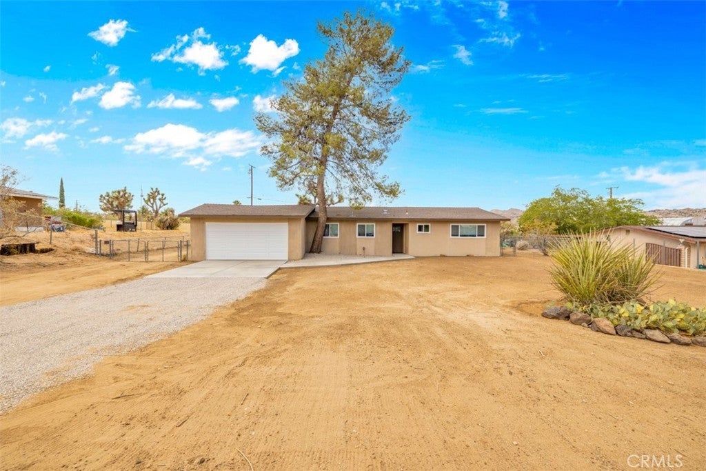 Back on the Market – Buyer Couldn’t Perform! Modern Desert Living with Mountain Views This fully renovated 3-bedroom, 2-bath home in the heart of Yucca Valley is back on the market and ready for its next buyer! Featuring a bright, open floor plan filled with natural light, this move-in-ready home combines style, comfort, and desert charm. The modern kitchen showcases brand-new cabinetry, quartz countertops, and new stainless steel appliances—including a stove, dishwasher, and refrigerator—all complemented by fresh interior and exterior paint. The living areas are spacious and inviting, with new sliding doors that open to desert views. The Jack-and-Jill bathrooms feature updated vanities and new tile flooring, adding a modern touch throughout. Situated on a 0.41-acre fully fenced lot, the property offers plenty of space for outdoor living, entertaining, or even adding a pool. Additional highlights include a large 2-car garage with laundry hookups, an oversized hot water heater, and ample parking for RVs or desert toys. The backyard is ideal for relaxing under the stars or hosting gatherings with family and friends. Located just minutes from Joshua Tree National Park, Pioneertown, local restaurants, and schools, this home offers the perfect balance of quiet desert living and modern convenience. With no short-term rental restrictions, it also presents an excellent investment or Airbnb opportunity. Don’t miss this chance to own a beautifully updated desert home with mountain views—schedule your private showing today!