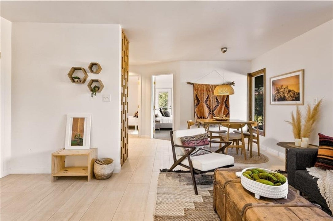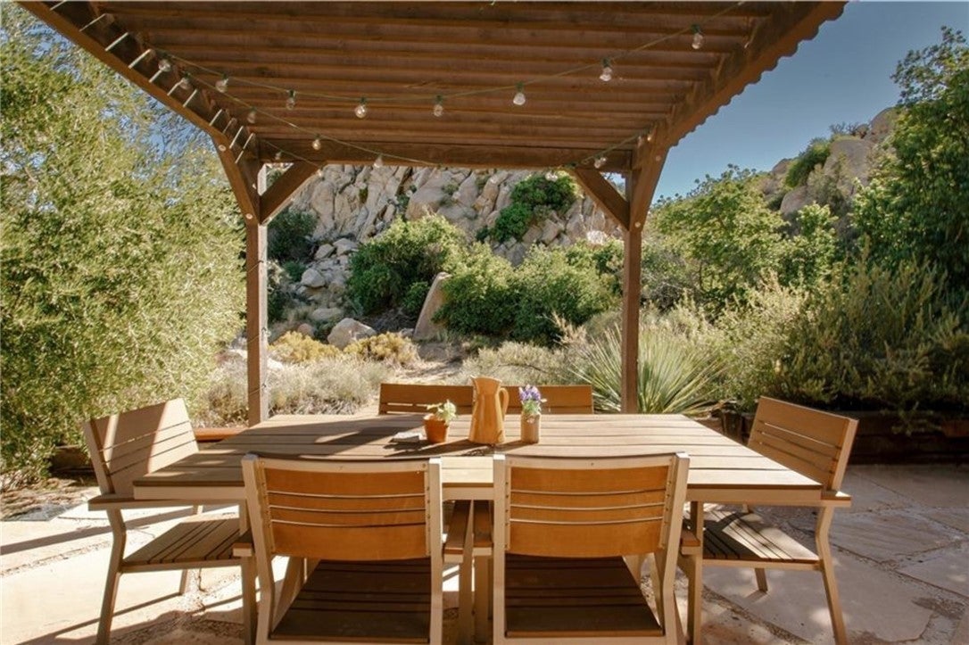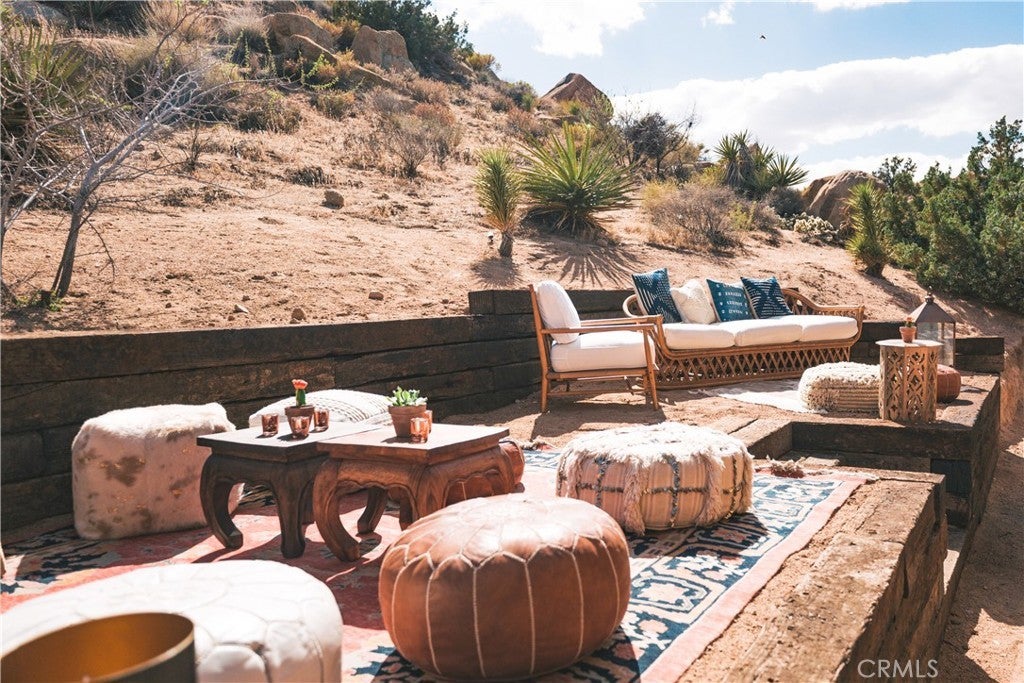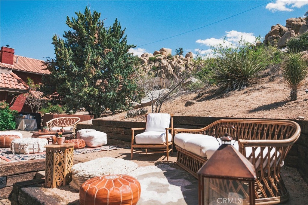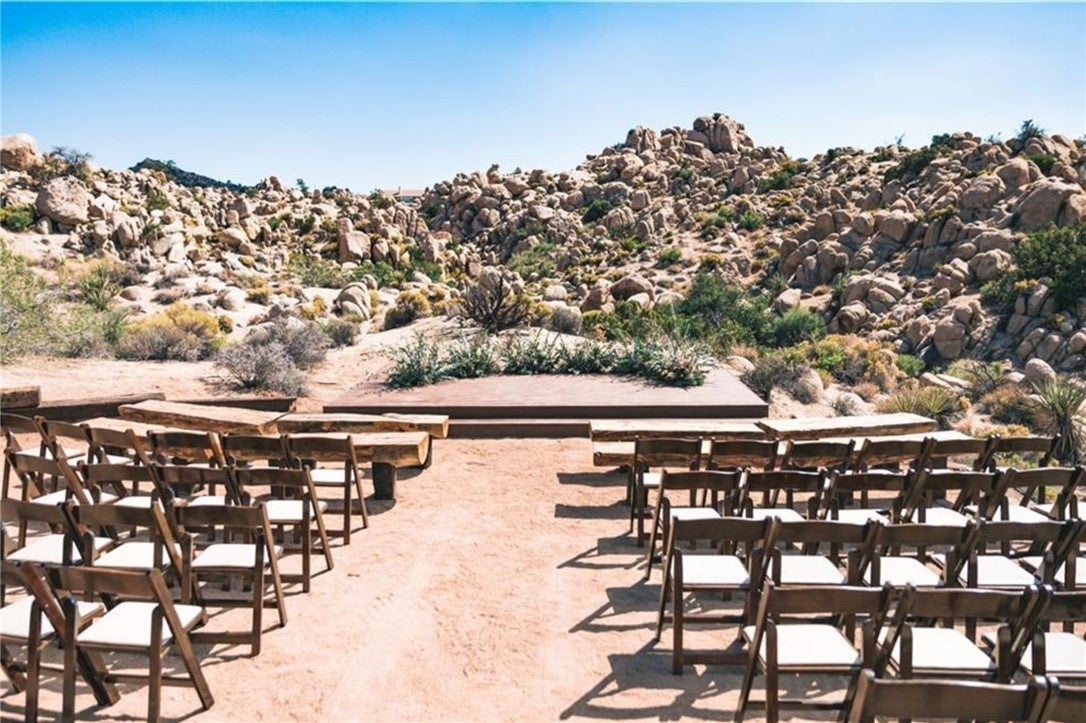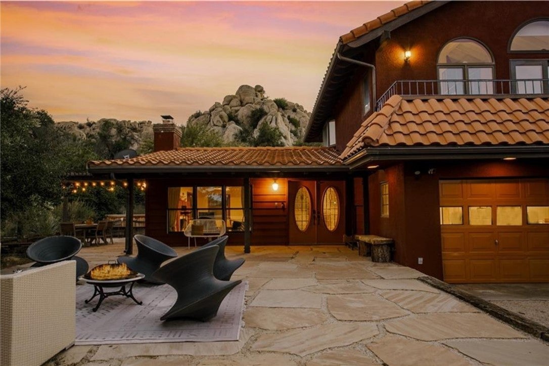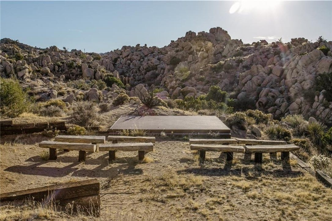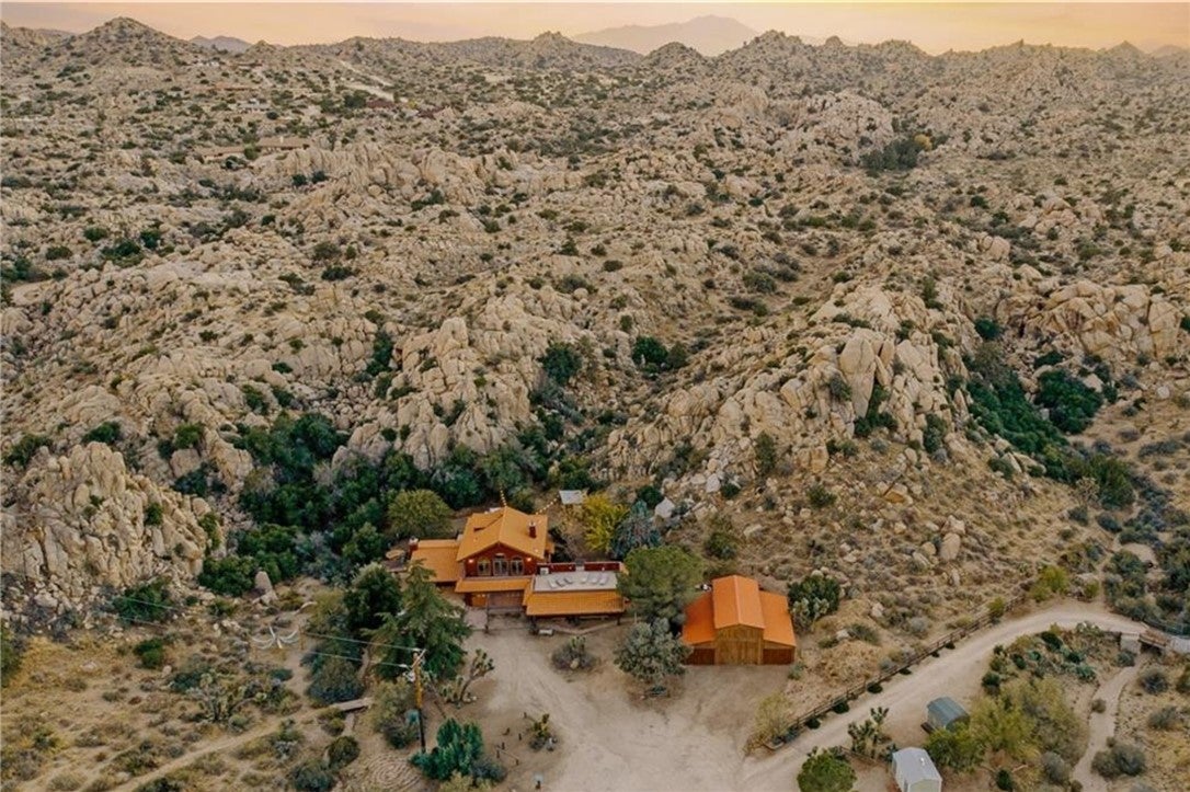 Welcome to Boulder Grove Ranch, an ultra-private 8+ acre estate carved into a secluded canyon of iconic boulders and sweeping desert vistas. This design-forward compound features a sophisticated two-story main residence with a spacious primary suite and guest loft, plus a semi-detached guest house with its own private entrance. Elevated on the edge of two private boulder valleys, the property offers commanding views and a sense of quiet grandeur. Curated interiors blend modern minimalism with rustic textures and bohemian warmth, creating a refined yet relaxed aesthetic. Purposefully reimagined as a luxury escape and part-time rental, Boulder Grove Ranch has hosted magazine-worthy weddings, high-end photo shoots, and intimate gatherings beneath the stars. Amenities include a cedar soaking spa perched among the rocks, an architecturally striking barn and deck built into the boulders, and a network of trails and gathering spaces with artful signposts guiding you through the landscape. Now eligible for wedding venue use with permit (buyer to verify), the estate offers exceptional potential for both lifestyle and income. Add a pool (see digital rendering in property photos) and maximize the potential this exceptional property has to offer! Secluded feeling yet a short 7 minute drive to Yucca Valley’s shops and dining, and easy access to Joshua Tree National Park & Palm Springs. Spanning three legal parcels and enveloping most of the surrounding cul-de-sac, this is a truly rare opportunity to own one of the High Desert’s most iconic private retreats.