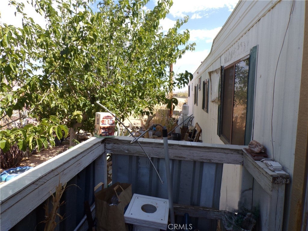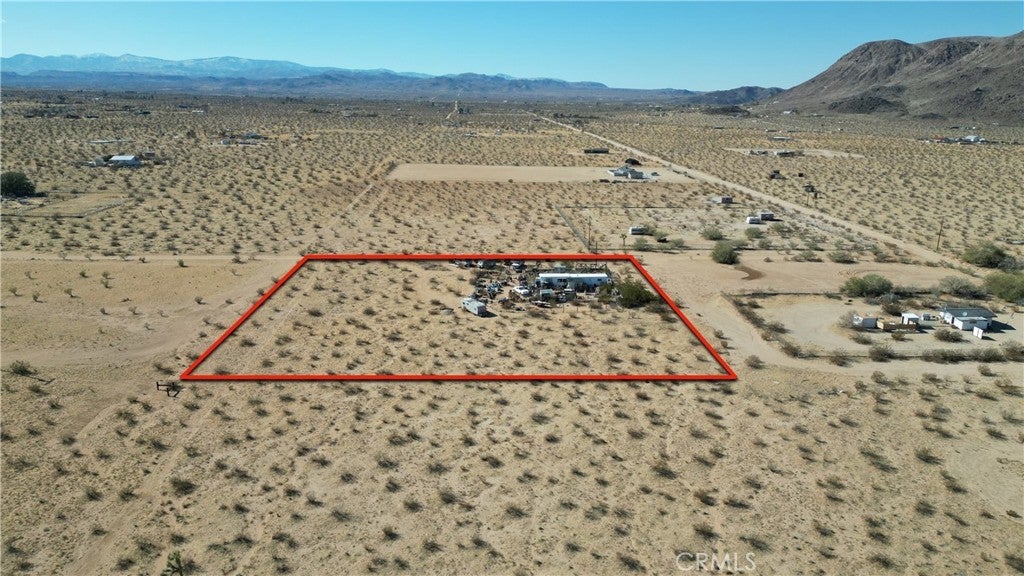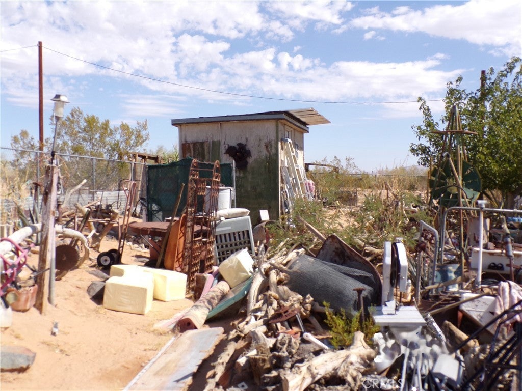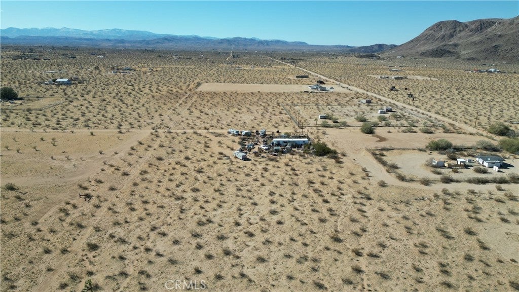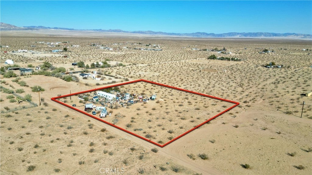 Look beyond the vast collection of clutter, seller will deliver this property cleaned up and vacant! Endless Potential on 2.5 Scenic Acres! This 2-bedroom, 1-bath mobile home has picturesque panoramic desert views and room to grow. A bonus room offers flexible space—ideal for a home office, studio, or potential third bedroom. While the home is a true fixer-upper, it has solid bones with both electric and water meters already in place, providing a strong foundation for your vision. Located just a short drive from iconic local destinations like King of the Hammers, La Copine restaurant, downtown Joshua Tree, and Joshua Tree National Park, this property is perfect for those looking to renovate, build new, or invest. Whether you're dreaming of a desert getaway, full-time residence, or income property, the possibilities are wide open.