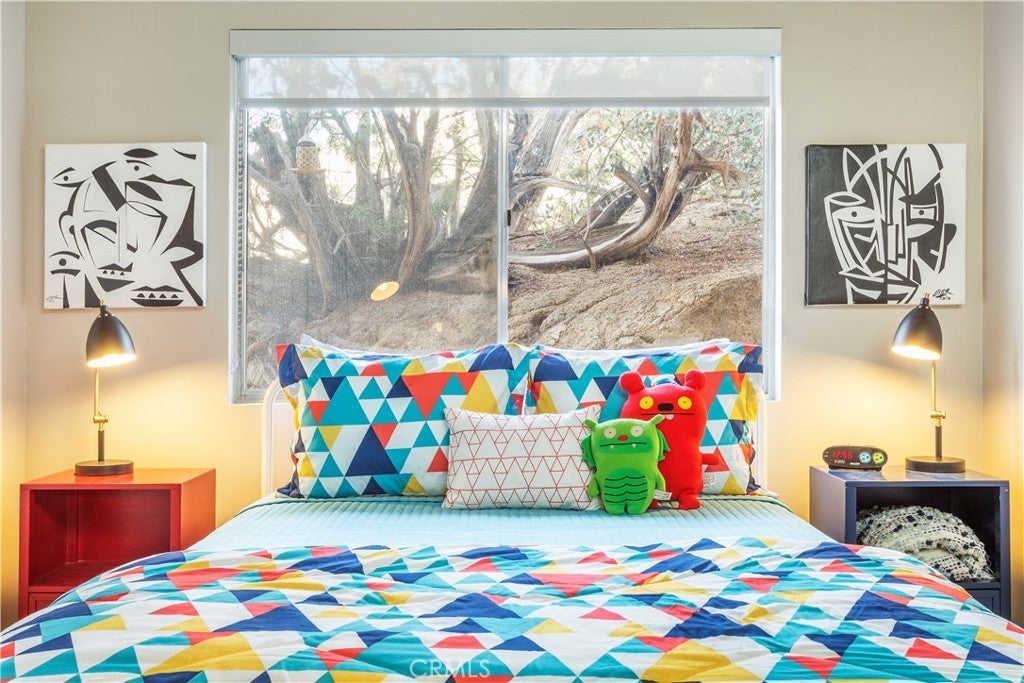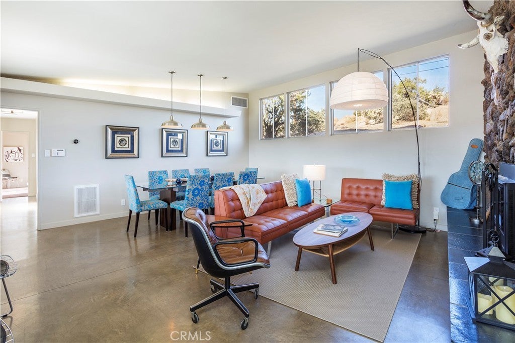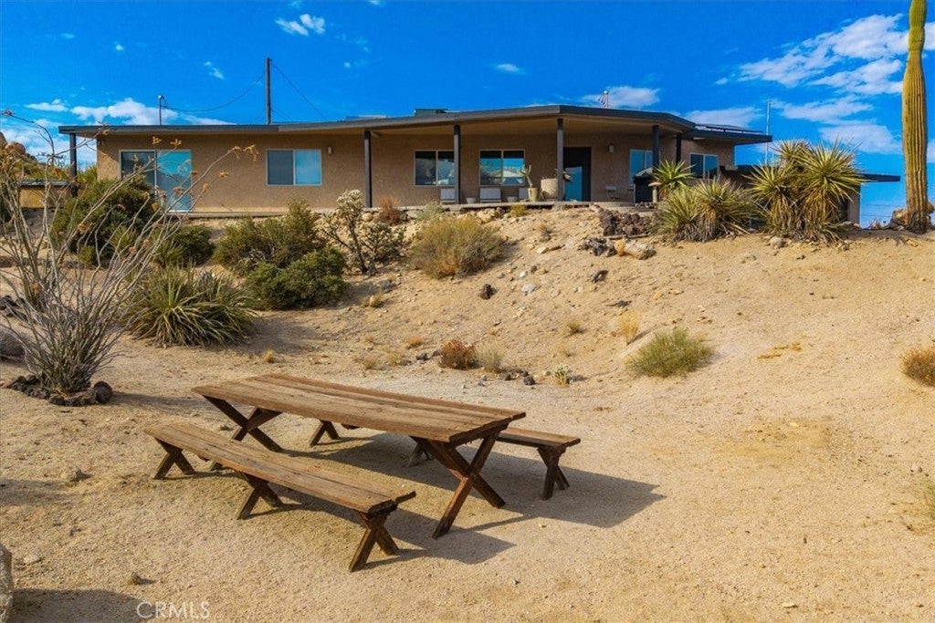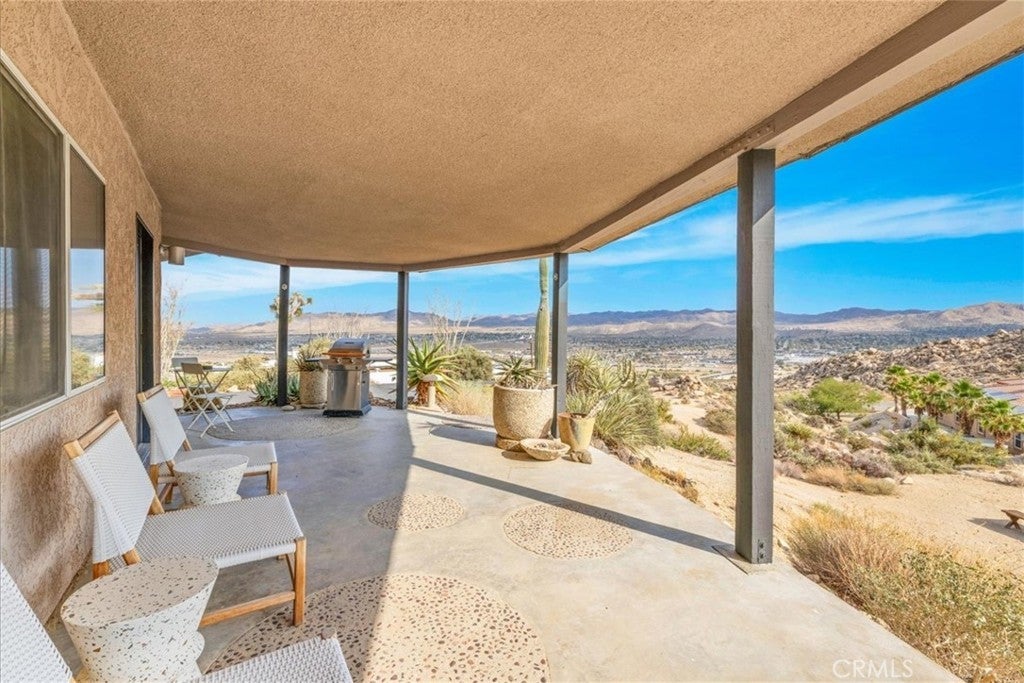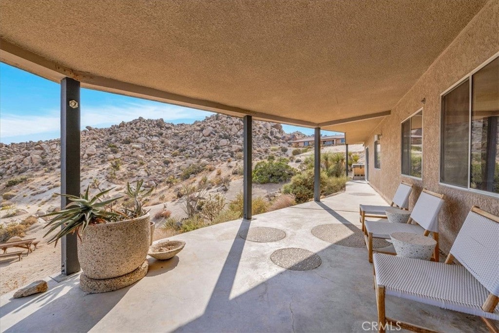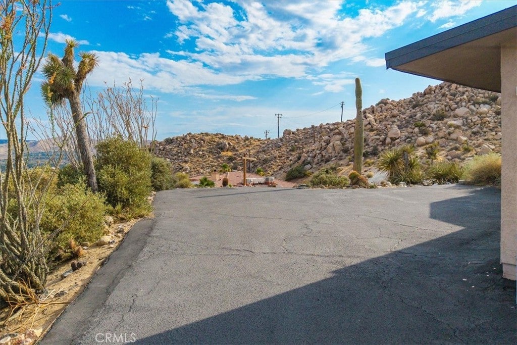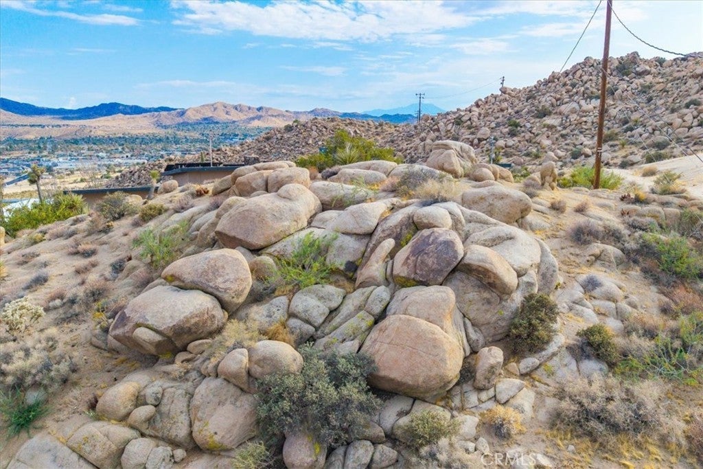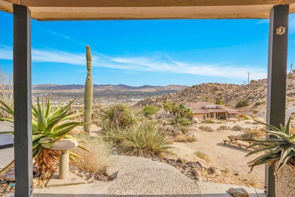 Tucked high in the coveted Western Hills Estates of Yucca Valley, this 2 bedroom, 1 bath gem offers privacy, perched among boulders with sweeping panoramic views and PAID/OWNED SOLAR. A long, private driveway leads to a secluded desert sanctuary where nature, character, and comfort come together beautifully. Step inside to find a home full of vintage charm—original architectural details, warm charismatic finishes, and mid-century desert vibes that are complemented by thoughtful modern updates throughout including a well though out, and more than generous walk in closet. The home features windows that frame the surrounding rock formations and expansive valley views and native vegetation, creating a connection between indoors and out. Outside, enjoy the magic of the high desert from a spacious patio ideal for entertaining, relaxing, or stargazing in total privacy. Whether you’re seeking a peaceful full-time residence, weekend escape, or a unique vacation rental, this one-of-a-kind property offers the perfect blend of retro charm, modern ease, and unmatched natural beauty. Just minutes from the heart of Yucca Valley and a short drive to Joshua Tree National Park, yet you feel a world away.