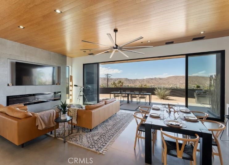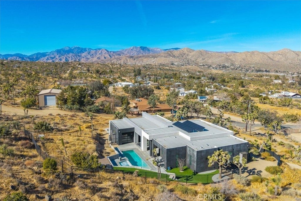 KING OF THE MOUNTAIN! Come and see this stunning modern retreat in Yucca Valley. Discover this exceptional 21-acre property, a true oasis that combines luxury and comfort in the heart of the desert. Spanning an impressive 2,089 square feet, this modern build boasts three spacious bedrooms and three beautifully appointed baths, making it ideal for families or anyone seeking a serene getaway. Step inside to find high ceilings that create an airy ambiance throughout the open kitchen and living areas. The kitchen is designed for both functionality and style, perfect for entertaining or enjoying quiet evenings at home. Cozy up by the fireplace in the living room, providing warmth and a touch of elegance during cooler desert nights. For fitness enthusiasts, the expansive garage includes a dedicated gym space, allowing you to maintain your workout routine without ever leaving the property. The three-car garage offers ample storage and convenience. Outside, indulge in your private in-ground pool and spa, perfect for cooling off during hot summer days or unwinding under the stars; surrounded by privacy fencing perched on top of a mountain. The stunning mountain views and unique desert landscape enhance the already picturesque setting, providing a truly tranquil experience. This property is not just a home; it’s a very successful vacation rental, making it a fantastic investment opportunity. Whether you're looking to escape to the desert or seeking a profitable venture, this Yucca Valley gem has it all.