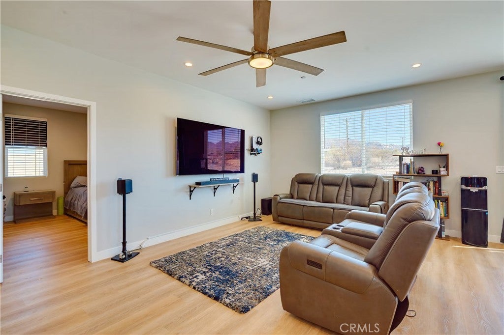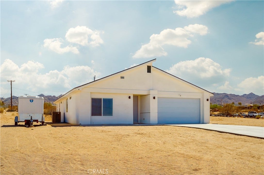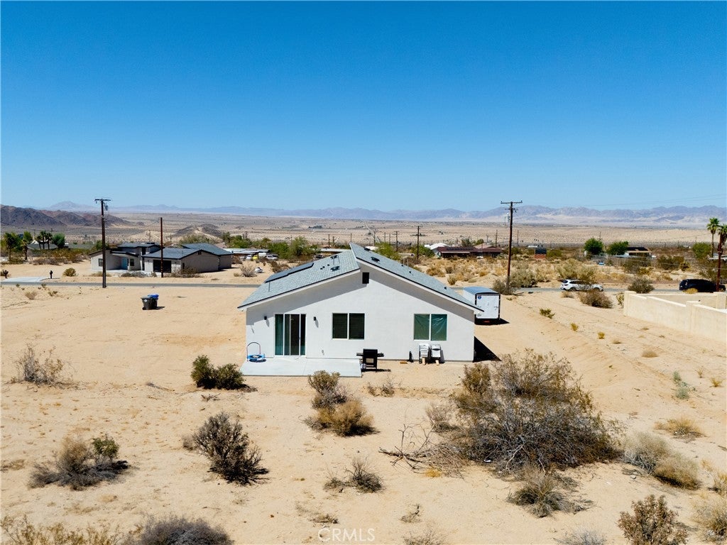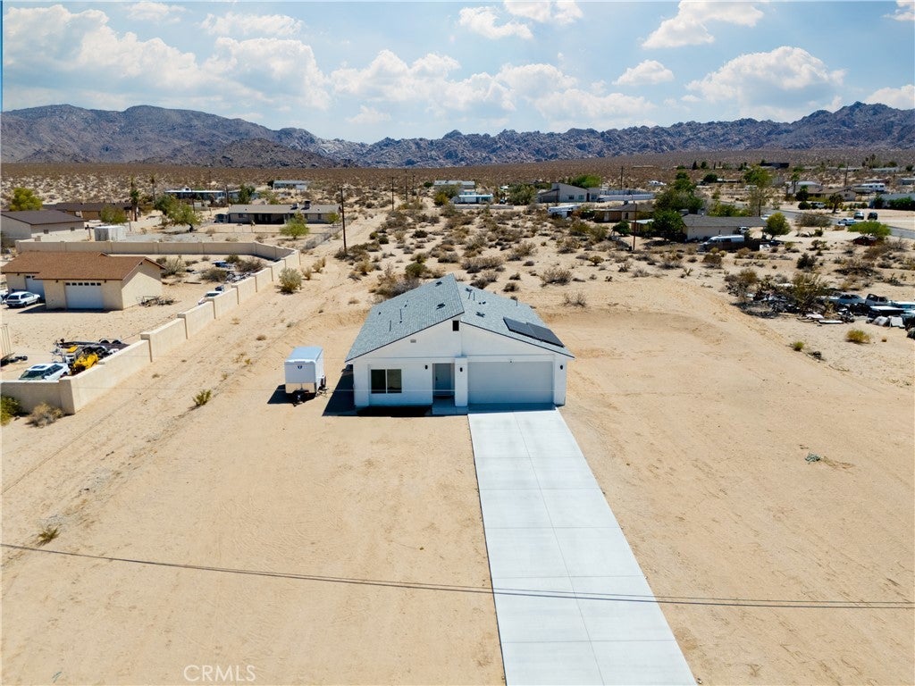 Let the Sun Shine! Modern Retreat in Indian Cove, 29 Palms This stunning 2023-built, 1,857 sq ft contemporary home in Indian Cove, 29 Palms, boasts 4 beds and 3 baths on a 1.1-acre lot with a modern split-level roof design that redefines possible. Step inside to dramatic high ceilings, sleek laminate flooring, and recessed lighting and natural light that flows and enhances the airy ambiance. The home is replete with energy-efficient windows and doors meeting California’s 2020 Title 24 standards. What else? Fully PAID OFF SOLAR SYSTEM to keep utility costs low, paired with enhanced insulation and fire suppression sprinklers to possibly lower the insurance bill and give peace of mind. The open-concept living room and kitchen blend modern design with warmth and comfort. The gourmet kitchen features modern appliances, quartz countertops, ample cabinetry, and a spacious pantry, ideal for entertaining. Bathrooms exude elegance with sleek fixtures and a spa-like serenity while the bedrooms are sunlit sanctuaries with large windows framing dramatic desert views. And what views we have in Indian Cove! Sunlight provides a daily light show both morning and evening. Ample closets and a two-car garage provide storage. This home is Impeccably maintained, with those high ceilings, recessed lighting, quartz countertops and a feeling of elegance, this is the finest home in 29 Palms on the market today. The lovely Indian Cove neighborhood is just 10 minutes from downtown 29 Palms shopping, 15 minutes to the USMC base, 15 minutes to the entrance of Joshua tree National Park and just an hour to the urban amenities found in Palm Springs. And there are hiking trails right in this neighborhood. 29 Palms is growing and the area offers outdoor adventures and cultural vibrancy and continues to be a destination from big cities. This beautiful home would be perfect as a primary residence, weekend getaway, or a solid investment—let the sun shine on your new chapter!