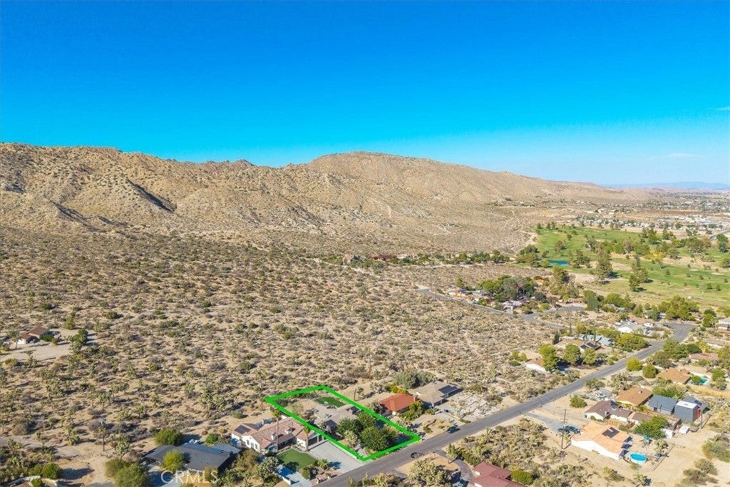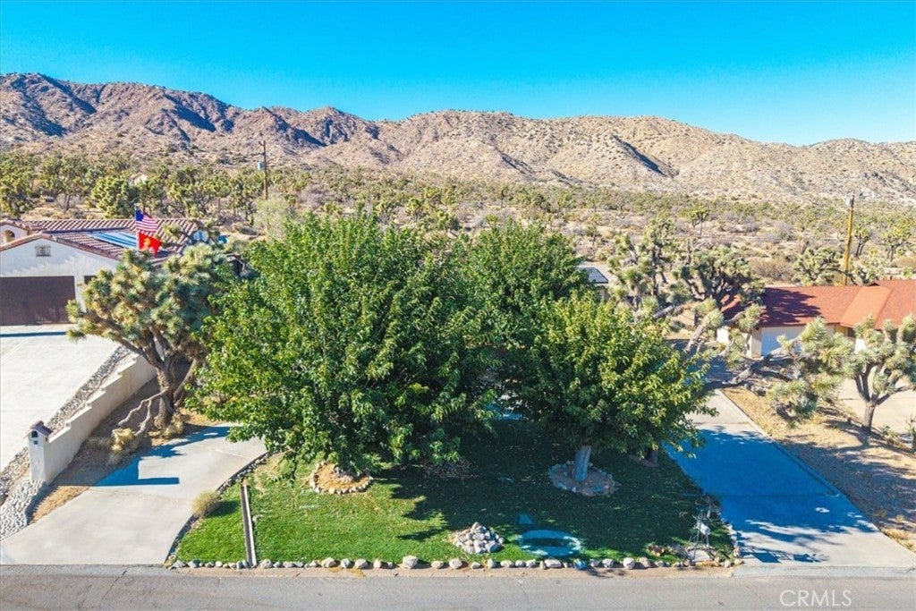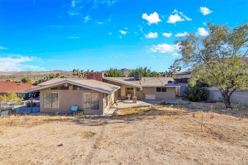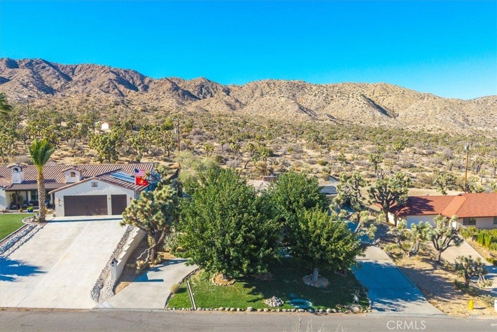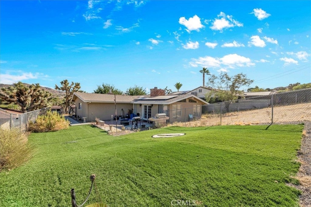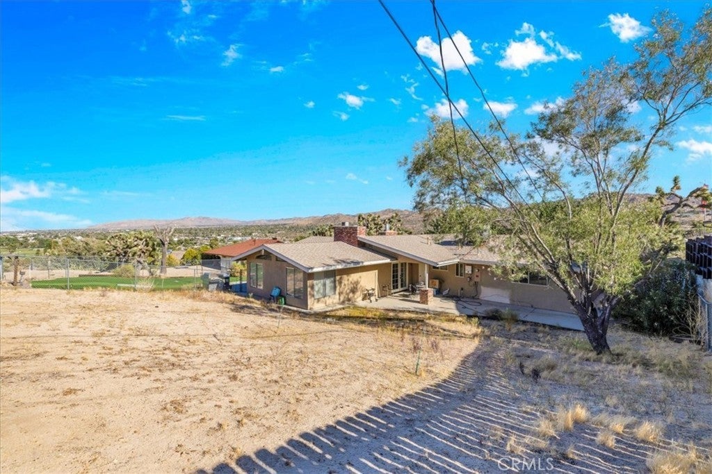 Welcome to your dream home in the beautiful Country Club area of Yucca Valley! This charming 3 bedroom, 2 bath home is nestled on just under 1/2 acre of meticulously landscaped grounds, offering the perfect blend of comfort and serenity. Upon arrival, you're greeted by a paved driveway leading to an attached 2 car garage, ensuring both convenience and ample parking space. Step onto the covered front porch and marvel at the stunning views. Inside, the expansive family room beckons with its large windows framing picturesque views and a cozy brick hearth fireplace, creating a welcoming ambiance. Soft carpeting underfoot adds a touch of luxury to this inviting space. The kitchen is a chef's delight, boasting tile countertops, stainless steel appliances, and abundant cabinetry for all your culinary needs. Adjacent to the kitchen, the dining room features a grand brick hearth with an indoor BBQ, seamlessly transitioning to the living room where you will find another fireplace on the side. The living room boasts beautiful wood beamed ceilings and French doors leading outside. Convenience meets functionality in the laundry room, complete with a second fridge for extra food and drink storage. The two guest bedrooms offer ample space and closet areas, while the guest bath features elegant tile countertops and a tiled tub/shower combo. Retreat to the generously sized primary bedroom, featuring its own attached bath for added privacy and comfort. Outside, the fenced backyard invites relaxation and entertainment with its breathtaking views, covered concrete patio, second brick patio, and a lush grassy area, perfect for kids and pets to play. With central heating and cooling ensuring year-round comfort, this home offers the ultimate in California desert living. Don't miss your chance to make this dream home yours! Schedule a showing to see this beauty for yourself.