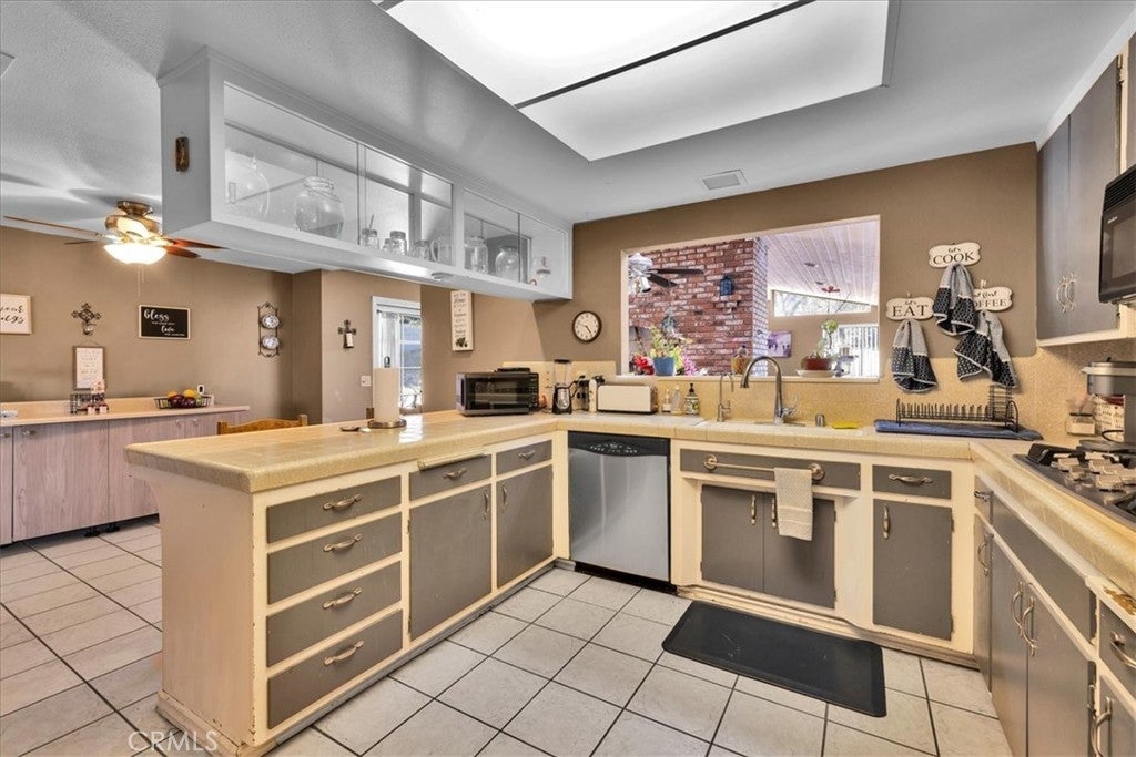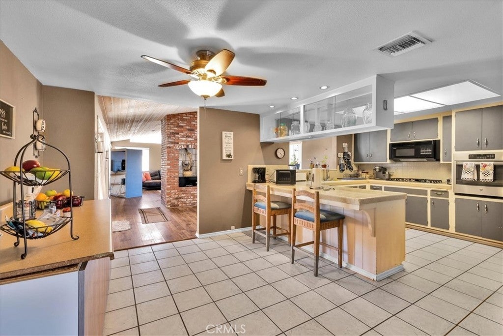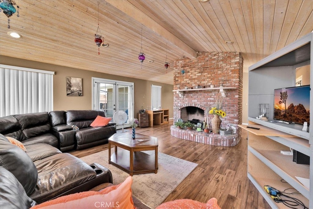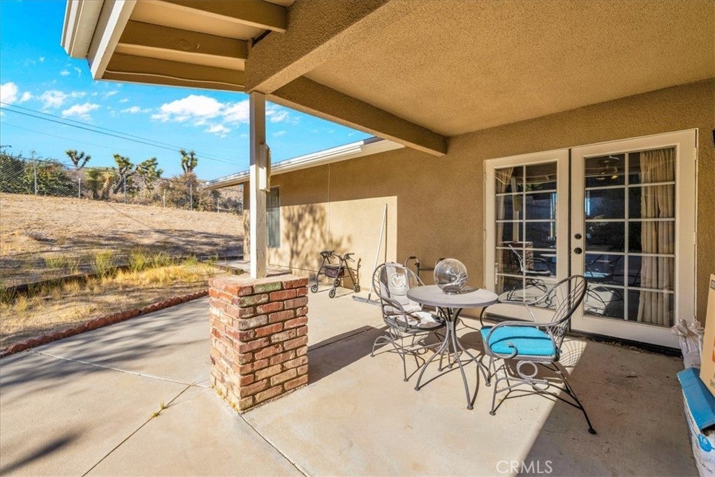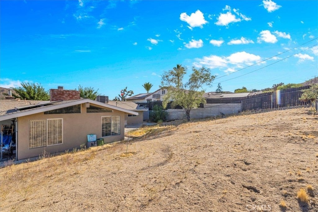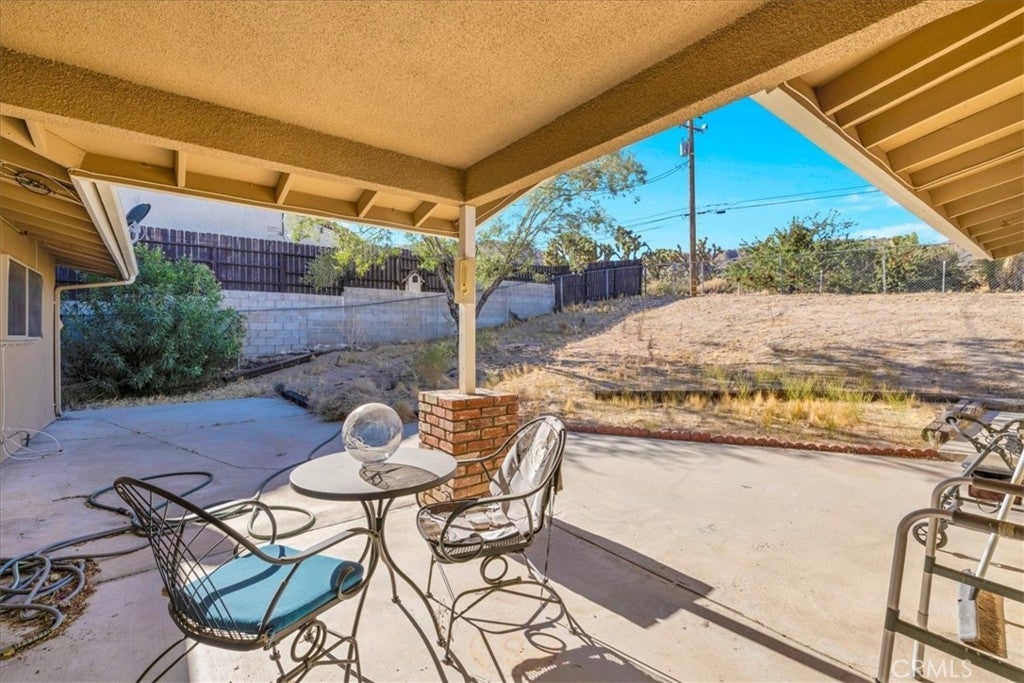 Welcome to your dream home in the beautiful Country Club area of Yucca Valley! This charming 3 bedroom, 2 bath home is nestled on just under 1/2 acre of meticulously landscaped grounds, offering the perfect blend of comfort and serenity. Upon arrival, you're greeted by a paved driveway leading to an attached 2 car garage, ensuring both convenience and ample parking space. Step onto the covered front porch and marvel at the stunning views. Inside, the expansive family room beckons with its large windows framing picturesque views and a cozy brick hearth fireplace, creating a welcoming ambiance. Soft carpeting underfoot adds a touch of luxury to this inviting space. The kitchen is a chef's delight, boasting tile countertops, stainless steel appliances, and abundant cabinetry for all your culinary needs. Adjacent to the kitchen, the dining room features a grand brick hearth with an indoor BBQ, seamlessly transitioning to the living room where you will find another fireplace on the side. The living room boasts beautiful wood beamed ceilings and French doors leading outside. Convenience meets functionality in the laundry room, complete with a second fridge for extra food and drink storage. The two guest bedrooms offer ample space and closet areas, while the guest bath features elegant tile countertops and a tiled tub/shower combo. Retreat to the generously sized primary bedroom, featuring its own attached bath for added privacy and comfort. Outside, the fenced backyard invites relaxation and entertainment with its breathtaking views, covered concrete patio, second brick patio, and a lush grassy area, perfect for kids and pets to play. With central heating and cooling ensuring year-round comfort, this home offers the ultimate in California desert living. Don't miss your chance to make this dream home yours! Schedule a showing to see this beauty for yourself.