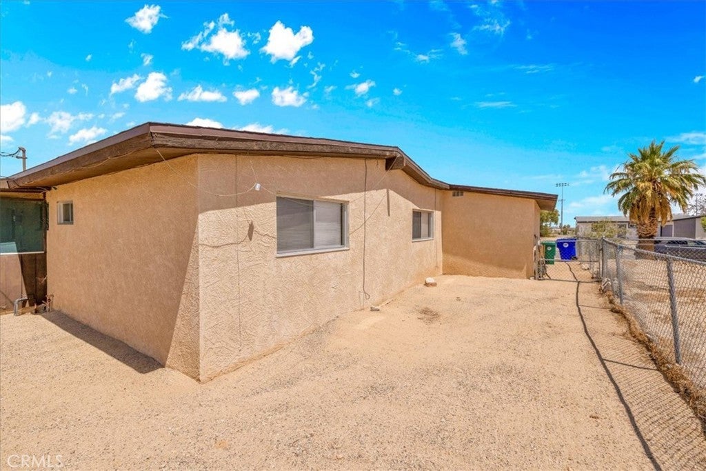 Charming Home in the Heart of 29 Palms! This inviting 3-bedroom, 2-bathroom home spans 1,328 sq ft and offers the perfect blend of comfort and convenience, ideal for first-time buyers or Investors. Step inside to discover a bright, open-concept living space with ample natural light, perfect for relaxing or entertaining. The kitchen with appliance's flows seamlessly into the dining area, while the versatile bonus room offers endless possibilities—think home office, playroom, or cozy den. Retreat to the spacious primary suite, complete with an en suite bath for added privacy. Two additional bedrooms provide plenty of space for family, guests, or rental potential. Outside, enjoy a fenced backyard with a covered patio, perfect for savoring warm desert evenings or hosting barbecues. The attached one-car garage offers convenience and storage, while the low-maintenance lot keeps upkeep simple. Nestled next to 29 Palms High School and just minutes from Joshua Tree National Park, local schools, and a vibrant shopping center, this home combines serene desert living with urban accessibility. Don't miss this turnkey gem—whether you're starting your homeownership journey or seeking an investment property, this home delivers unmatched value in a prime location. Schedule your tour today! Buyer to independently verify all MLS information, including, but not limited to, permits, property use, bedroom/bathroom counts, square footage, school districts, and enrollment availability. Buyer is strongly encouraged to conduct their own investigations and inspections to confirm the accuracy of all information provided.