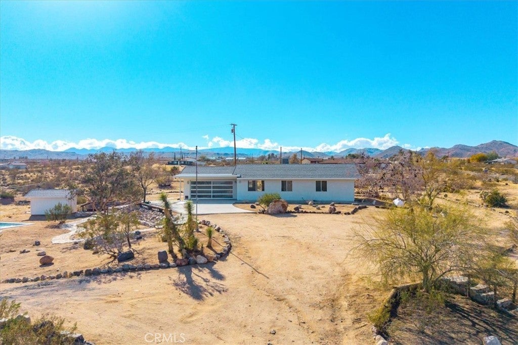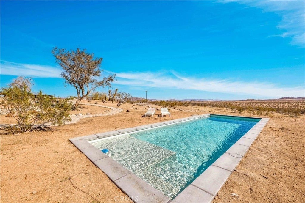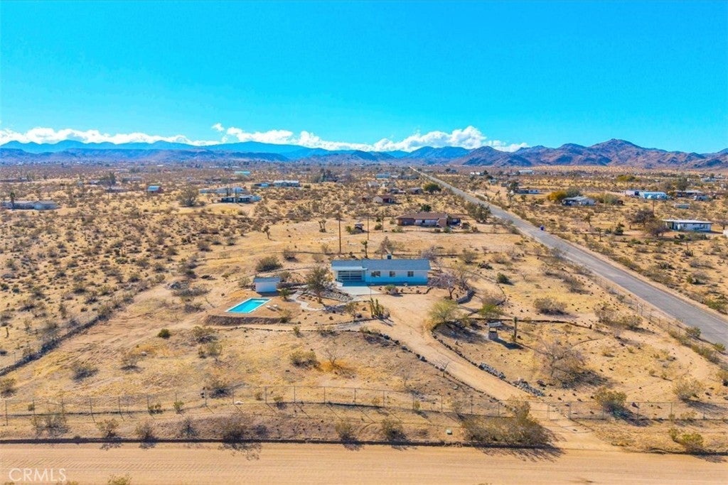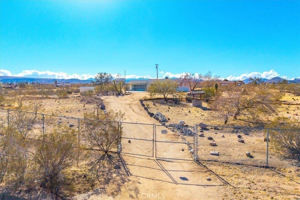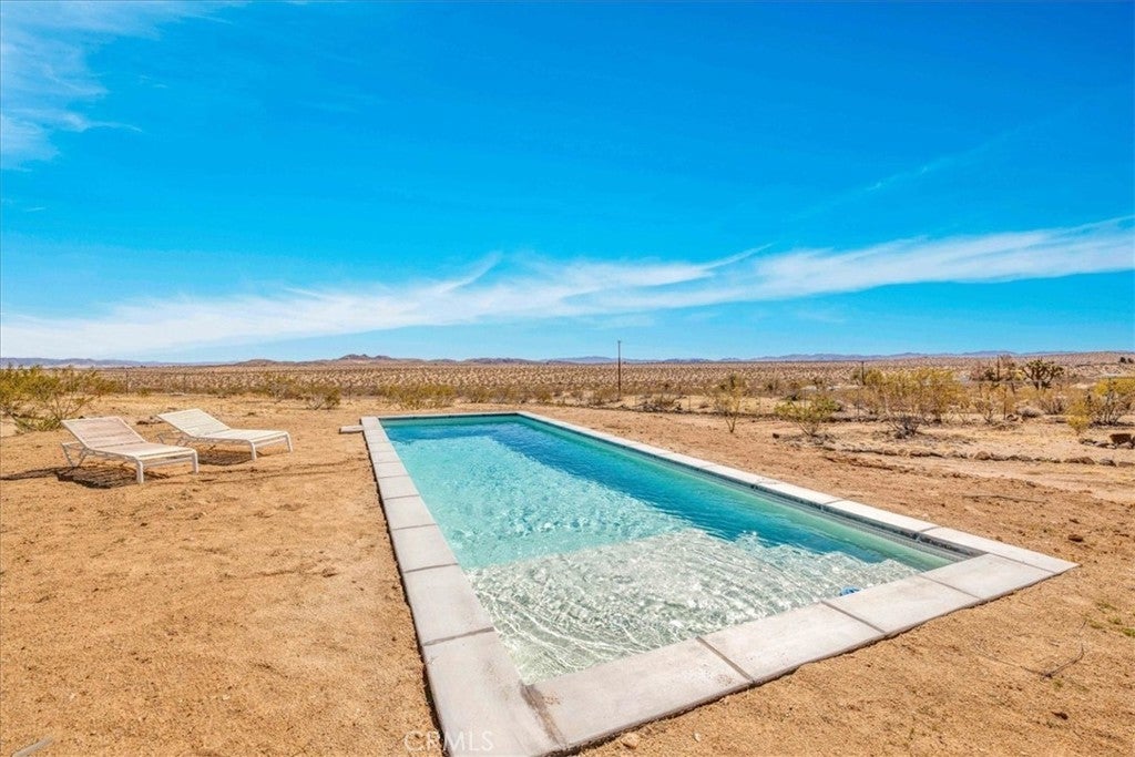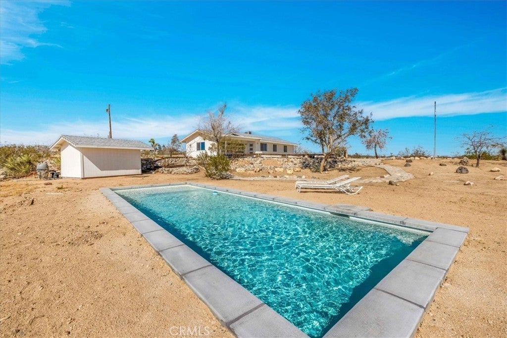 Come and make this charming Yucca Valley home with sweeping desert views your own. Perched on 2.02 acres of land, this delightful 3-bedroom, 2-bathroom home offers the perfect blend of seclusion and convenience. Built in 1985, this 988-square-foot property boasts an open-concept design, creating a bright and airy living space ideal for both relaxation and entertaining. Enjoy stunning, sweeping desert views right from your own yard while lounging by the sparkling inground pool. The property is fully fenced, providing privacy and a peaceful oasis. With desert landscaping, the home harmonizes with the natural surroundings, giving you that quintessential desert retreat feel. Conveniently located near all the local amenities in Flamingo Heights, this home is the perfect getaway or forever home for those seeking a serene lifestyle with easy access to nearby attractions and conveniences. Recent updates include a new garage door, paint, flooring, and pool enhancing the curb appeal and functionality. Whether you're looking for a vacation home or a full-time residence, this property offers the ultimate desert living experience. Seclusion, comfort, and breathtaking views await you. Don't miss the opportunity to make this your own!