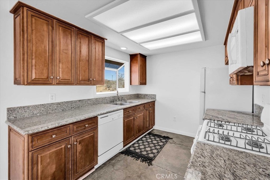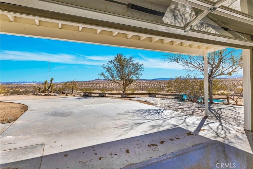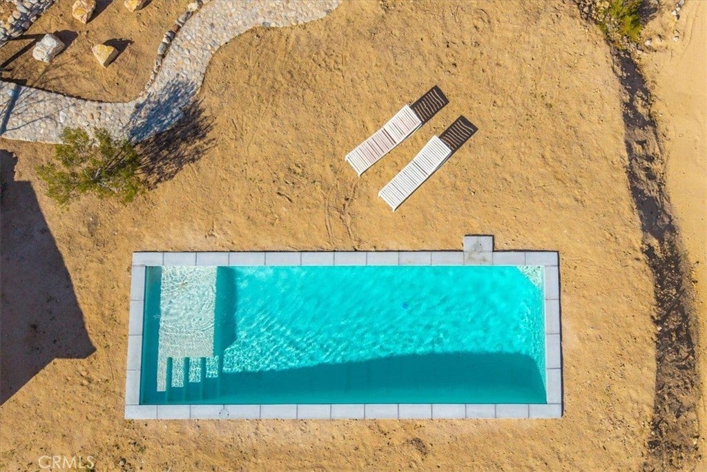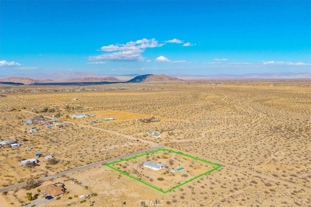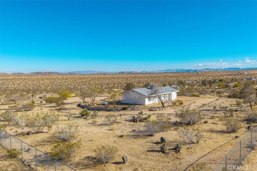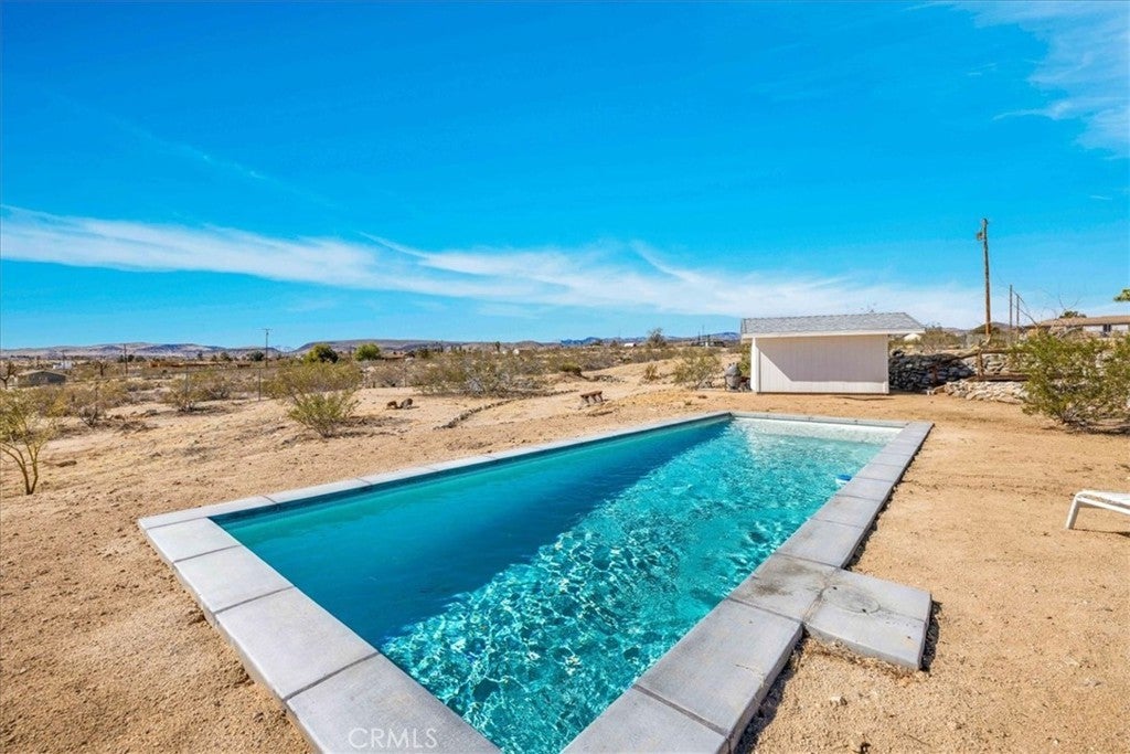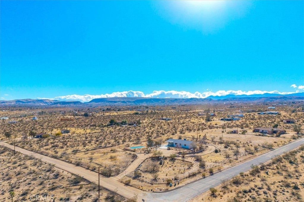 Come and make this charming Yucca Valley home with sweeping desert views your own. Perched on 2.02 acres of land, this delightful 3-bedroom, 2-bathroom home offers the perfect blend of seclusion and convenience. Built in 1985, this 988-square-foot property boasts an open-concept design, creating a bright and airy living space ideal for both relaxation and entertaining. Enjoy stunning, sweeping desert views right from your own yard while lounging by the sparkling inground pool. The property is fully fenced, providing privacy and a peaceful oasis. With desert landscaping, the home harmonizes with the natural surroundings, giving you that quintessential desert retreat feel. Conveniently located near all the local amenities in Flamingo Heights, this home is the perfect getaway or forever home for those seeking a serene lifestyle with easy access to nearby attractions and conveniences. Recent updates include a new garage door, paint, flooring, and pool enhancing the curb appeal and functionality. Whether you're looking for a vacation home or a full-time residence, this property offers the ultimate desert living experience. Seclusion, comfort, and breathtaking views await you. Don't miss the opportunity to make this your own!