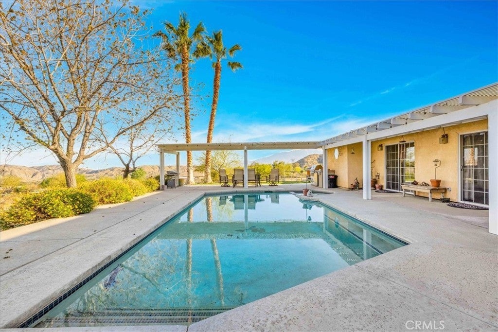 MOTIVATED SELLER. Welcome to your dream home nestled in the scenic hills of Morongo Valley. This stunning 4-bedroom, 3-bathroom home spans 1,832 square feet and sits on 2.32 acres of fully usable land, designed for both luxury living and equestrian lifestyle. As you arrive, a stately saguaro cactus greets you at the custom metal gate entrance, setting the tone for the property's desert elegance. Built in 1990, the home features timeless Spanish-style architecture, including a classic clay tile roof and hand-laid custom Spanish tile throughout—from the floors to the bathroom backsplashes. Unique artisan sinks and warm design elements add charm and character to every corner. Step inside to find a spacious, light-filled living room with a fully functional fireplace, perfect for cozy desert nights. The open-concept kitchen offers plenty of counter space and flows seamlessly into multiple dining areas, ideal for entertaining. Central AC, Heat and ceiling fans throughout the home ensure year-round comfort. Outdoors, enjoy resort-style living with a sparkling pool and hot tub, a private back patio with mature landscaping, and a brick privacy wall—your very own sanctuary under the desert sky. Equestrian enthusiasts will be thrilled by the three well-maintained horse corrals, a dedicated hay barn, and a private Tack Room complete with electricity. Property has a Round Pin, Two Mare Motels w- a run and a small Arena. A rare three-car garage offers ample space for vehicles, tack, or toys. RV Hookup with water, a 30 amp/ 50 amp and a 110 Volt panel box professionally done. Whether you're looking for a permanent residence, vacation getaway, or income-producing retreat, this property combines the serenity of Morongo Valley with the luxury of refined desert living. If you've been searching for a home with acreage, views, horse facilities, and a pool—this is the one.