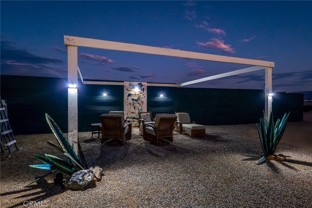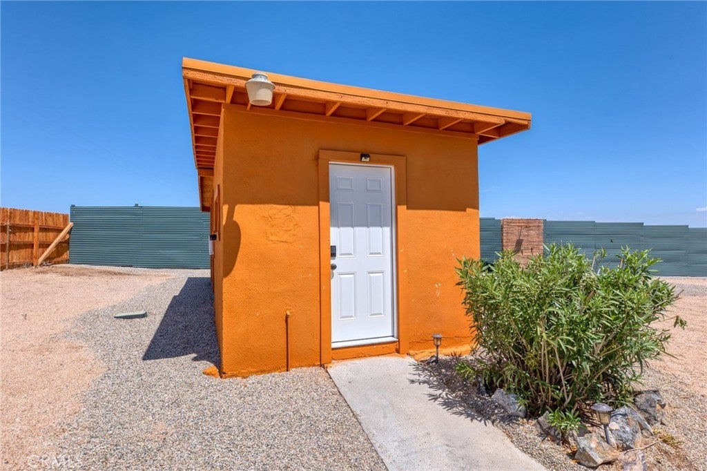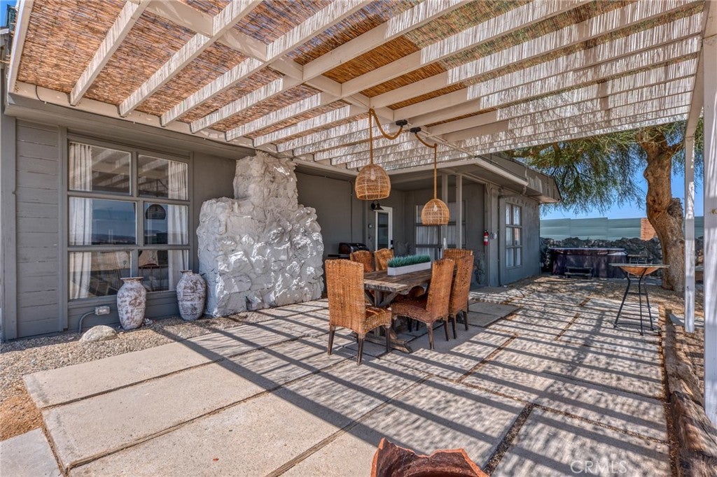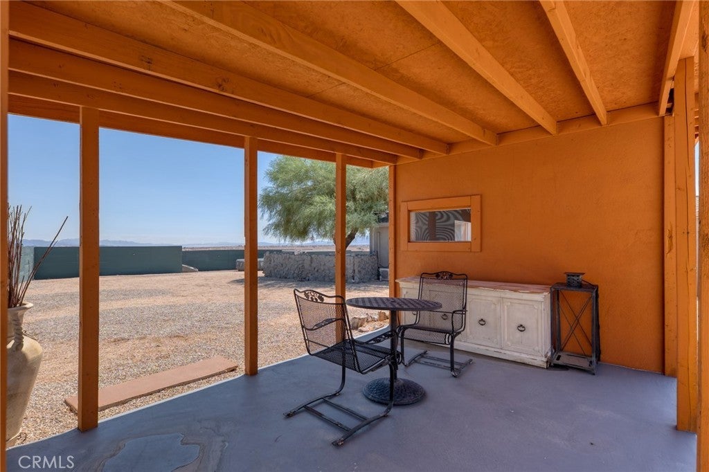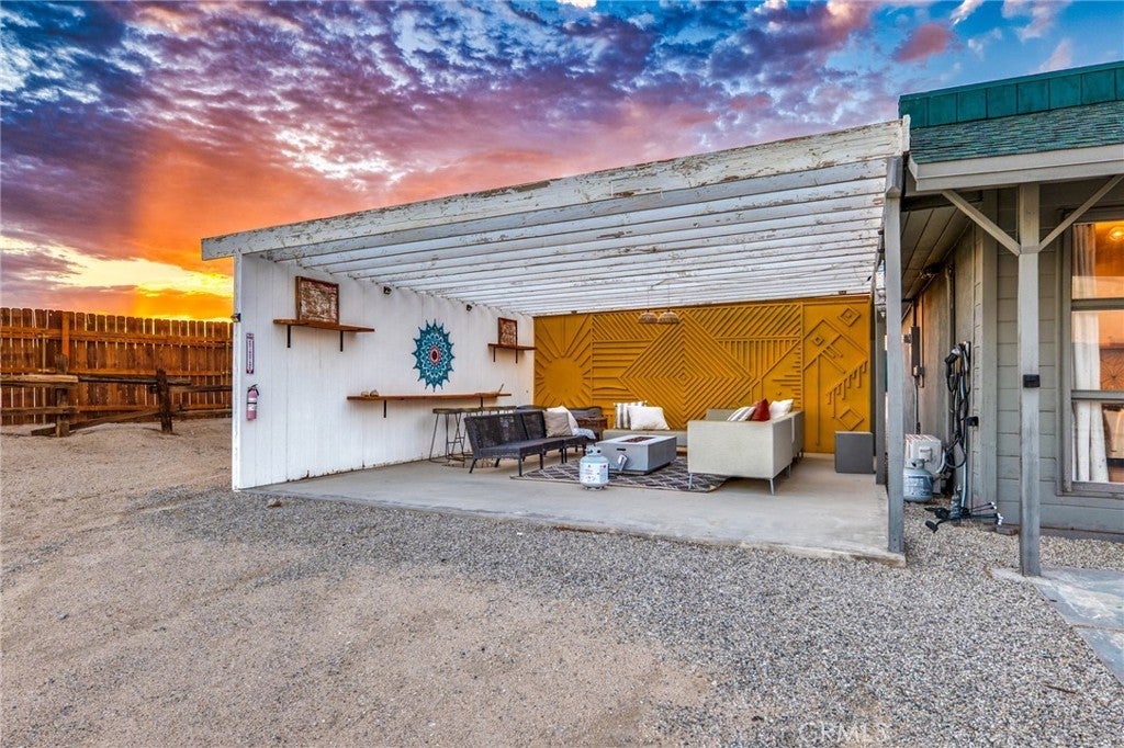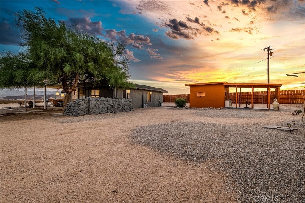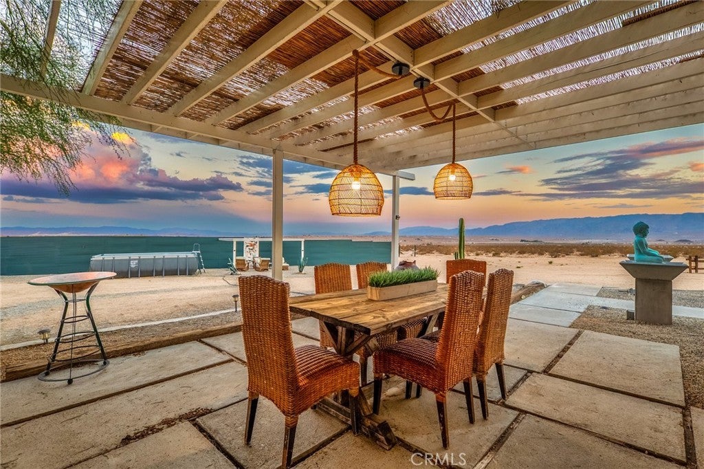 Welcome to this stylish 3-bedroom, 1-bath mid-century desert compound with 1,418 sq ft of living space and sweeping views of the Joshua Tree National Park hills. This property is fully dialed in and ready to enjoy, offering strong appeal as both a private desert getaway and an investment opportunity. The main home features an open floor plan with light-filled living spaces, two spacious bedrooms, plus a versatile third room ideal as a den, office, or extra sleeping quarters. Interiors include modern flooring, updated fixtures, a sleek kitchen, efficient mini-split systems, and a spacious walk-in shower. A detached guest studio with its own A/C and private outdoor hot/cold shower expands the possibilities, whether for hosting additional guests, creating a wellness or art space, or boosting rental income potential. The grounds are designed for relaxation and entertaining, with multiple shaded lounge areas, a fire pit, and mature desert landscaping. With no immediate neighbors and government land nearby, the views and sense of privacy are preserved—an increasingly rare find in the high desert. Located just 10 minutes from Joshua Tree National Park’s Indian Cove entrance and 15 minutes from both downtown Joshua Tree and 29 Palms, this retreat sits in the heart of one of Southern California’s fastest-growing travel destinations. The area continues to draw year-round tourism, outdoor enthusiasts, and those seeking unique vacation rentals, making Joshua Tree Sunset Highway an excellent investment with proven demand.