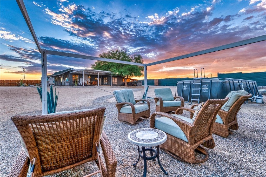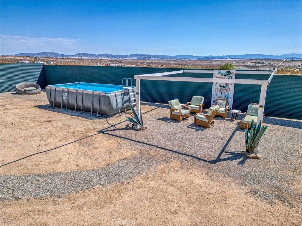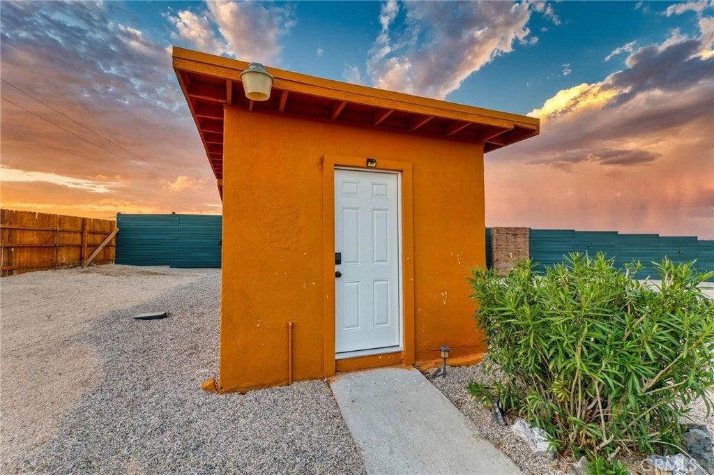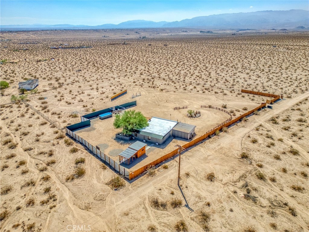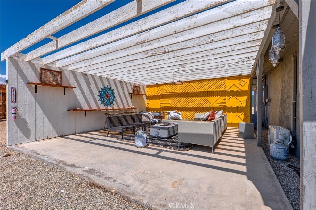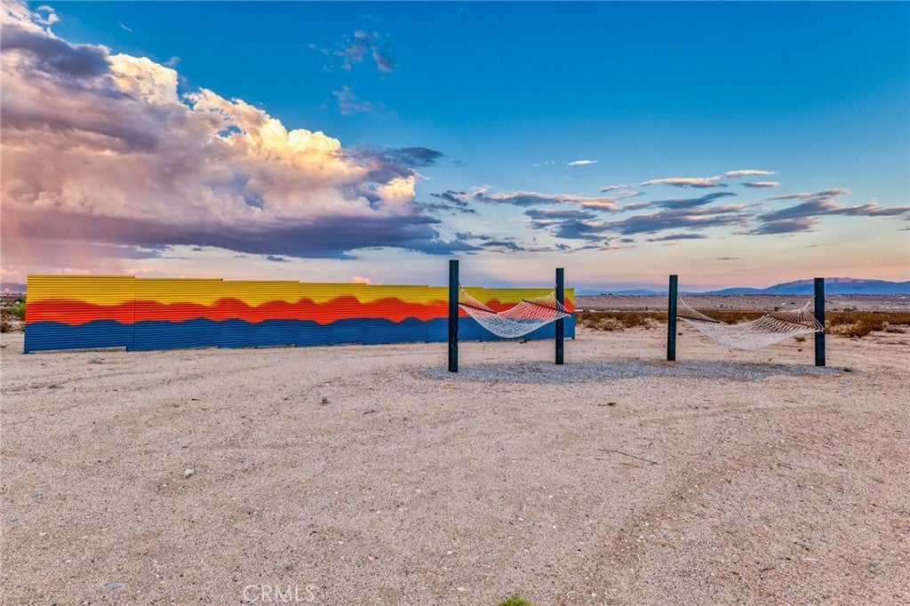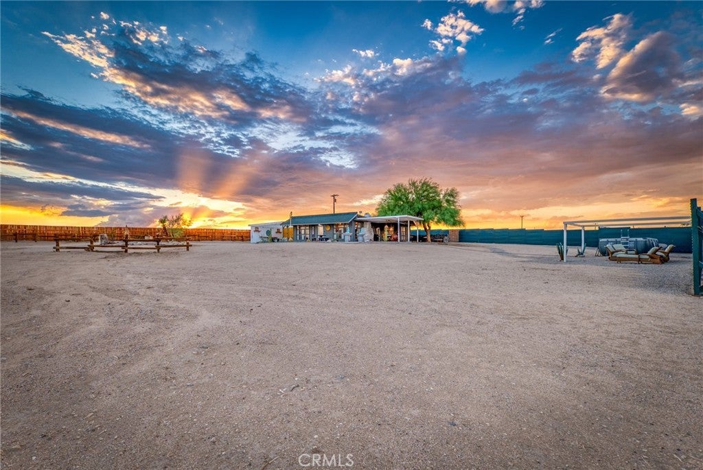 Welcome to this stylish 3-bedroom, 1-bath mid-century desert compound with 1,418 sq ft of living space and sweeping views of the Joshua Tree National Park hills. This property is fully dialed in and ready to enjoy, offering strong appeal as both a private desert getaway and an investment opportunity. The main home features an open floor plan with light-filled living spaces, two spacious bedrooms, plus a versatile third room ideal as a den, office, or extra sleeping quarters. Interiors include modern flooring, updated fixtures, a sleek kitchen, efficient mini-split systems, and a spacious walk-in shower. A detached guest studio with its own A/C and private outdoor hot/cold shower expands the possibilities, whether for hosting additional guests, creating a wellness or art space, or boosting rental income potential. The grounds are designed for relaxation and entertaining, with multiple shaded lounge areas, a fire pit, and mature desert landscaping. With no immediate neighbors and government land nearby, the views and sense of privacy are preserved—an increasingly rare find in the high desert. Located just 10 minutes from Joshua Tree National Park’s Indian Cove entrance and 15 minutes from both downtown Joshua Tree and 29 Palms, this retreat sits in the heart of one of Southern California’s fastest-growing travel destinations. The area continues to draw year-round tourism, outdoor enthusiasts, and those seeking unique vacation rentals, making Joshua Tree Sunset Highway an excellent investment with proven demand.