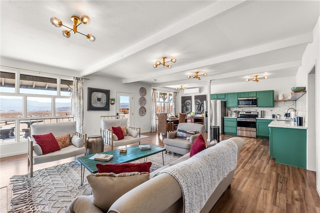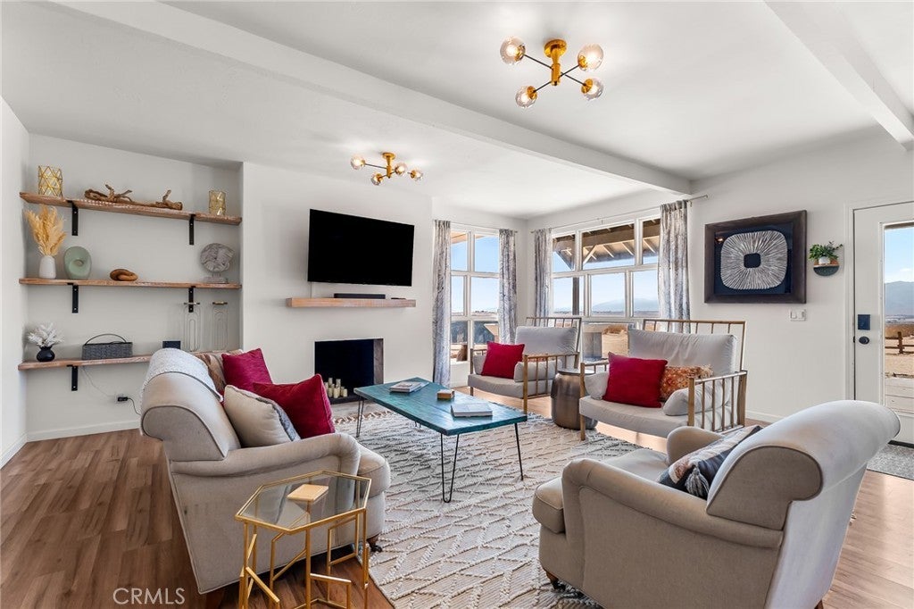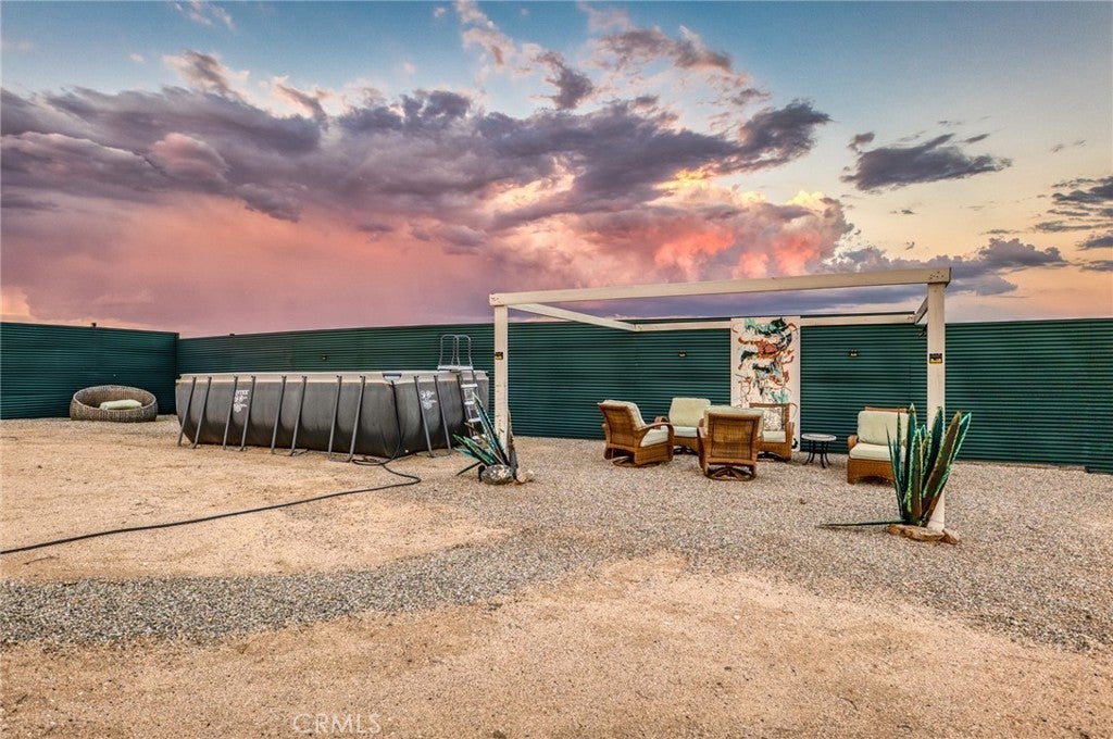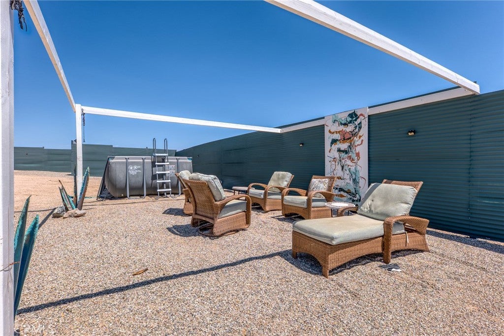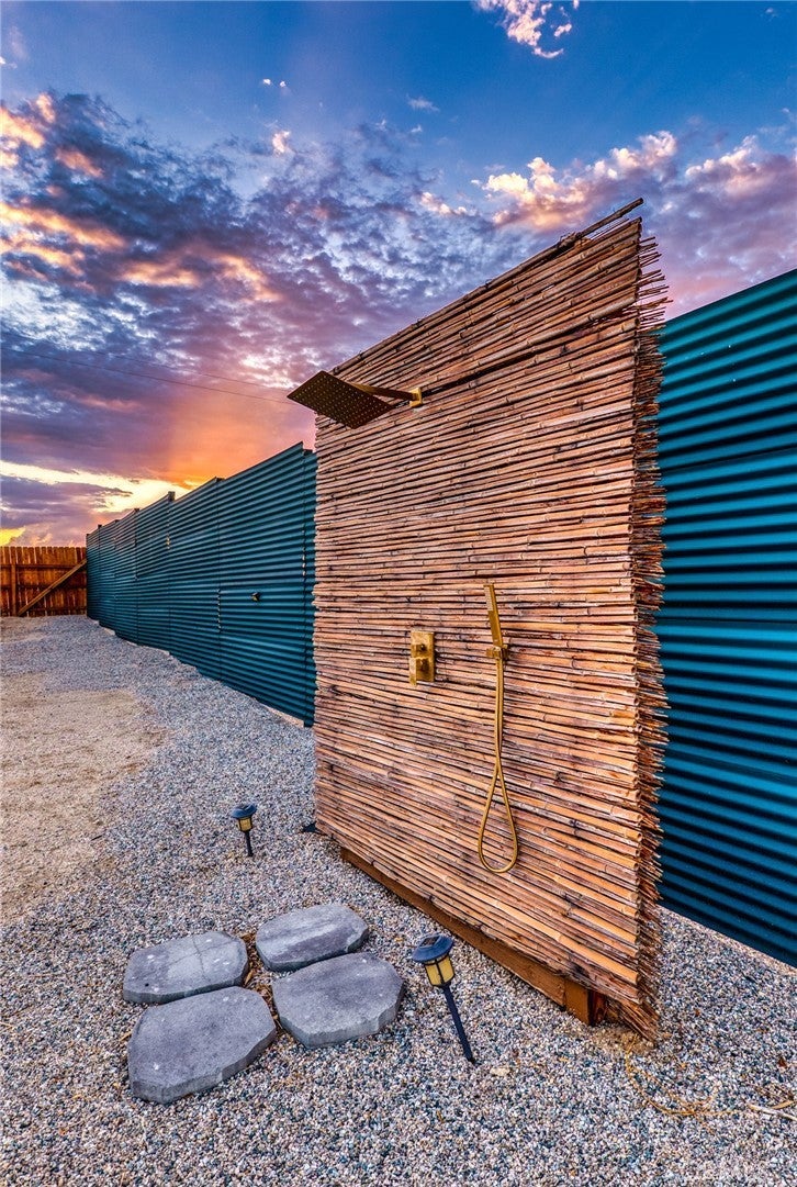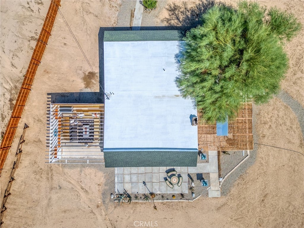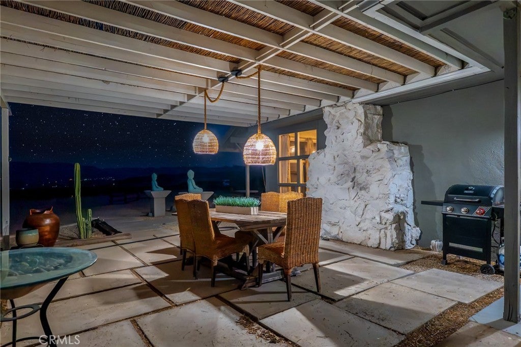 Welcome to this stylish 3-bedroom, 1-bath mid-century desert compound with 1,418 sq ft of living space and sweeping views of the Joshua Tree National Park hills. This property is fully dialed in and ready to enjoy, offering strong appeal as both a private desert getaway and an investment opportunity. The main home features an open floor plan with light-filled living spaces, two spacious bedrooms, plus a versatile third room ideal as a den, office, or extra sleeping quarters. Interiors include modern flooring, updated fixtures, a sleek kitchen, efficient mini-split systems, and a spacious walk-in shower. A detached guest studio with its own A/C and private outdoor hot/cold shower expands the possibilities, whether for hosting additional guests, creating a wellness or art space, or boosting rental income potential. The grounds are designed for relaxation and entertaining, with multiple shaded lounge areas, a fire pit, and mature desert landscaping. With no immediate neighbors and government land nearby, the views and sense of privacy are preserved—an increasingly rare find in the high desert. Located just 10 minutes from Joshua Tree National Park’s Indian Cove entrance and 15 minutes from both downtown Joshua Tree and 29 Palms, this retreat sits in the heart of one of Southern California’s fastest-growing travel destinations. The area continues to draw year-round tourism, outdoor enthusiasts, and those seeking unique vacation rentals, making Joshua Tree Sunset Highway an excellent investment with proven demand.
