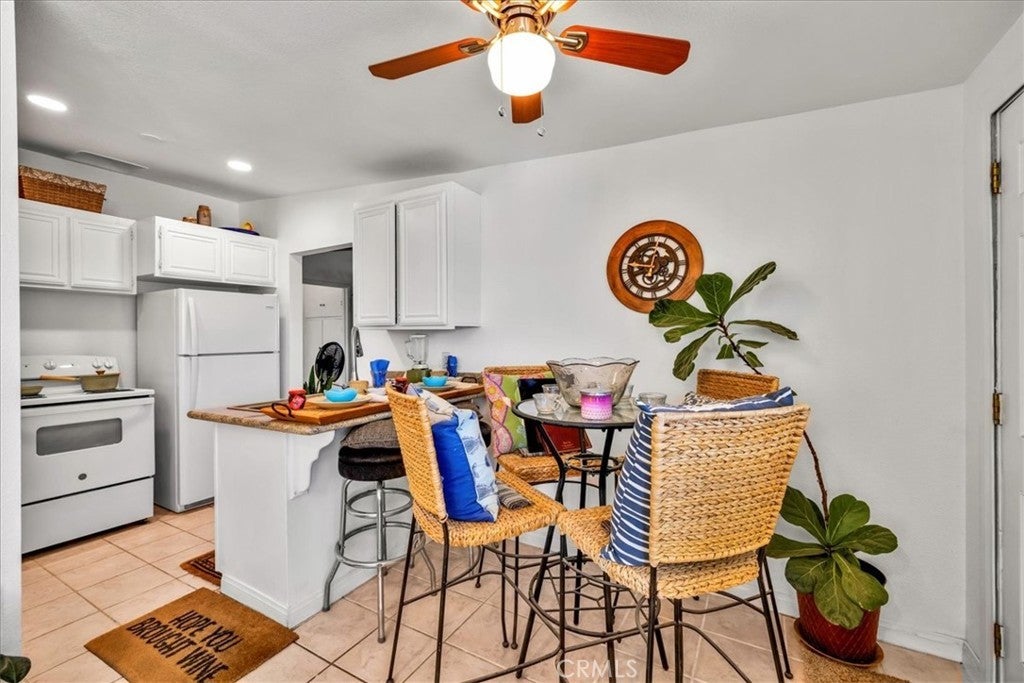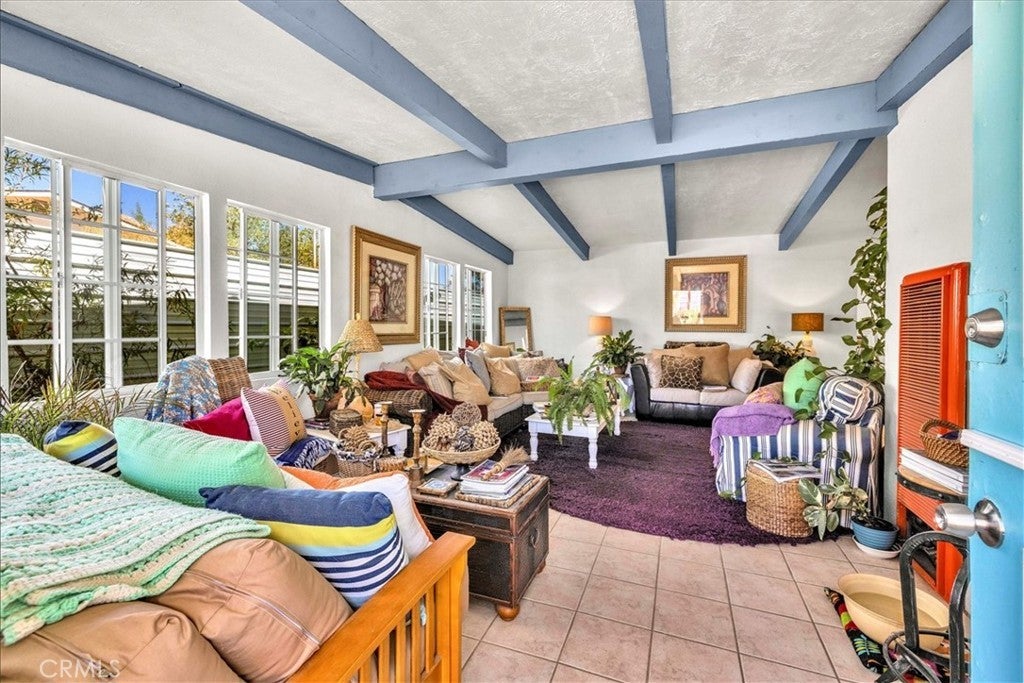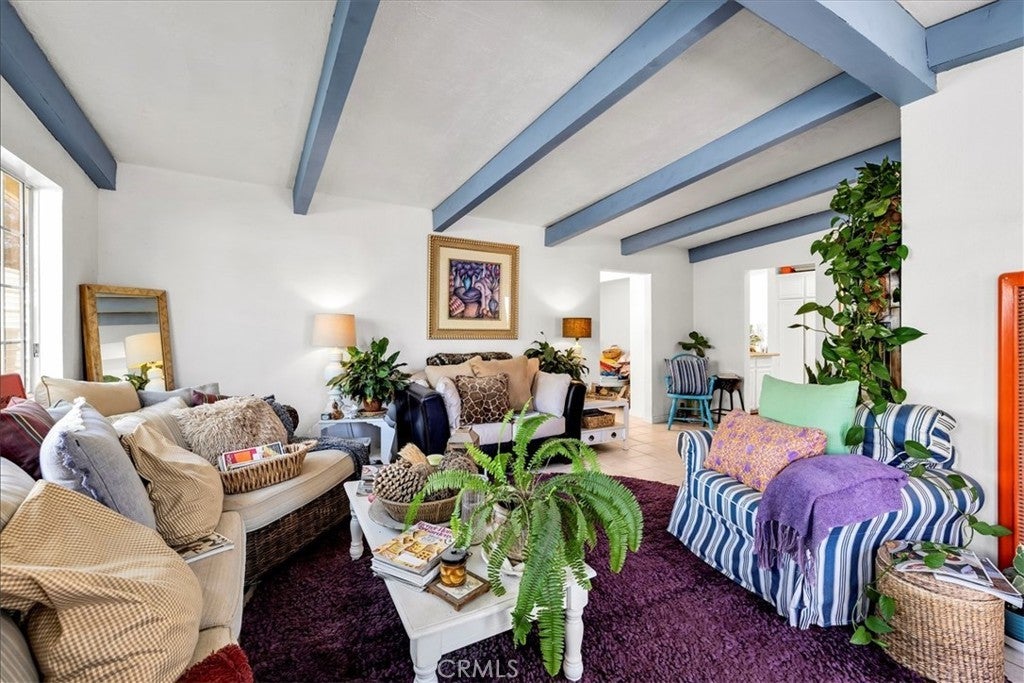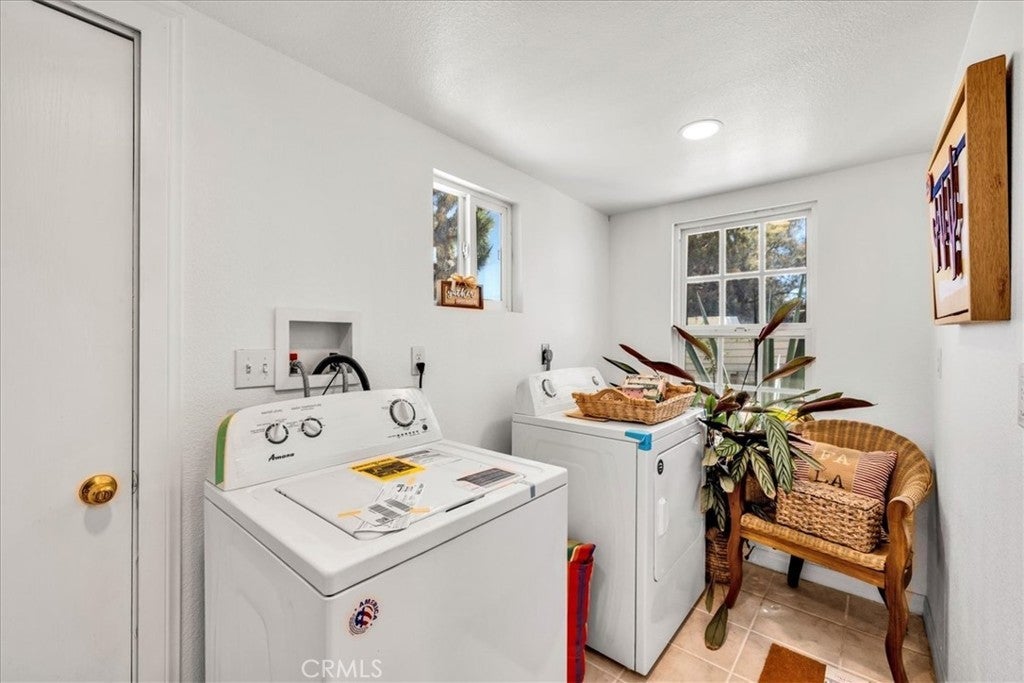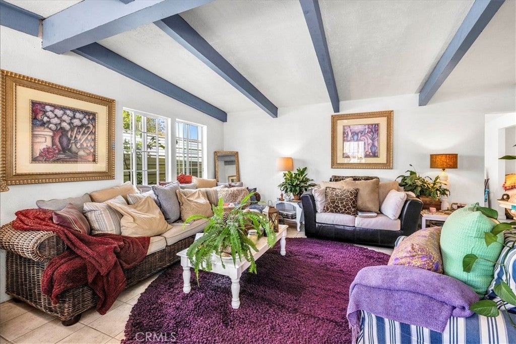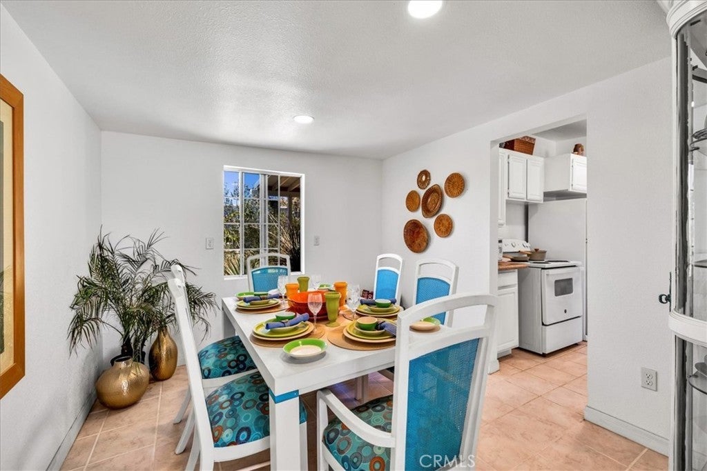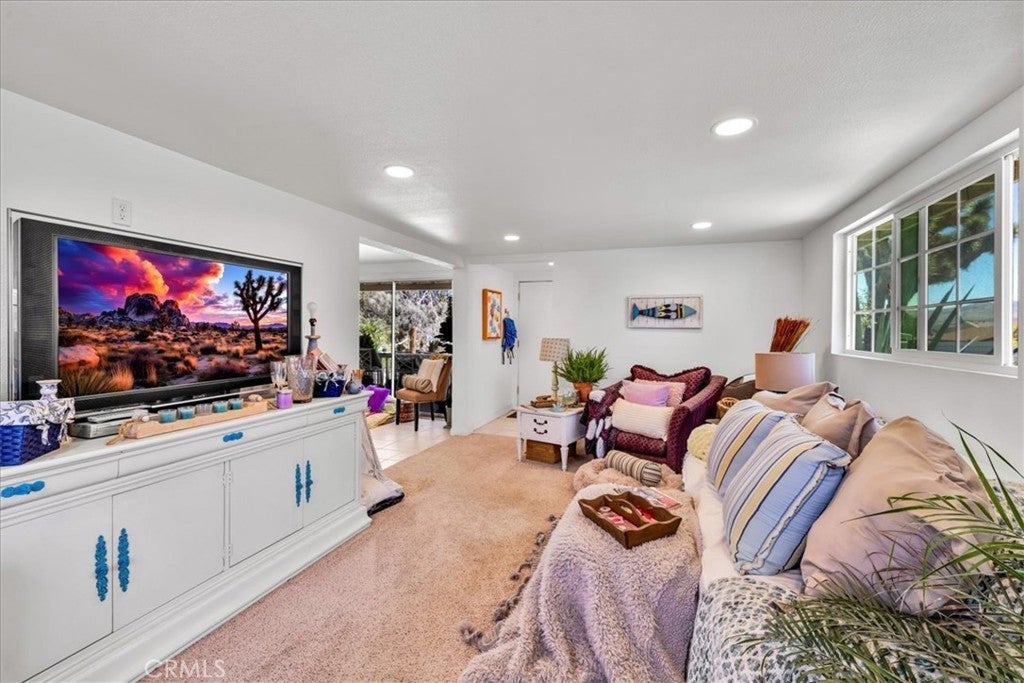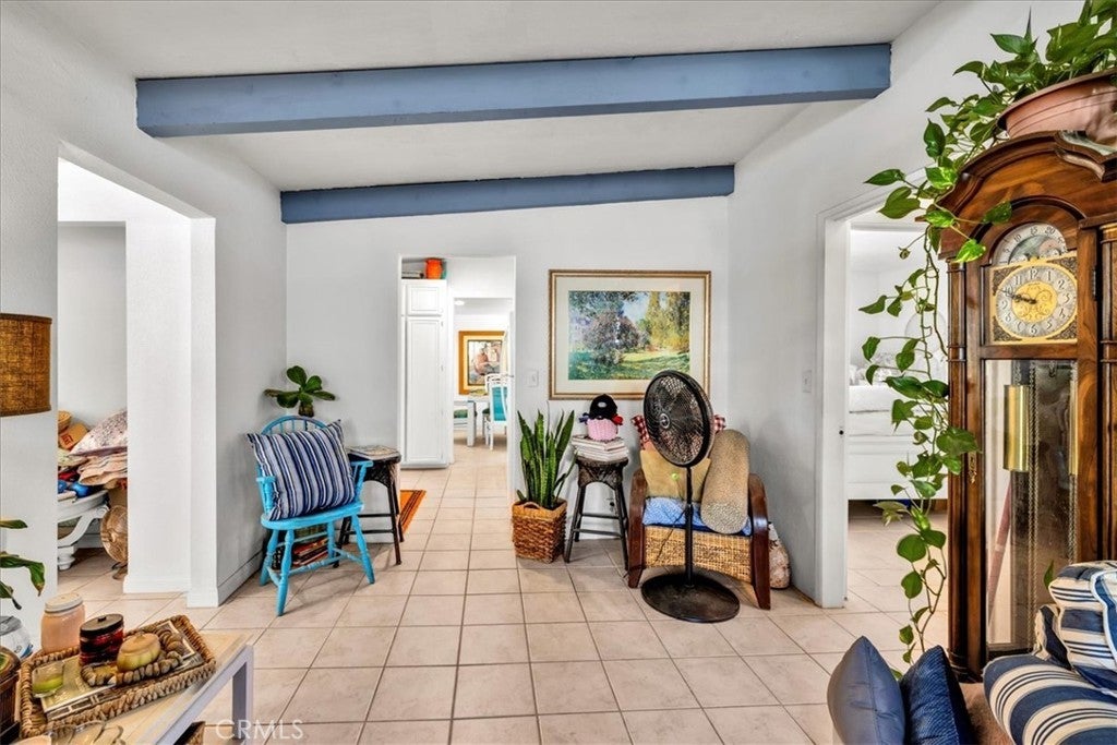 This charming 2 bedroom, 1 bath home on 1/3 acre in north downtown Yucca Valley combines comfort, style, and privacy with a convenient location. Beautiful landscaping and mountain views welcome you, along with a secure outdoor parking area and privacy fencing in both the front and backyard. Covered patios at the front and back of the home provide inviting spaces to relax outdoors in your own private oasis. Inside, the living room is spacious with high beamed ceilings, tile flooring throughout, and new windows that fill the space with light. The kitchen is nicely appointed and features an informal dining area with sliding glass doors to the backyard, plus a separate formal dining room for added flexibility. The bathroom is generously sized and includes a tub/shower combo. The first bedroom offers built-in storage and plenty of space, while the second bedroom is oversized with abundant natural light and large closet. A sizable bonus room provides even more versatility for work, hobbies, or guest use. Furniture is included, making this property move-in ready. With its thoughtful updates, spacious design, and excellent outdoor living features, this home is a wonderful opportunity in a desirable Yucca Valley neighborhood.