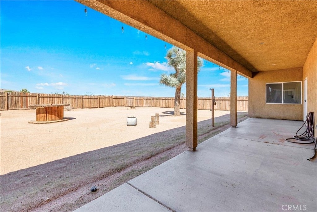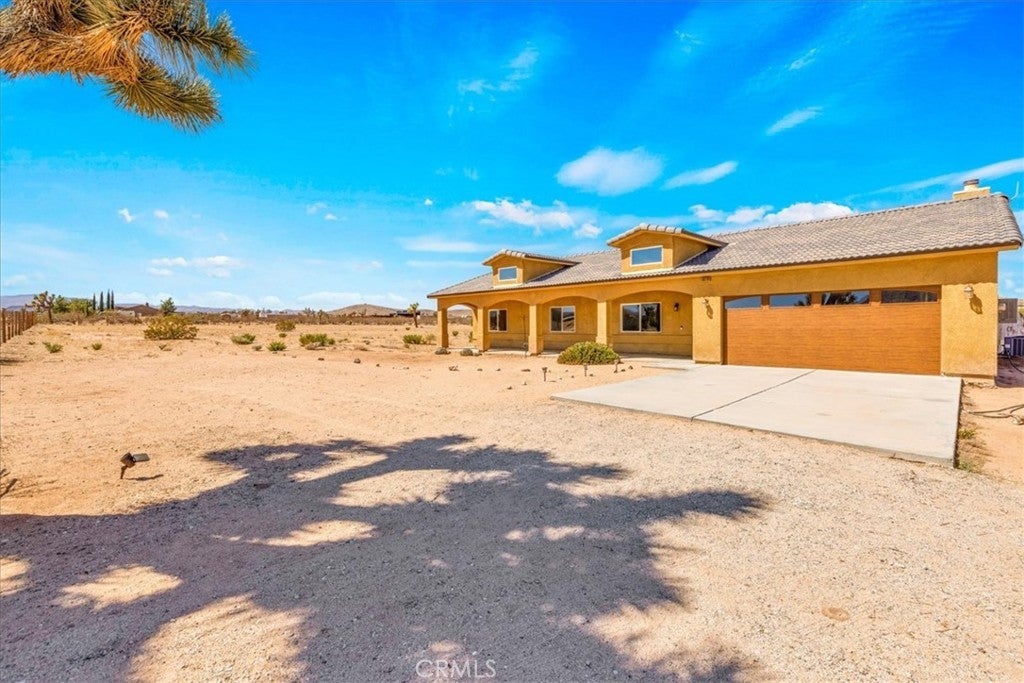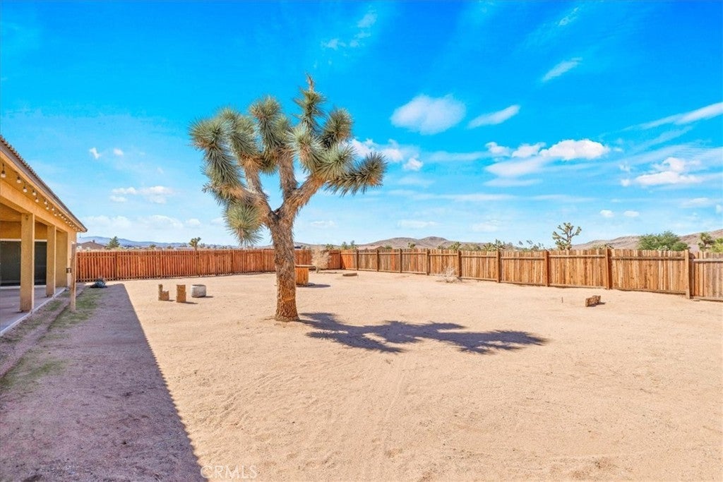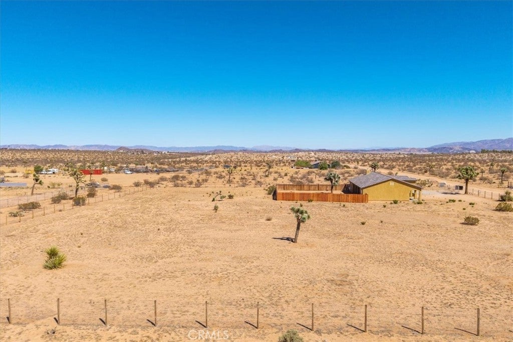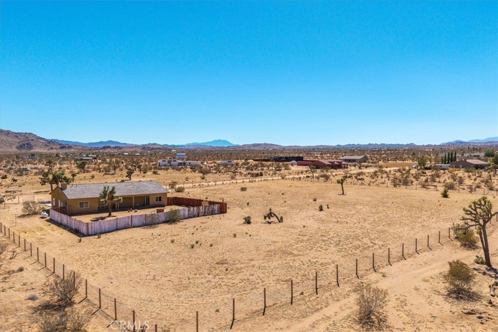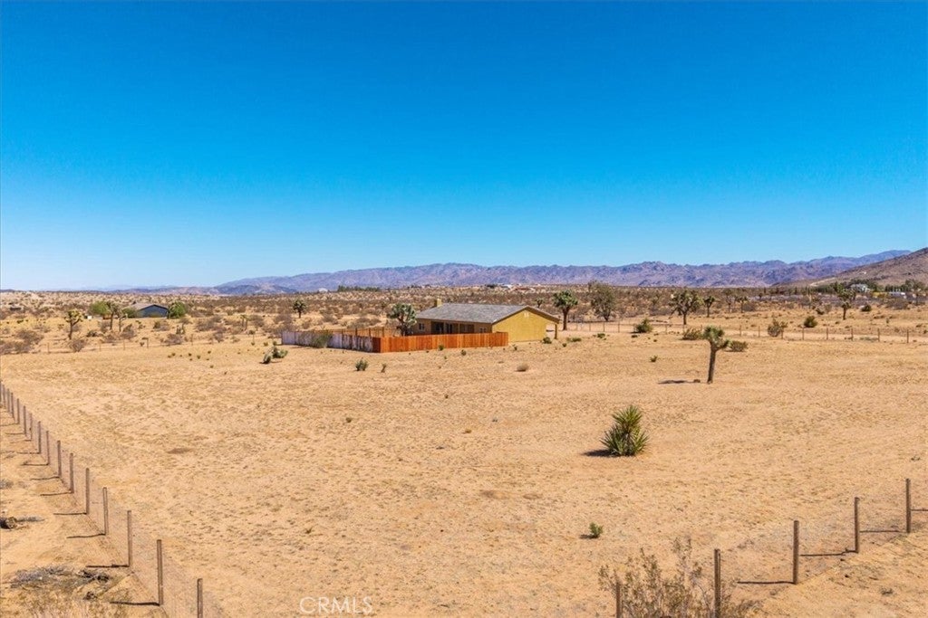 Welcome to your beautiful ranch-style home in peaceful North Joshua Tree! Sitting on 2.5 acres with dormer windows, arches, and sweeping panoramic desert and mountain views, this 3 bedroom, 2 bathroom home offers both charm and modern comfort with no visual power lines to impede the views .Step inside to find high ceilings and a cozy fireplace in the main living area, which flows seamlessly into the dining room and kitchen. The kitchen is a highlight with granite tile countertops, freshly painted cabinets, stainless steel appliances, breakfast bar, and a picture-perfect window view above the sink. Sliding glass doors off the dining area lead to a large covered patio—perfect for entertaining or enjoying tranquil desert nights. The spacious bedrooms are bright and airy, each with concrete floors and ceiling fans. The primary suite includes a large walk-in closet, slider access to the back patio, and a private bath with a walk-in shower and matching granite finishes. The guest bath features a tub/shower combo and granite vanity. Additional features include:Fully fenced property with a wooden privacy-fenced backyard area. Underground utilities (no obstructed views!) 2-car finished garage with high ceilings and laundry hookups. Concrete driveway and charming covered front patio Room for a pool, workshop, or ADU etc. All parcels in this sought-after area are on acreage, ensuring space and privacy. Just 10 minutes to Joshua Tree Village and less than 20 minutes to the National Park, the location balances serenity with convenience.Inclusions: Washer, Dryer, Refrigerator Imagine starry desert nights from your property with nearly no light pollution—peace and tranquility await. Don’t miss out on this opportunity—schedule your private showing today!Please include a recent pre-approval letter and proof of funds with your offer.Buyer to verify all MLS information, including but not limited to: permits and uses, bed/bath counts, square footage, school information and enrollment availability. Buyer is advised to independently investigate all aspects of the property, and to verify the accuracy of all information provided through personal inspections and with appropriate professionals to the buyer’s satisfaction.Buyer is solely responsible for verifying water, power, zoning, and county building requirements.Buyers are responsible for confirming the accuracy of all information and are encouraged to conduct their own due diligence or retain qualified professionals.