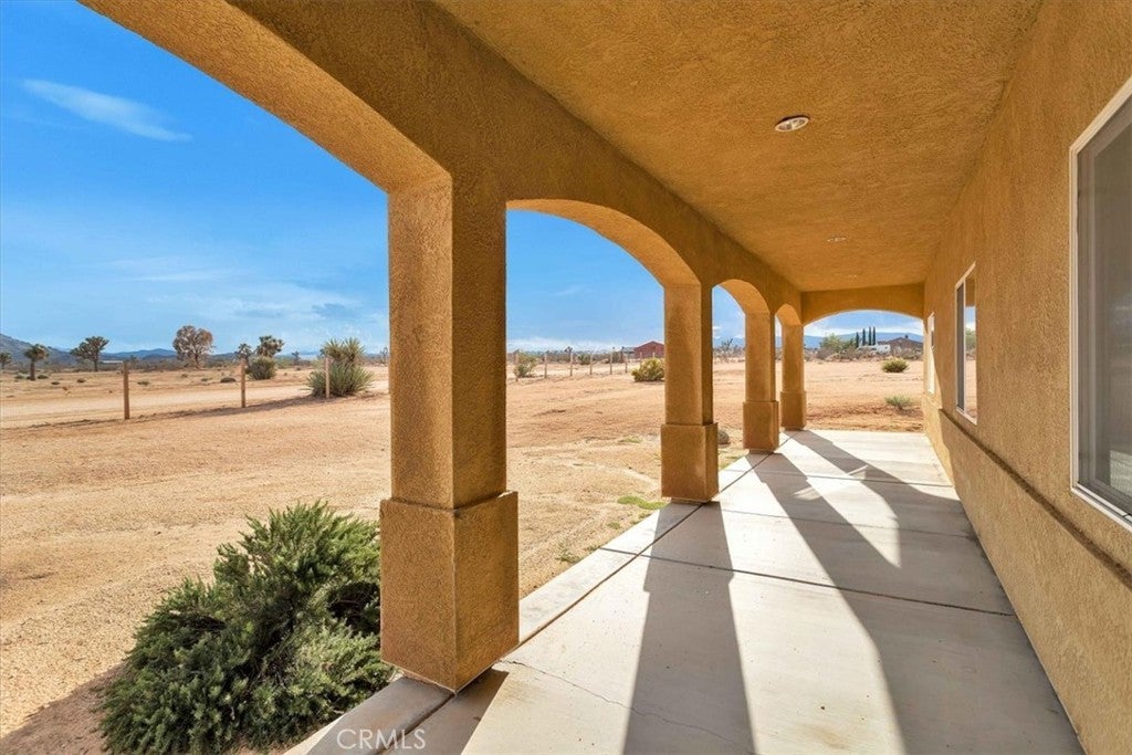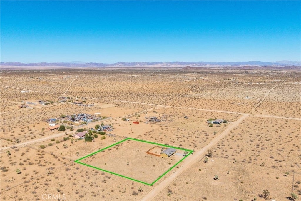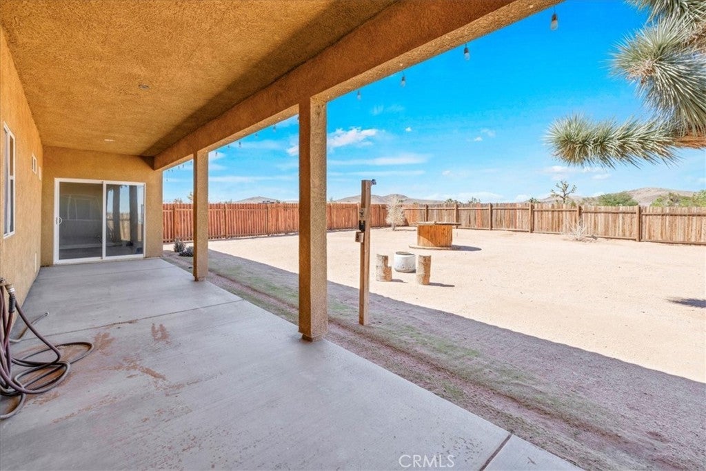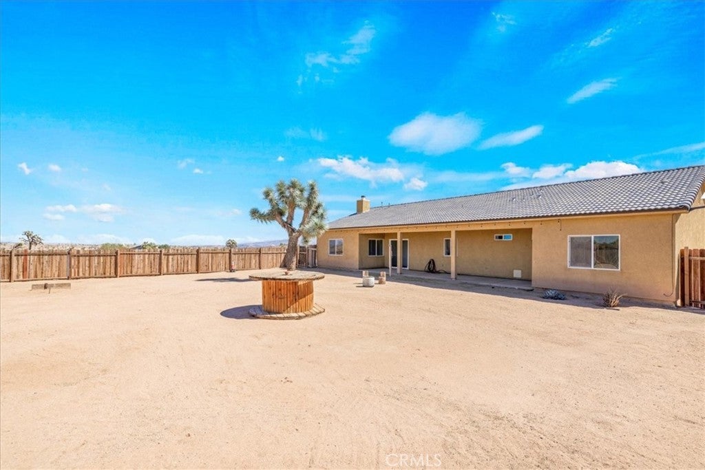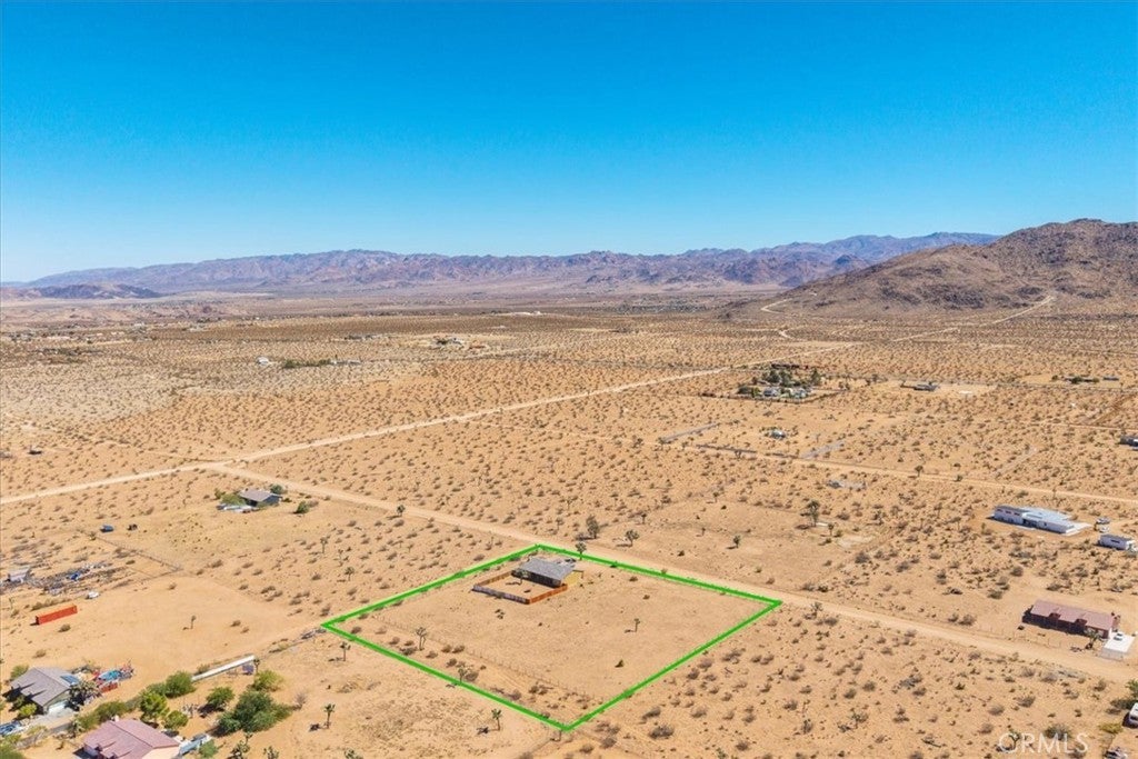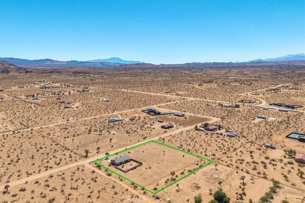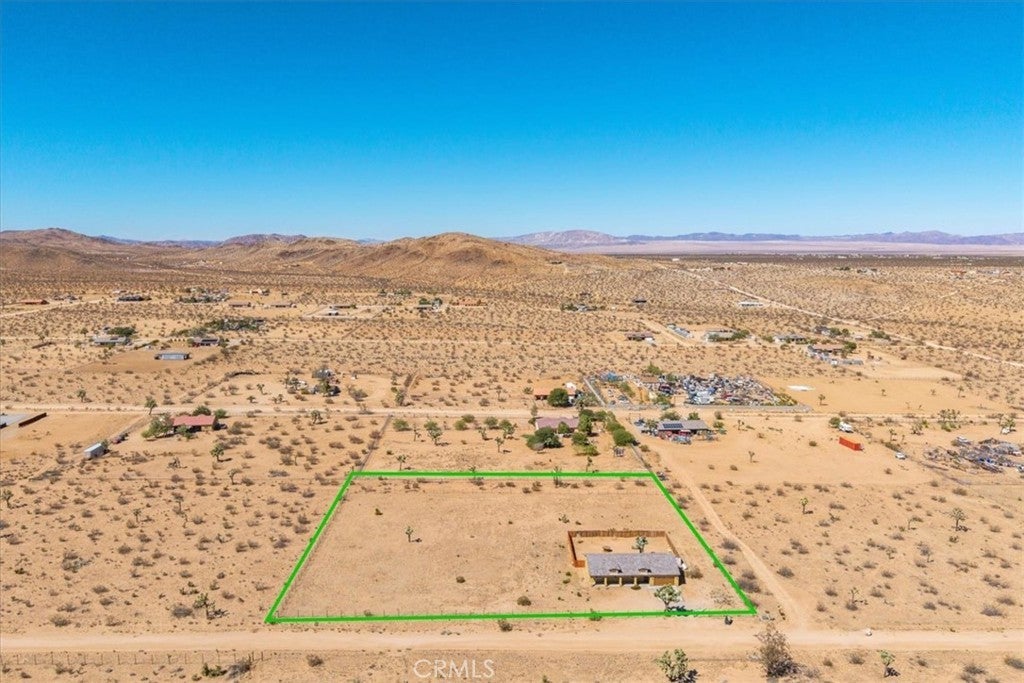 Welcome to your beautiful ranch-style home in peaceful North Joshua Tree! Sitting on 2.5 acres with dormer windows, arches, and sweeping panoramic desert and mountain views, this 3 bedroom, 2 bathroom home offers both charm and modern comfort with no visual power lines to impede the views .Step inside to find high ceilings and a cozy fireplace in the main living area, which flows seamlessly into the dining room and kitchen. The kitchen is a highlight with granite tile countertops, freshly painted cabinets, stainless steel appliances, breakfast bar, and a picture-perfect window view above the sink. Sliding glass doors off the dining area lead to a large covered patio—perfect for entertaining or enjoying tranquil desert nights. The spacious bedrooms are bright and airy, each with concrete floors and ceiling fans. The primary suite includes a large walk-in closet, slider access to the back patio, and a private bath with a walk-in shower and matching granite finishes. The guest bath features a tub/shower combo and granite vanity. Additional features include:Fully fenced property with a wooden privacy-fenced backyard area. Underground utilities (no obstructed views!) 2-car finished garage with high ceilings and laundry hookups. Concrete driveway and charming covered front patio Room for a pool, workshop, or ADU etc. All parcels in this sought-after area are on acreage, ensuring space and privacy. Just 10 minutes to Joshua Tree Village and less than 20 minutes to the National Park, the location balances serenity with convenience.Inclusions: Washer, Dryer, Refrigerator Imagine starry desert nights from your property with nearly no light pollution—peace and tranquility await. Don’t miss out on this opportunity—schedule your private showing today!Please include a recent pre-approval letter and proof of funds with your offer.Buyer to verify all MLS information, including but not limited to: permits and uses, bed/bath counts, square footage, school information and enrollment availability. Buyer is advised to independently investigate all aspects of the property, and to verify the accuracy of all information provided through personal inspections and with appropriate professionals to the buyer’s satisfaction.Buyer is solely responsible for verifying water, power, zoning, and county building requirements.Buyers are responsible for confirming the accuracy of all information and are encouraged to conduct their own due diligence or retain qualified professionals.