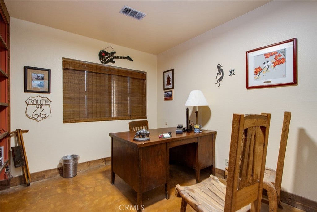 Commercial Building Downtown Joshua Tree. Located on Commercial St, one block off Hwy 62, near the center of town. Building and Parking Lot has been completely updated and remodeled. ADA compliant interior and exterior. For many years, the building housed a well-respected veterinary clinic. More recently, it was purchased by a retired Toyota executive, who completely remodeled the premises. Once it was remodeled, the location was used as an international executive coaching business. Automotive executives from the top global manufacturers traveled to Joshua Tree. The desert helped get executives out of the comfort zone of their corporate offices and back in touch with the reality of consumers' desires, to improve customer loyalty for higher market share and improved profitability – all of which was successfully accomplished in this little-known Joshua Tree commercial location. The current owner of the property has now retired after a 40+ year career, making it available to purchase as a front or back business operation. While seemingly modest in size, many huge business goals have been achieved at this location and many new opportunities exist for potential future owners.