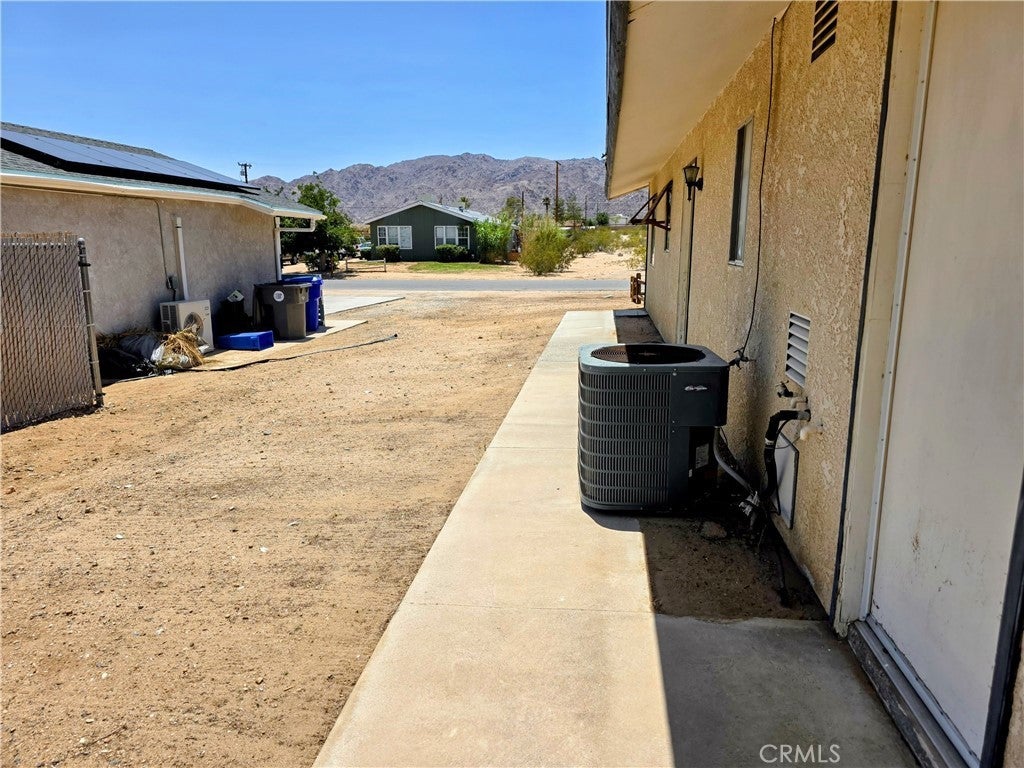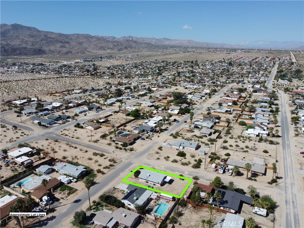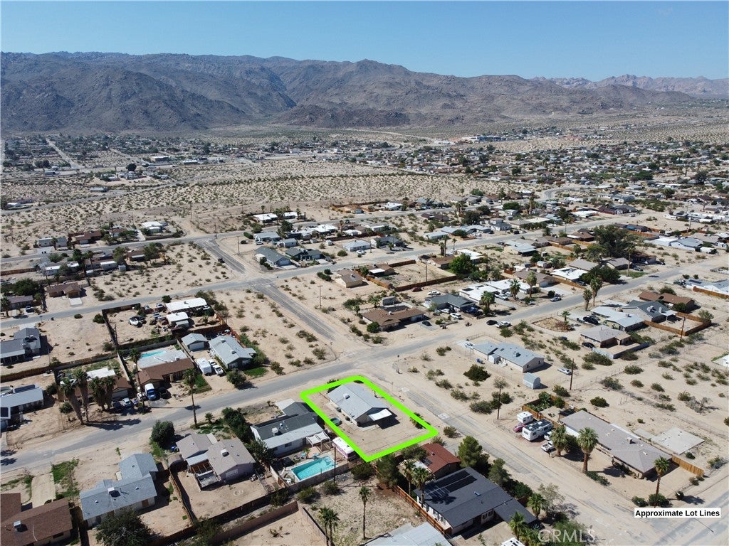 Adorable 1 bedroom 1 bathroom corner lot home in the Chocolate Drop neighborhood of 29 Palms! This home features upgrades throughout. The open concept interior design boasts a large kitchen peninsula and cozy living room. Central heating and air, a swamp cooler, and ceiling fans ensure comfort throughout the year. The front porch is perfectly located to enjoy evening sunsets and incredible mountain views. Plenty of parking including an attached 1 car garage and metal carport. Wood split rail fencing lines the property boundaries. Currently a long term rental. Short drive to the North entrance to Joshua Tree National Park. The central location makes this a fantastic opportunity for a starter, retirement, or rental home!
