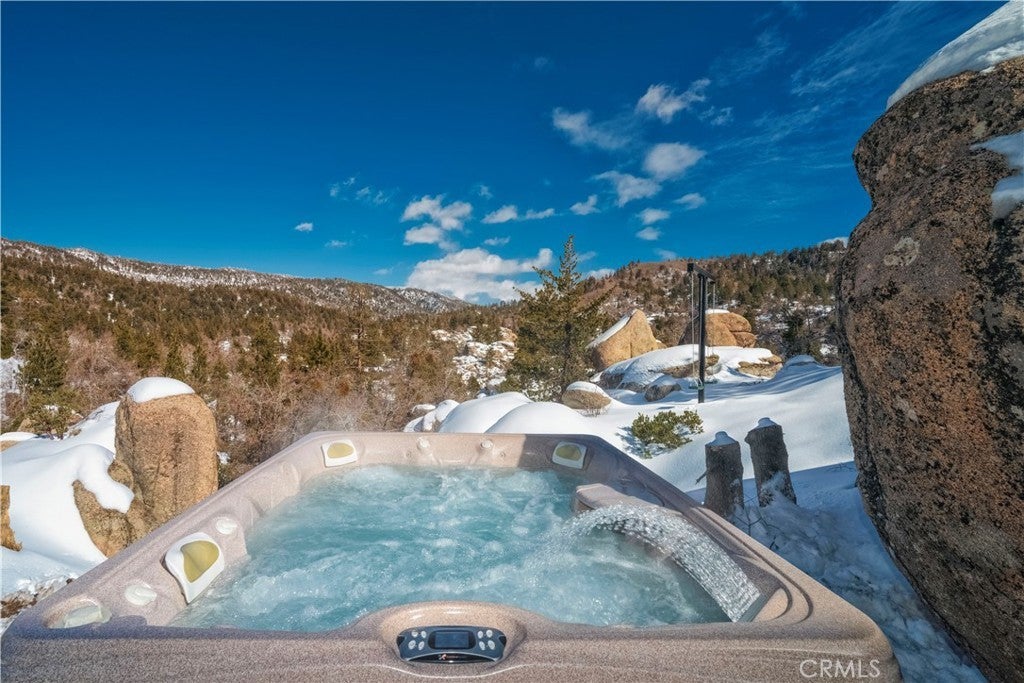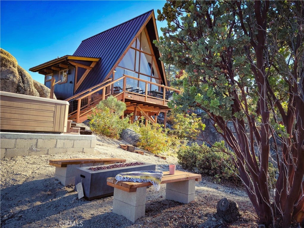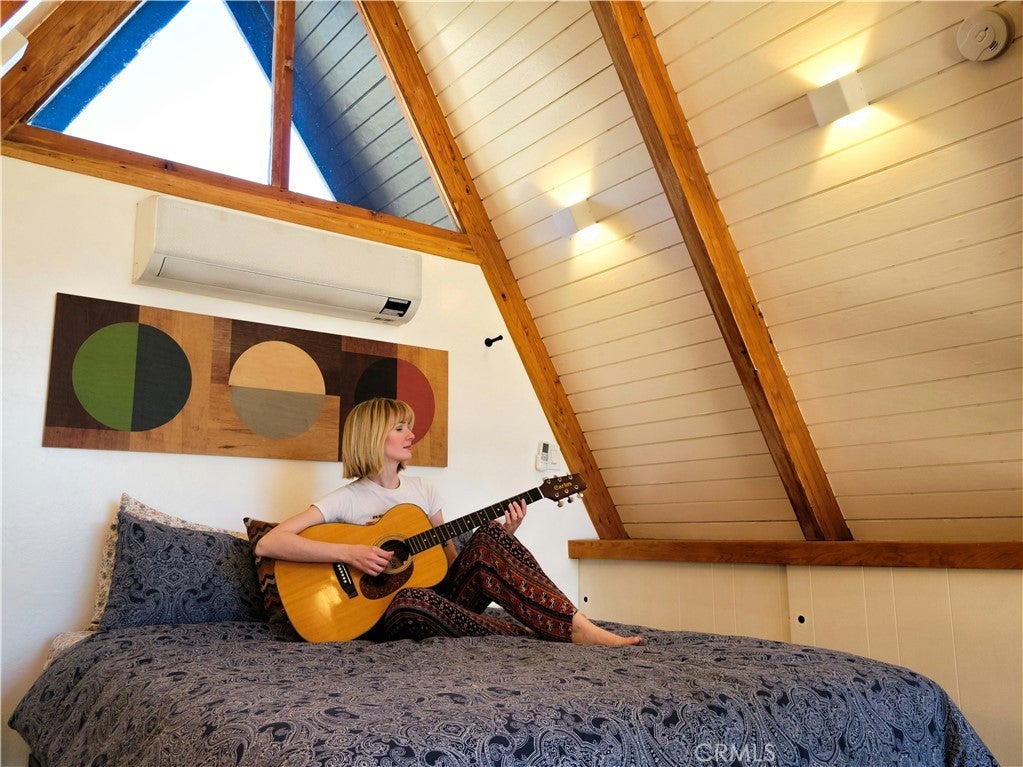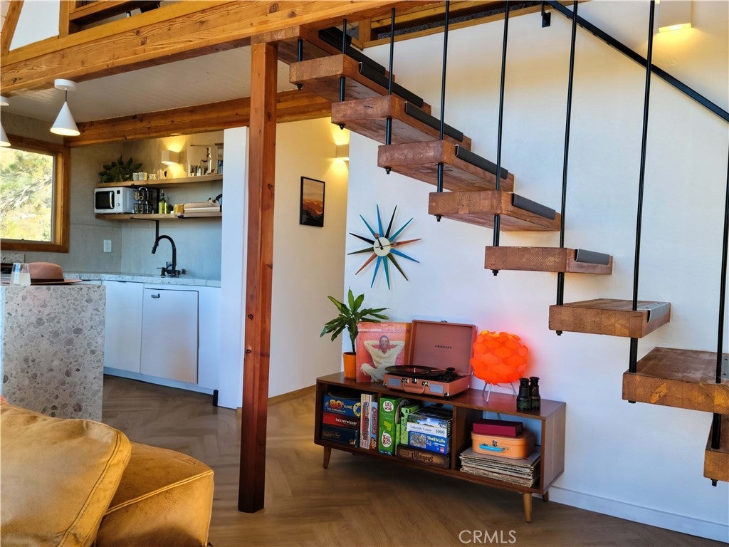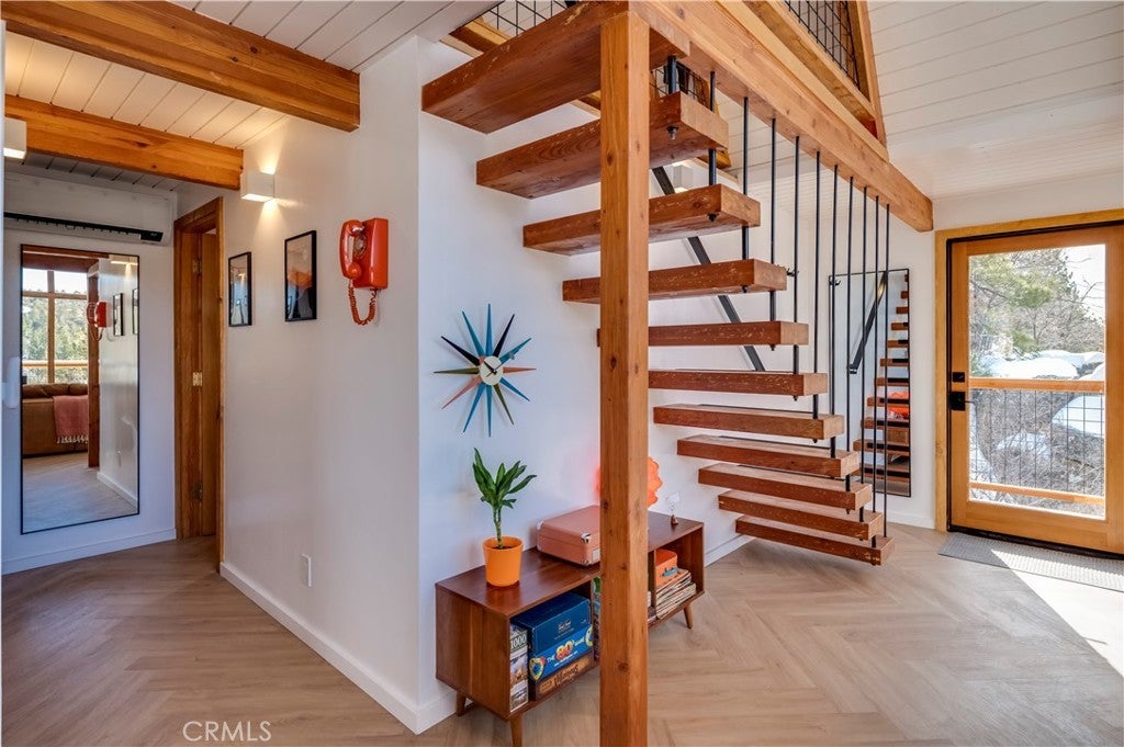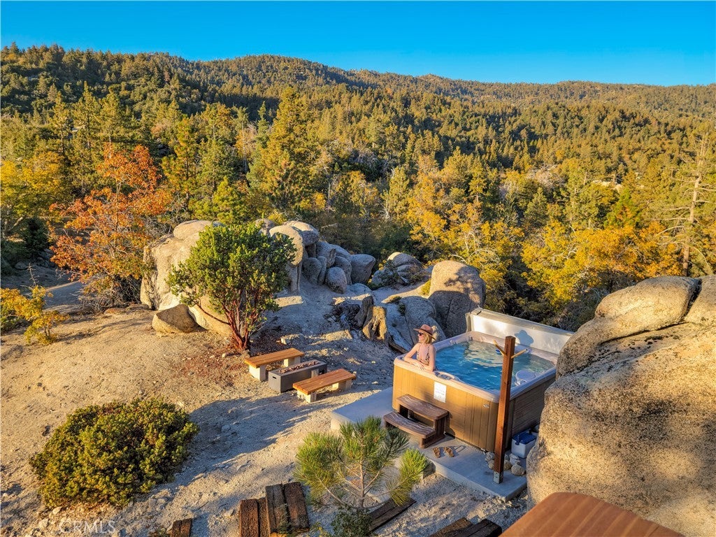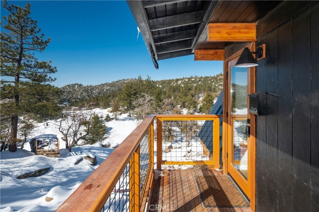 The Lake Arrowhead/Big Bear region is synonymous with A frames. A-frames are reflections of the mountains they inhabit; snowed in, Après Ski, and Summer pine aromas. This A Frame sits at a pinnacle, capturing unbridled views. Built in 1964 as a price for a Heinz 57 sweepstakes winner. Then, in 2022, the structure was brilliantly restored showcasing precision in spatial planning, material integrity, and modern-rustic synergy. Herringbone hardwood floors draw the eye across the room like an arrow, up to the full frame windows and out to the sky, boulders, and forest. The kitchen is smart, with a full suite of appliances including retro Classic brand fridge, gas stove and microwave, water filter, dishwasher and hidden laundry facilities. The counters are quartz river stone terrazzo, and an elegant steal reenforced floating waterfall edge serves as a dining setting, bar, prep or laundry station. The sofa is faced directly at the twenty-five-foot-tall window. The forest brushing the bottoms of clouds and shifting colors of the sky and phases of the moon and stars are true natural endless entertainment. A vintage Midcentury MALM fireplace ties a whole architectural theme and scheme together. The bath features a walk- in shower with hexagonal tile Aswell as acoustic paneling behind the commode. The basin sink preserves counterspace. And heated floors warm your bare feet all year long. Downstairs is a bedroom for guests, but the bedroom loft upstairs is romantic magic. Ascend a floating staircase to a boudoir where the moon kisses you good night and the light on the trees brushes you to wake. The whole home is smartly lit with warm minimalist sconces providing ample indirect light. You've waited long enough. It's time to make your mountain escape fantasies come true. This property grossed $126,000 in 2024 as an STR