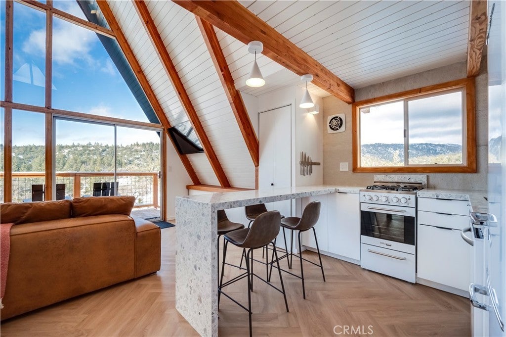 Beamed Ceilings, Breakfast Bar, Balcony, Cathedral Ceiling(s), High Ceilings, Quartz Counters, Bedroom on Main Level, French Door(s)/Atrium Door(s)