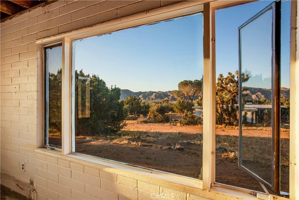 Vintage block-style mid-century sweetie! Perched high in South West Yucca Valley, this historic acreage & view home is a creative person's blank canvas. Surrounded by ancient Joshua Trees with a majestic mountain backdrop creates the magic for this rare and desirably hip masonry home! Ideal location--rural living but just down the street from old town Yucca Valley with its fun cafes and coffee houses, antique shops, art galleries & boutique merchants, and a quick drive to some fantastic hiking spots plus a short drive to the always fun Pioneertown. Needs a person with vision and construction talents to finish. The property is a 1951 build 2-bedroom 1-bathroom 1222 sq feet according to public records, with a 1.25 acre view lot. The masonry build is a rare find--highly sought after but finally the opportunity is here! The original design lends itself to bringing in lots of natural lighting as well as windows positioned to take advantage of the great views. Water connected and 200-amp electrical service panel completed. Own a home with history..come see today!