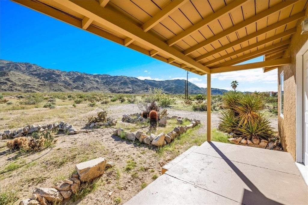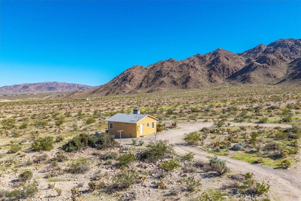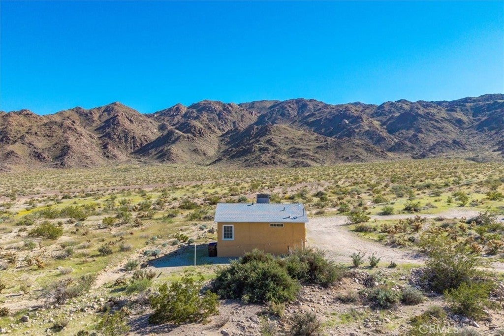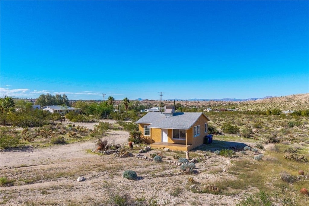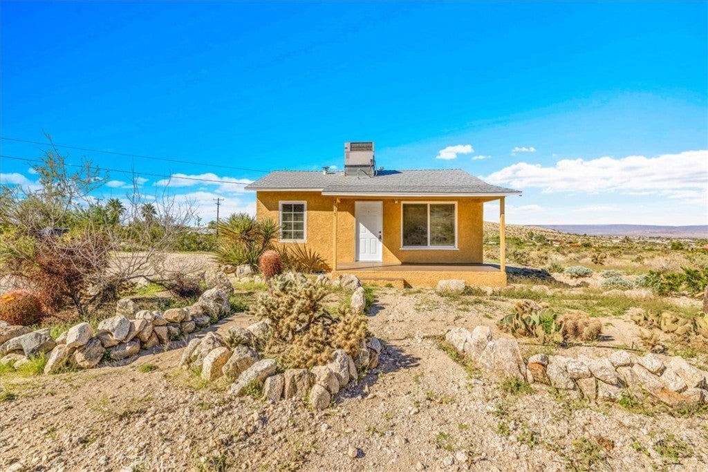 This desert retreat is the perfect escape into nature, offering both tranquility and the beauty of the desert landscape. The seclusion and the proximity to Joshua Tree National Park make it an ideal place for those seeking a peaceful, private environment while still having access to the park's natural wonders. The elevated cabin structure is a smart feature, especially for security and avoiding any runoff during the desert storms whild also providing a nice front deck to relax and unwind after a day of hiking. With the variety of wildlife, it's not just a retreat, but an opportunity for nature enthusiasts to observe the desert's ecosystem up close—tortoises, quails, and cottontails all sound like fascinating neighbors! Tucked away at the end of a quiet cul-de-sac, peaceful seclusion is almost a guarantee! There is a functional kitchen with dishwasher, refridgerator and stackable washer / dryer hookups. The structure itself has 1 Bedroom, 1 Bathroom, a living area and kitchen with breakfast nook. Central Heat and AC will help provide the perfect indoor environment. Dont miss this rare oppurtunity to capture the best that the Desert has to offer!!