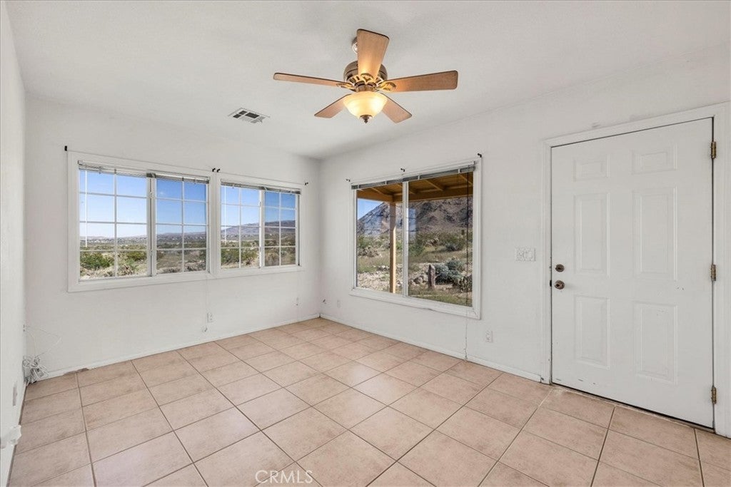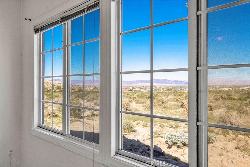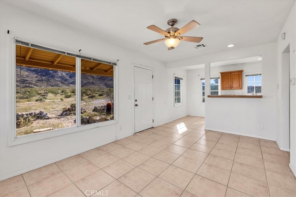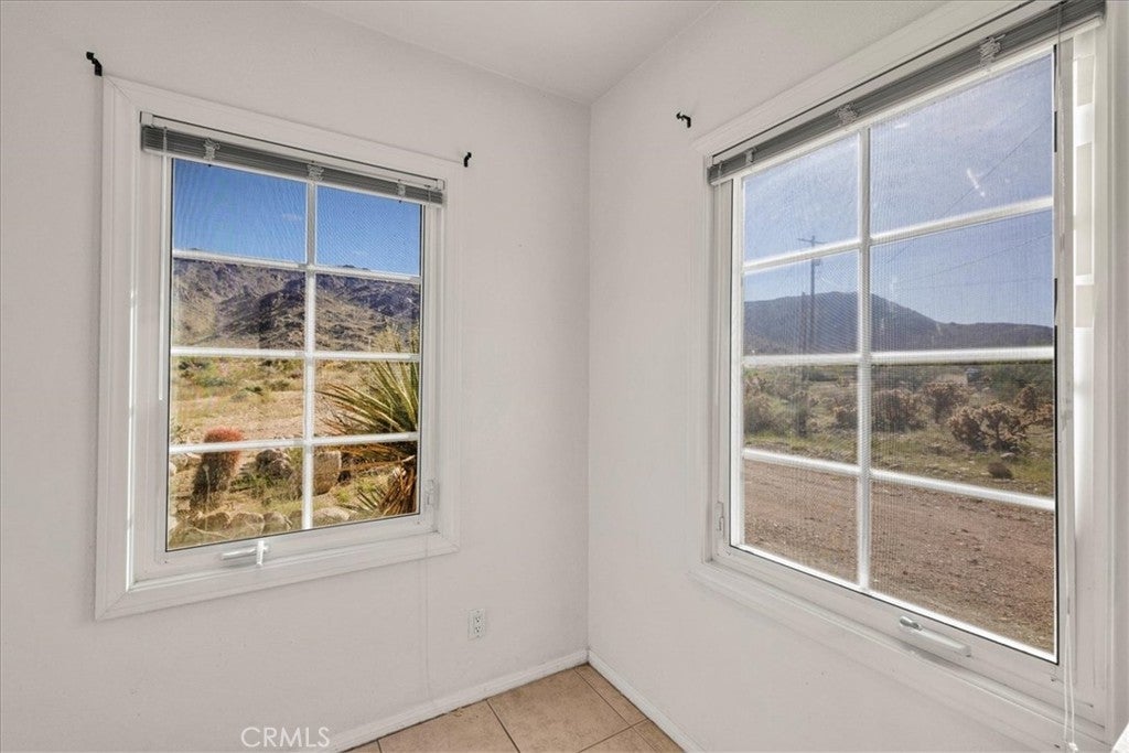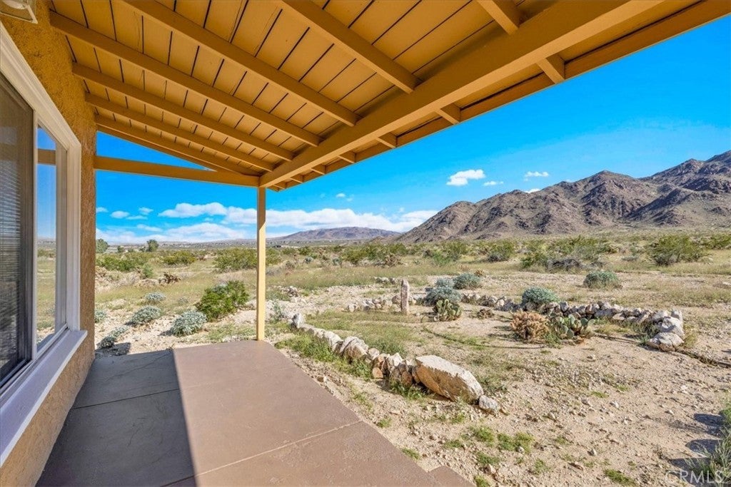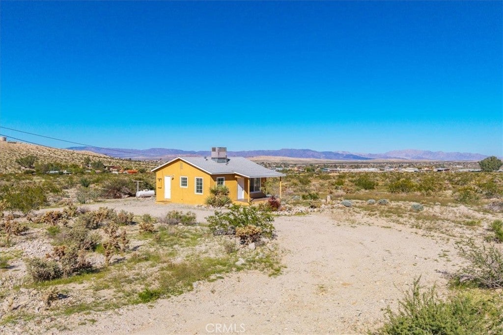 This desert retreat is the perfect escape into nature, offering both tranquility and the beauty of the desert landscape. The seclusion and the proximity to Joshua Tree National Park make it an ideal place for those seeking a peaceful, private environment while still having access to the park's natural wonders. The elevated cabin structure is a smart feature, especially for security and avoiding any runoff during the desert storms whild also providing a nice front deck to relax and unwind after a day of hiking. With the variety of wildlife, it's not just a retreat, but an opportunity for nature enthusiasts to observe the desert's ecosystem up close—tortoises, quails, and cottontails all sound like fascinating neighbors! Tucked away at the end of a quiet cul-de-sac, peaceful seclusion is almost a guarantee! There is a functional kitchen with dishwasher, refridgerator and stackable washer / dryer hookups. The structure itself has 1 Bedroom, 1 Bathroom, a living area and kitchen with breakfast nook. Central Heat and AC will help provide the perfect indoor environment. Dont miss this rare oppurtunity to capture the best that the Desert has to offer!!