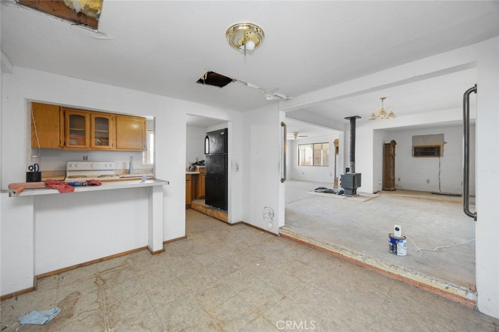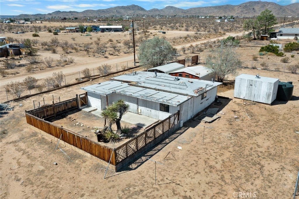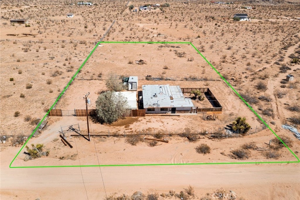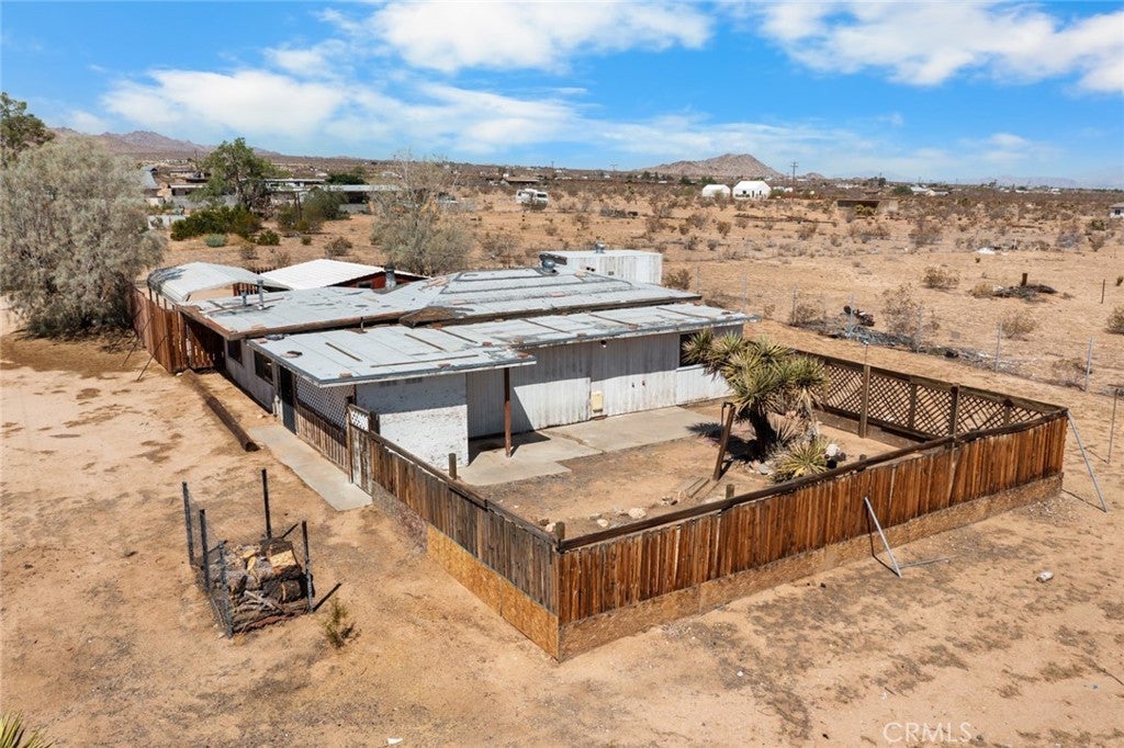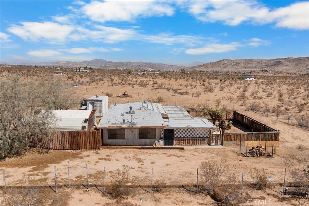 The fixer with tons of potential you've been looking for in Landers. Covered carport as well as metal garage. Fully fenced, cross-fenced and gated. Private fenced side yard anchored by native Mojave yucca. The property offers privacy and space with amazing desert and mountain views. Home is on hauled water but a water meter can easily be added through the Bighorn Desert View Water District. A new septic tank was installed in 2023. Roof is past end of life and will need a new roof. Buyers to do own their own due diligence regarding permits and codes. No repairs will be made. Cash Only.