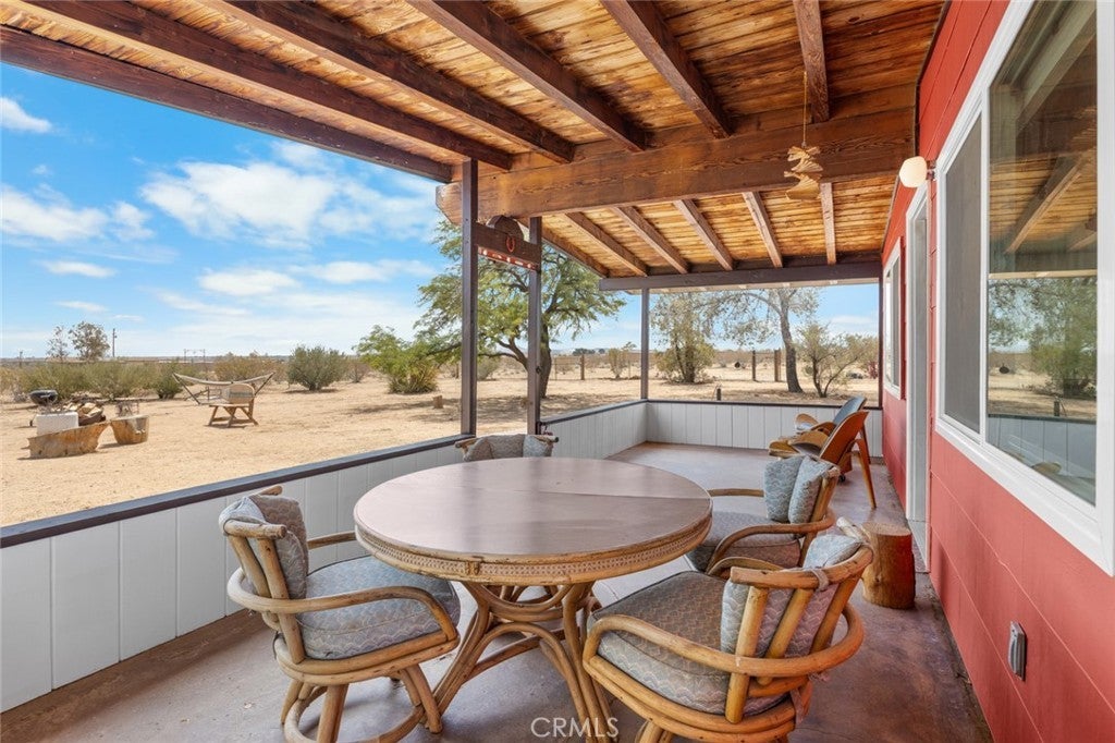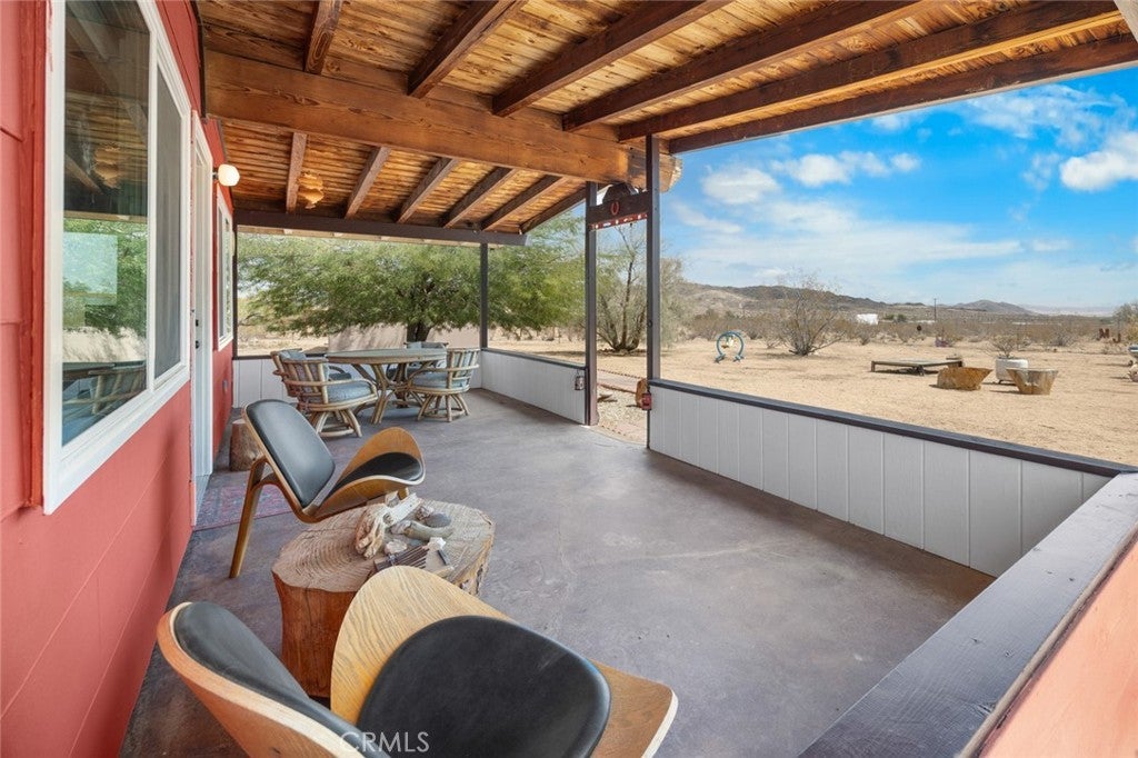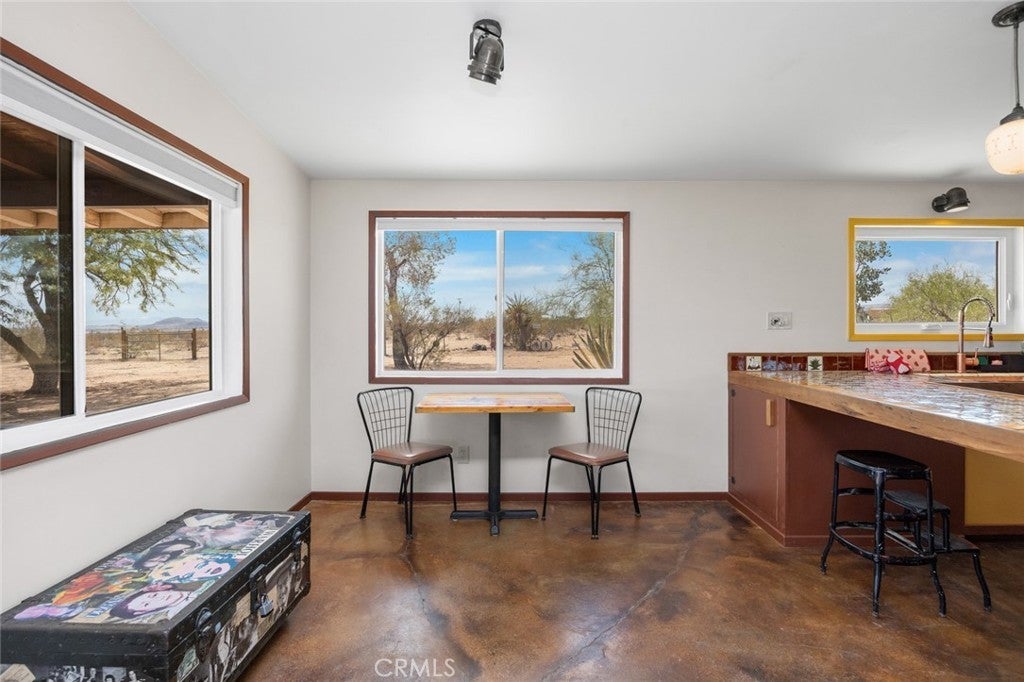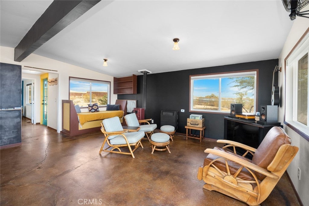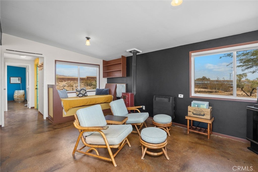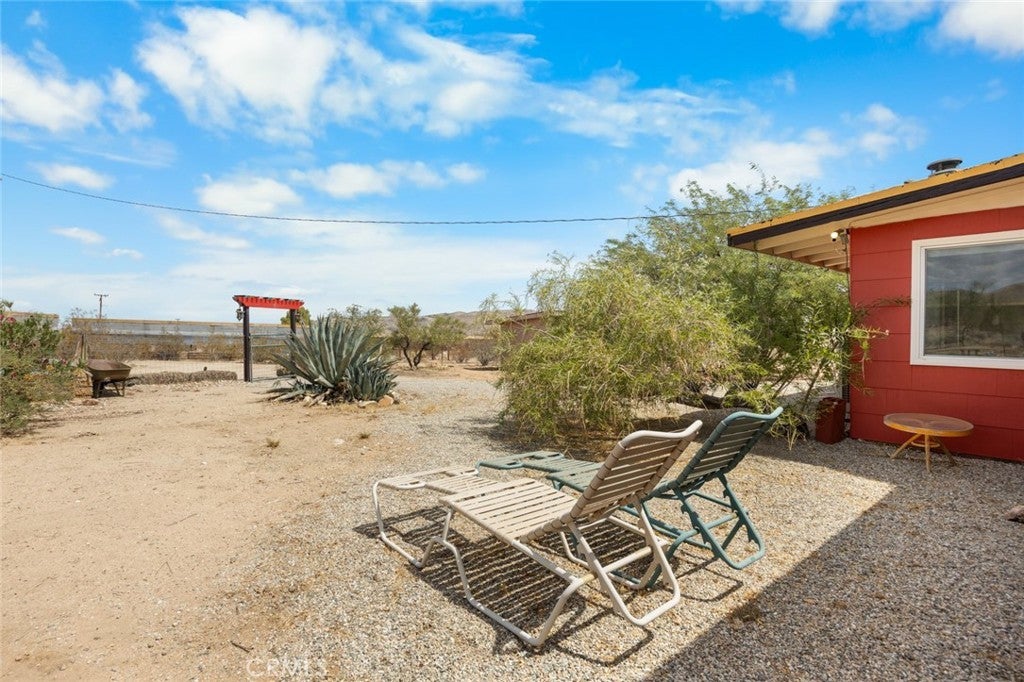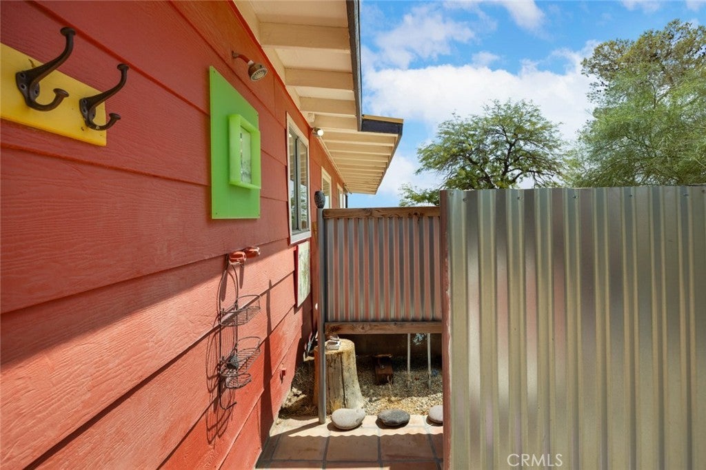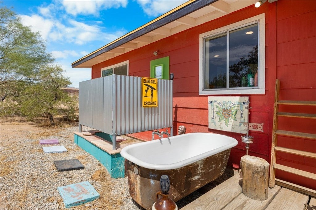Discover the hidden gem of Landers Cove! Enter via private drive, bordered by a ribbon of custom privacy fence, to find the home’s secluded spot among the mature, green trees. This vibrant home is a feast for the eyes. It’s full of fine detail, from the custom-made cabinets and vanity pulls to the bespoke bentwood cover to the cooler, each have been thoughtfully crafted. Inside, the polished concrete floors are treated with a rich copper finish, The kitchen features a hammered copper sink, while the primary bathroom boasts copper-colored tiles, in keeping with the copper theme. Beautiful Mexican ceramic tiles adorn both bathrooms and the kitchen. Cook from recipes old and new on the spotless vintage Kenmore range, or unwind on the built-in daybed. For a cozy ambiance, crank the knob to 11 with a warm fire in the imported Danish red enamel wood stove. Outside, the deep eaves of the front porch perfectly frame Landers’ iconic Goat Mountain. You’ll find both an outdoor shower and tub, along with plenty of spots sit and take in the views and starts. The extensive irrigation system keeps the flora green and happy! The 2.5 acre lot is fenced and cross fenced. A large outbuilding has plenty of room for storage or could be a launch pad for other uses. Don’t miss out on this calm, desert sanctuary!