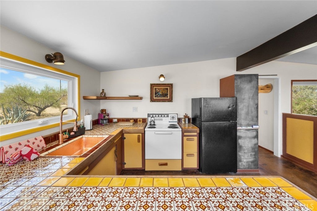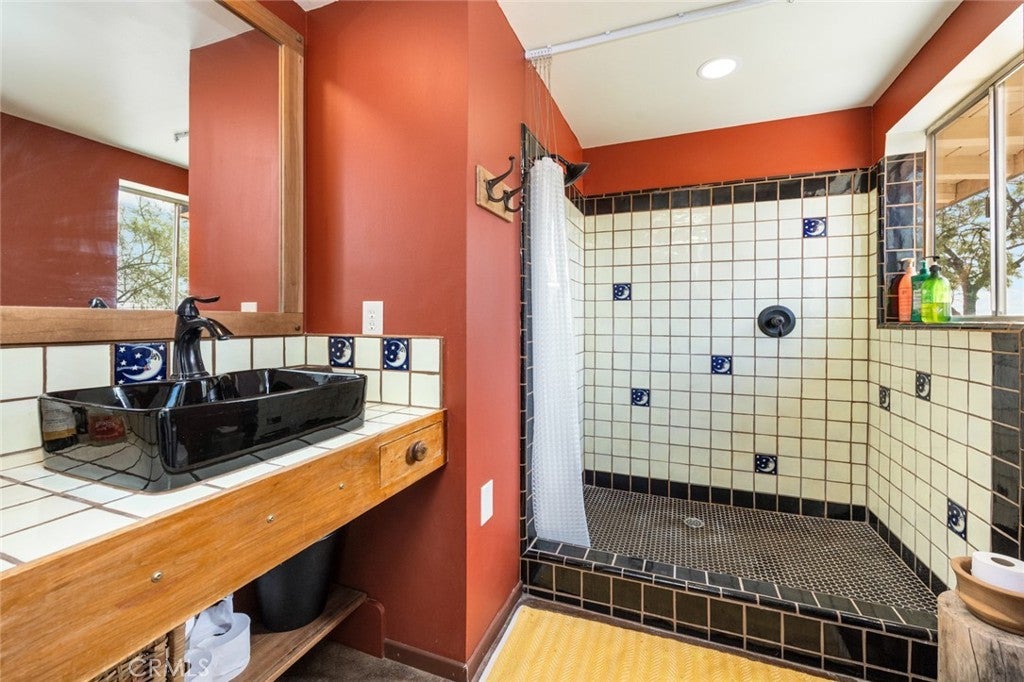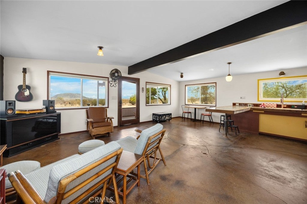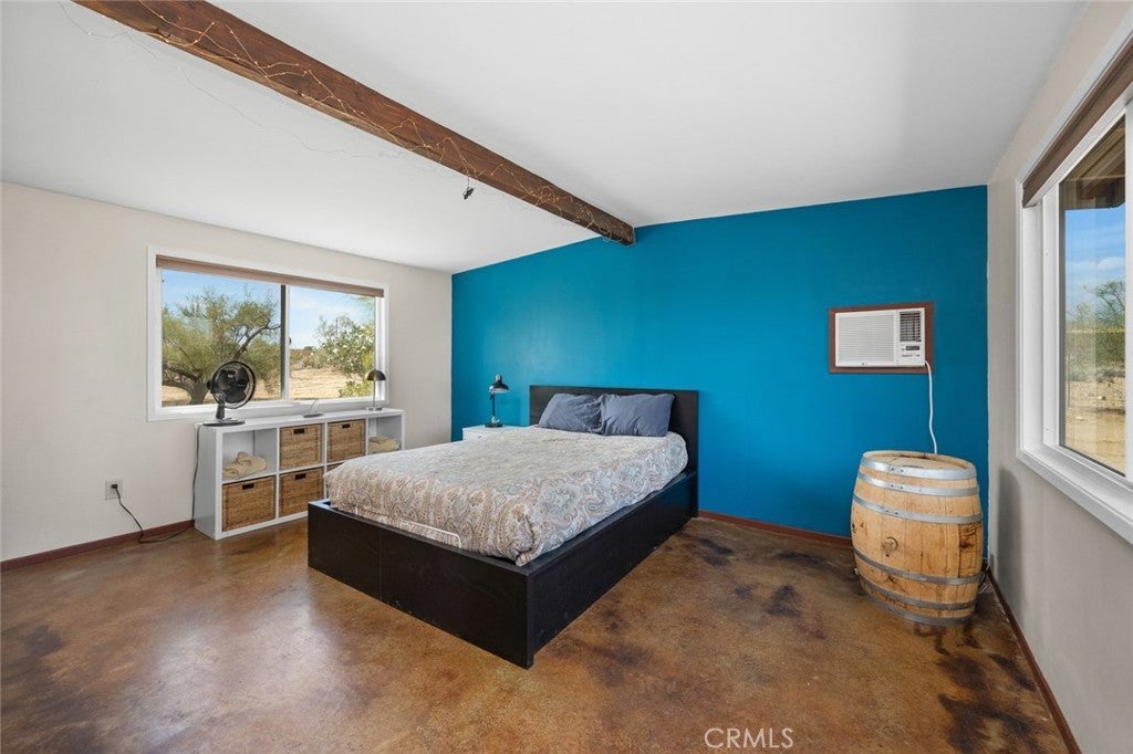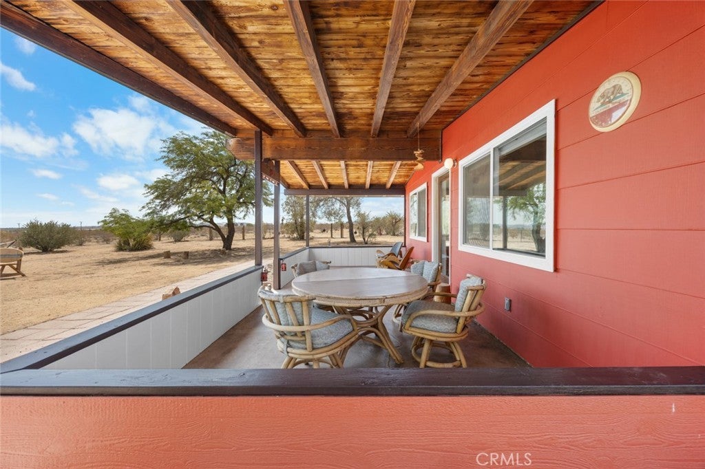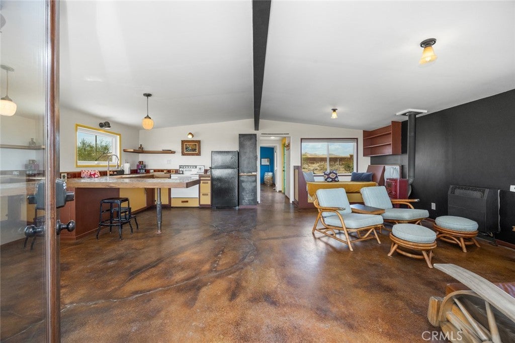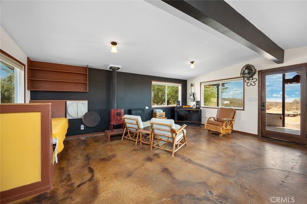 Discover the hidden gem of Landers Cove! Enter via private drive, bordered by a ribbon of custom privacy fence, to find the home’s secluded spot among the mature, green trees. This vibrant home is a feast for the eyes. It’s full of fine detail, from the custom-made cabinets and vanity pulls to the bespoke bentwood cover to the cooler, each have been thoughtfully crafted. Inside, the polished concrete floors are treated with a rich copper finish, The kitchen features a hammered copper sink, while the primary bathroom boasts copper-colored tiles, in keeping with the copper theme. Beautiful Mexican ceramic tiles adorn both bathrooms and the kitchen. Cook from recipes old and new on the spotless vintage Kenmore range, or unwind on the built-in daybed. For a cozy ambiance, crank the knob to 11 with a warm fire in the imported Danish red enamel wood stove. Outside, the deep eaves of the front porch perfectly frame Landers’ iconic Goat Mountain. You’ll find both an outdoor shower and tub, along with plenty of spots sit and take in the views and starts. The extensive irrigation system keeps the flora green and happy! The 2.5 acre lot is fenced and cross fenced. A large outbuilding has plenty of room for storage or could be a launch pad for other uses. Don’t miss out on this calm, desert sanctuary!