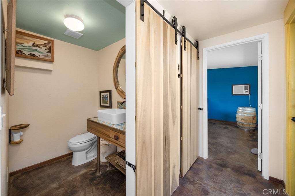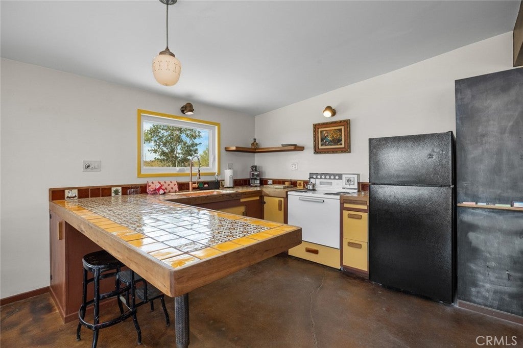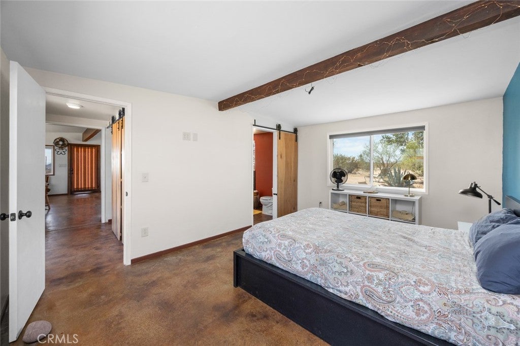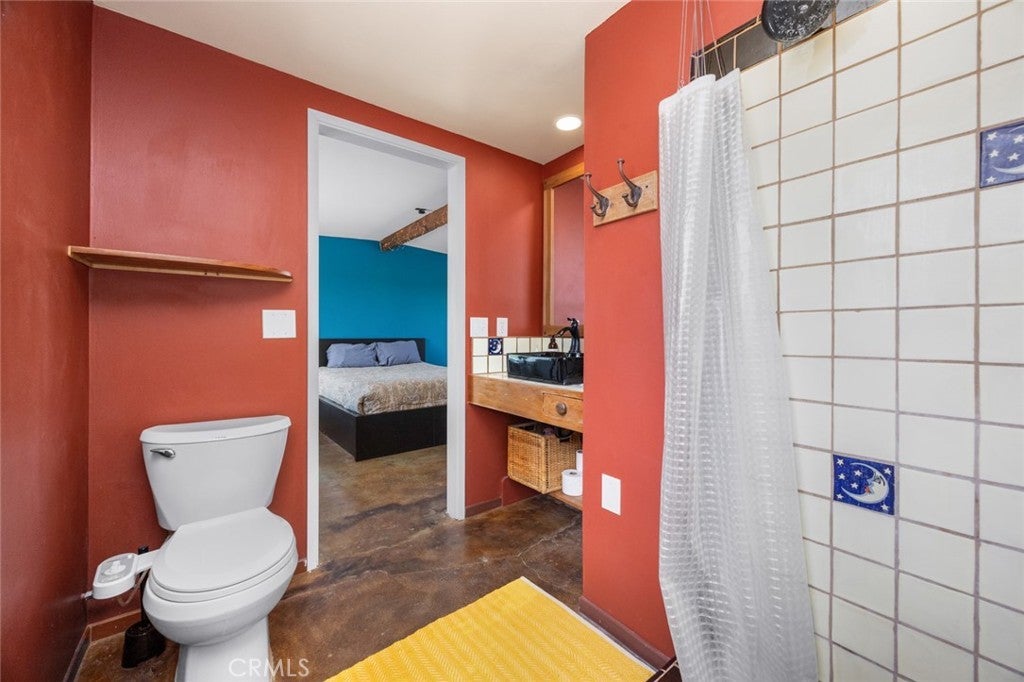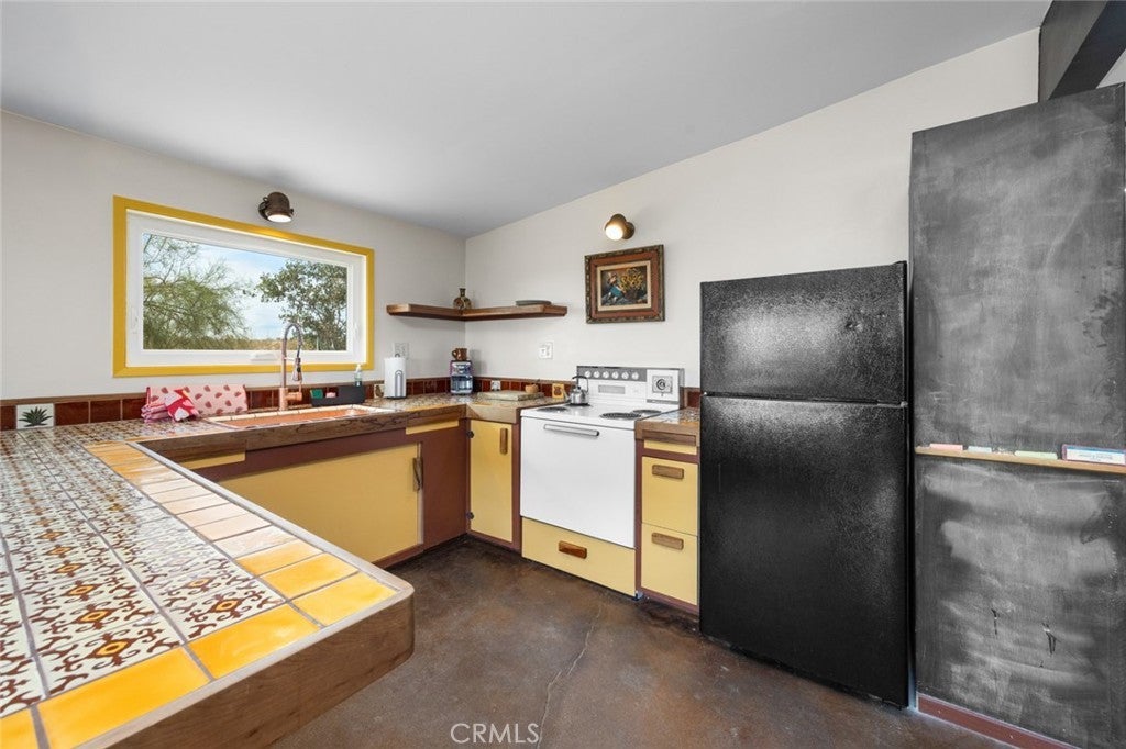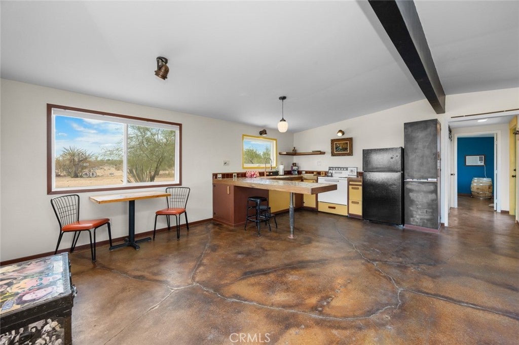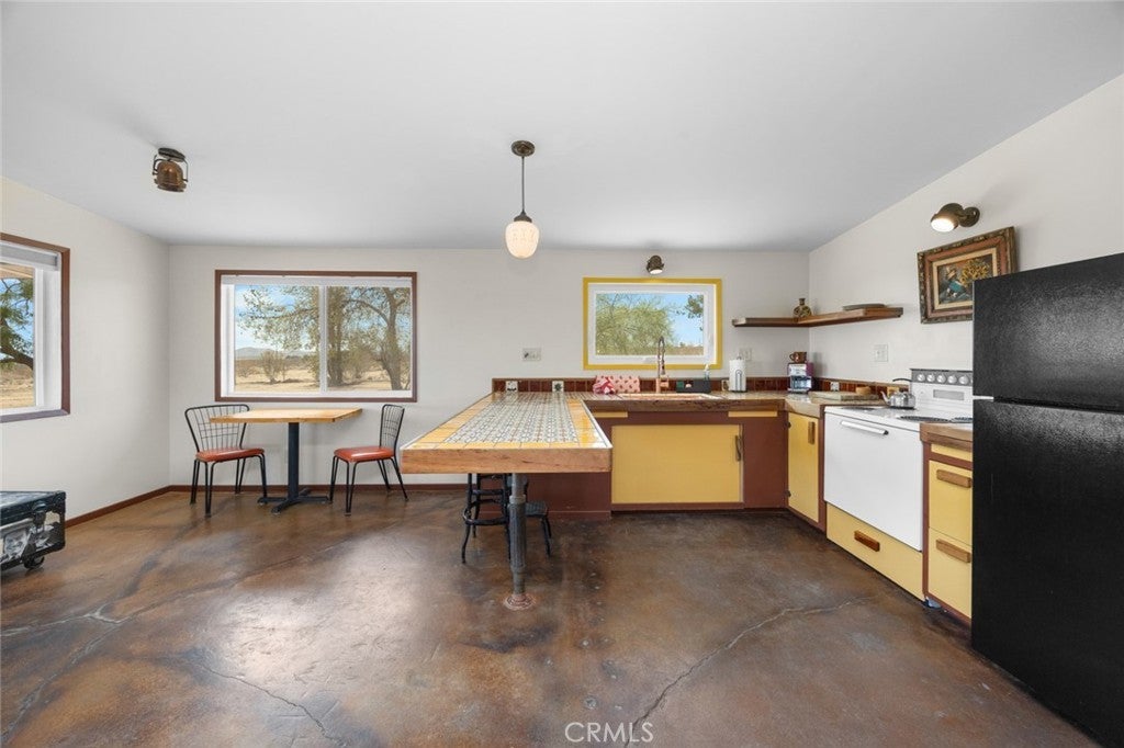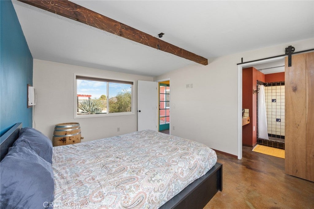 Discover the hidden gem of Landers Cove! Enter via private drive, bordered by a ribbon of custom privacy fence, to find the home’s secluded spot among the mature, green trees. This vibrant home is a feast for the eyes. It’s full of fine detail, from the custom-made cabinets and vanity pulls to the bespoke bentwood cover to the cooler, each have been thoughtfully crafted. Inside, the polished concrete floors are treated with a rich copper finish, The kitchen features a hammered copper sink, while the primary bathroom boasts copper-colored tiles, in keeping with the copper theme. Beautiful Mexican ceramic tiles adorn both bathrooms and the kitchen. Cook from recipes old and new on the spotless vintage Kenmore range, or unwind on the built-in daybed. For a cozy ambiance, crank the knob to 11 with a warm fire in the imported Danish red enamel wood stove. Outside, the deep eaves of the front porch perfectly frame Landers’ iconic Goat Mountain. You’ll find both an outdoor shower and tub, along with plenty of spots sit and take in the views and starts. The extensive irrigation system keeps the flora green and happy! The 2.5 acre lot is fenced and cross fenced. A large outbuilding has plenty of room for storage or could be a launch pad for other uses. Don’t miss out on this calm, desert sanctuary!