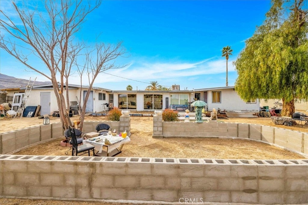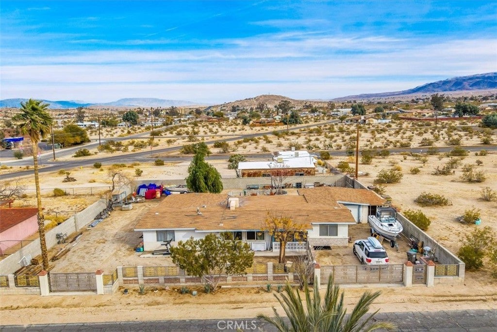 Price Drop! Spacious 1963 Home With 1,736 Square Feet Of Living Space On Oversized Lot! Located minutes from the Joshua Tree National Park and a short walk to the popular Knott's Sky Park you find this wonderful 3 bedroom 1 bathroom home that's perfect for those looking for a convenient location with plenty of room! Pulling up you'll immediately notice the expansive 1/3 acre fenced in yard. Once inside you're greeted by an large open living space with lots of natural light. Recessed lighting, ceiling fan, tasteful sectional wall, and tile flooring sweep through the floor plan complimenting the open concept. The large kitchen was designed with entertaining in mind as it opens up to the rest of the home so you can prepare your favorite meals while still being part of the group. The kitchen features beautiful quartz countertops, dishwasher, built-in range, updated hood, and an abundance of newer cabinetry! Each bedroom is spacious and is equipped with tasteful wood laminate flooring and ample closet space. The bathroom features updated dual vanity, modern mirror, hip finishes, and walk-in shower. It gets even better! Additional space can be found in the large sunroom! outfitted with recessed lighting, wood laminate flooring, dual sliding glass doors, and second kitchen! Additional features include mini-split for efficient heating and cooling, evap cooling system, 1 car garage, masonry block privacy fencing, and more! call today for your private showing!