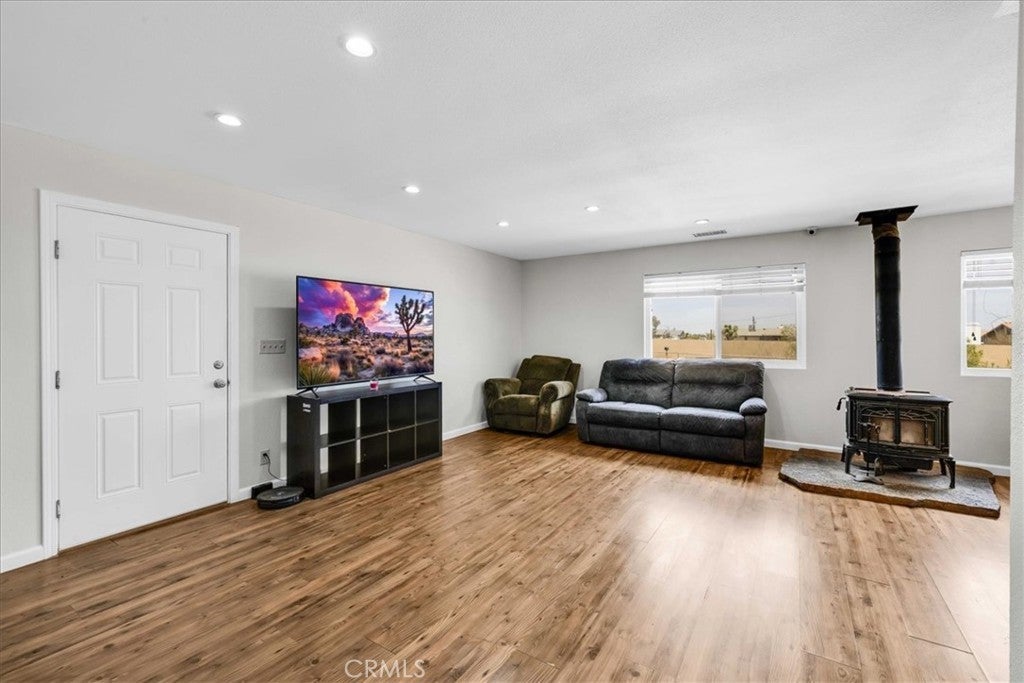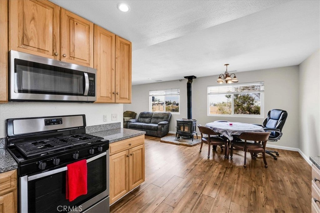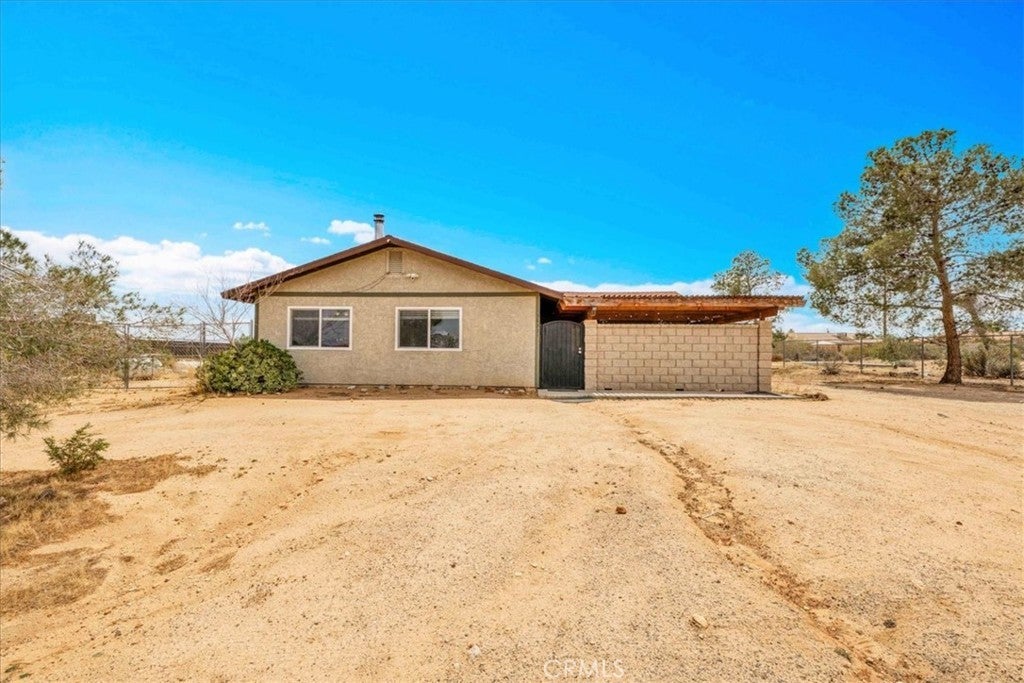 This exceptional 3-bedroom, 2.5-bathroom residence is nestled on a spacious half-acre lot in the desirable Mesa area of Yucca Valley. Conveniently located off paved Caliente St, this property offers both privacy and functionality, with thoughtful features and upgrades throughout. As you approach, you'll notice the fully fenced property, complete with a detached, fully finished garage, a sizeable storage shed, and a sunken walipini-style greenhouse—perfect for gardening enthusiasts. Majestic pines provide shade and add to the serene ambiance of the grounds. The entrance features a charming courtyard, fully enclosed with high block walls for privacy, wind protection, and shaded for comfort—a true outdoor retreat. Step inside to discover a spacious open-concept living area, boasting newer dual-pane windows, LED lighting, and a cozy wood stove set on a striking rustic limestone hearth. The adjoining dining area flows seamlessly into the updated kitchen, which impresses with its sleek granite countertops, stainless steel appliances, and abundant warm wooden cabinetry. A side door offers convenient access to the side yard with RV parking. The guest bathroom is beautifully finished with a tiled tub/shower combo and tiled countertops. Two guest bedrooms provide plenty of comfort; one features a large closet, while the other offers a walk-in closet and an attached private half bath. The large primary suite is a haven of relaxation, with its own private sliding door to the courtyard, a large walk-in closet, and a luxurious master bathroom with a fully tiled walk-in shower and tiled countertops. The home is equipped with a large laundry and utility room, providing extra storage and backyard access. Climate control includes a new HVAC unit to ensure year-round comfort. This home offers the perfect combination of rural tranquility and modern convenience. Don’t miss your chance to own this unique gem in Yucca Valley! Schedule a showing today! ???