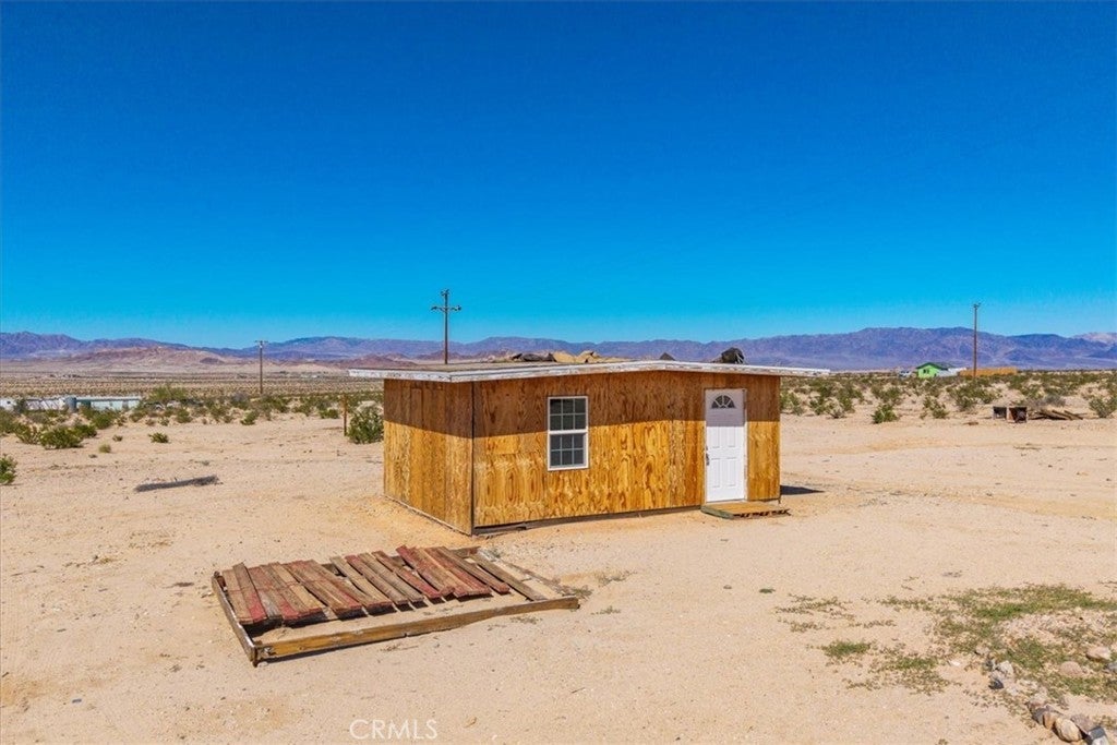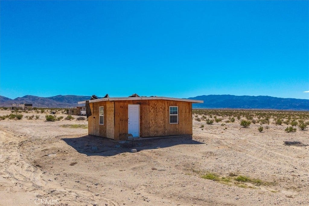 This charming nearly-complete bungalow-style cabin rests on 5 acres in the highly desirable Wonder Valley area, just outside 29 Palms. A true desert gem, where time slows and wide-open views surround you in every direction. Spend your evenings under a blanket of stars, embraced by the quiet beauty of the high desert. The interior is already wired for electricity, with power nearby—simply step in and finish the vision. Buyer to verify boundaries and utilities. The Stars Are Worth The Price of Admission.