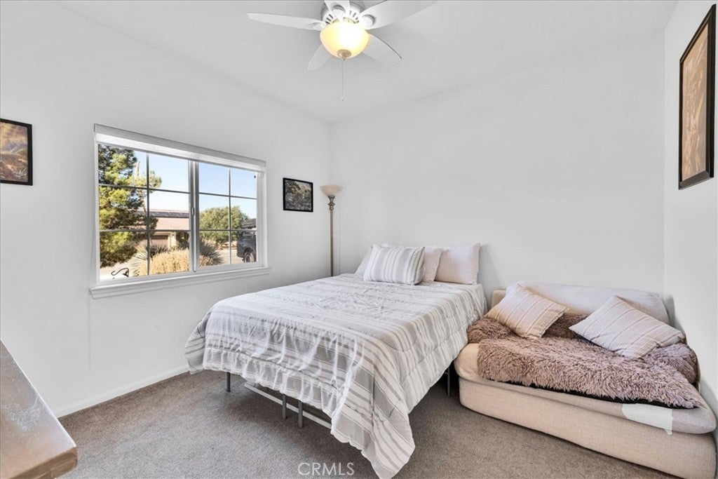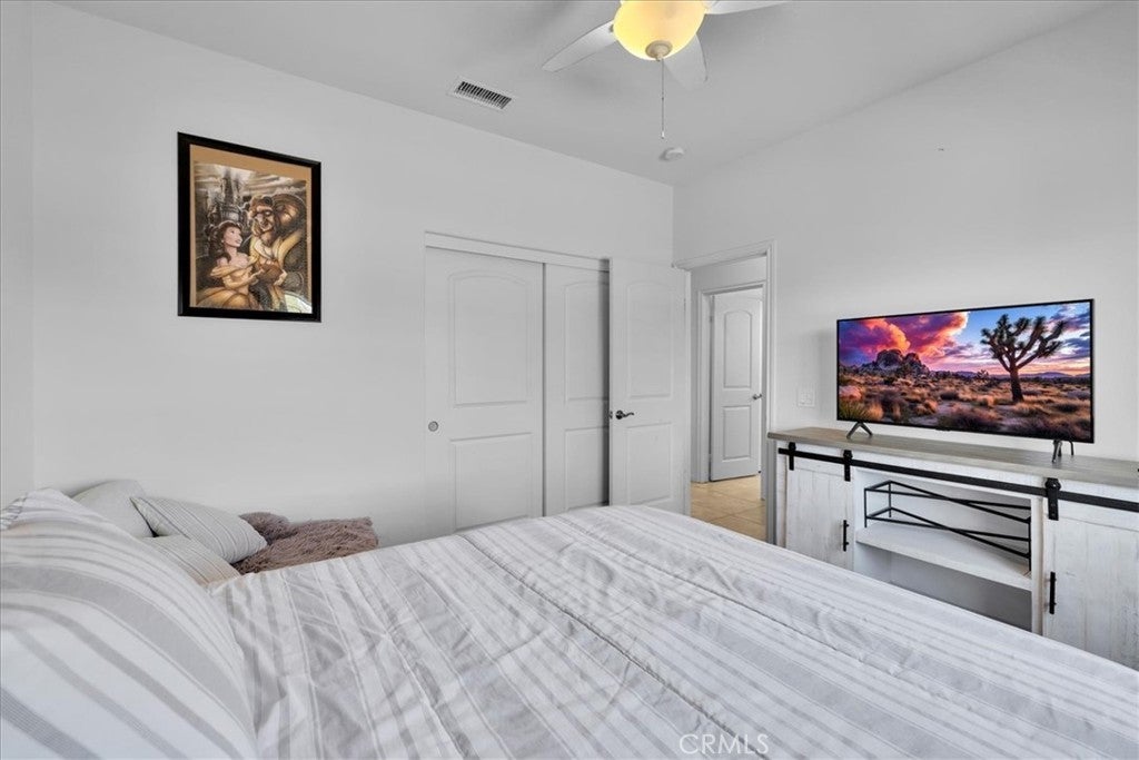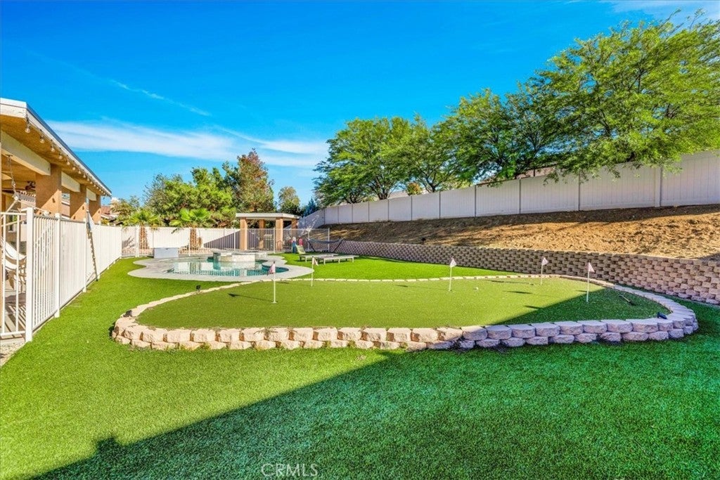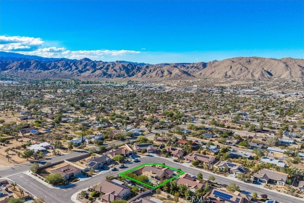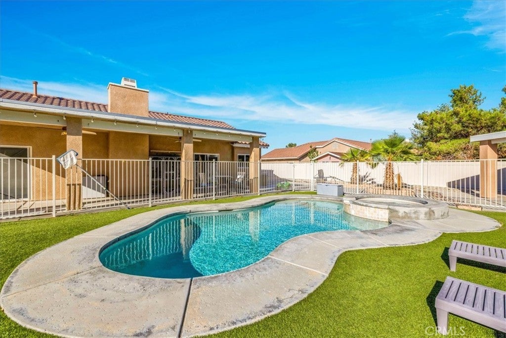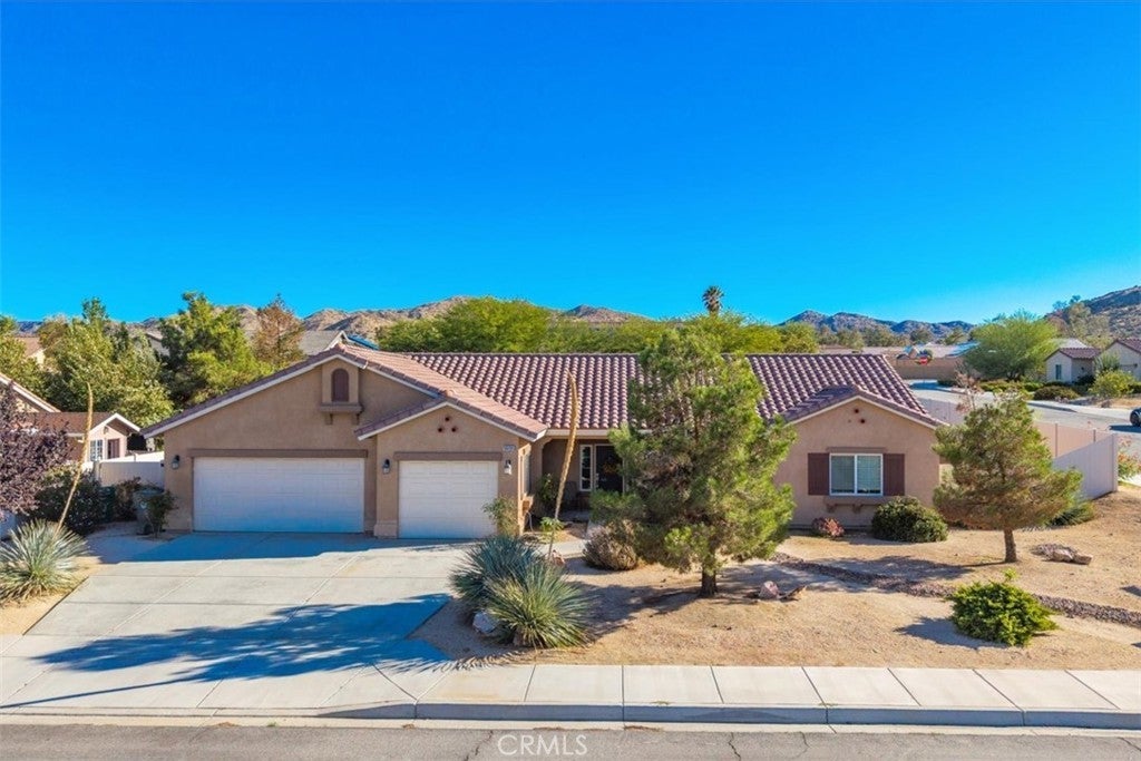Welcome to 56135 Nez Perce, a stunning turn-key POOL home located in the highly desirable Mesquite neighborhood of Yucca Valley. This beautifully maintained 3 bedroom, 2 bath property is nicely situated on a large corner lot and features 1,764 square feet of living space. As you step inside the bright & airy great room you'll find 10-foot ceilings, earth-toned tile flooring, a lovely gas fireplace and large windows that let in an abundance of natural light. This home's modern style and open-concept layout is one to be desired. The living room flows effortlessly into the dining and kitchen area complete with recessed lighting, upgraded appliances, a center island with beautiful granite countertops and bar seating, ample cabinet & counter space and a walk-in pantry. All bedrooms have carpeted floors & ceiling fans, and the primary bedroom adorns french doors and a sliding glass door that leads to the back patio. The ensuite bathroom is sure to impress with a dual sink vanity, jetted tub, walk-in shower and huge walk-in closet. There is also a convenient indoor laundry room just off the kitchen with a utility sink and additional cabinetry for storage. That's just the inside! The backyard is truly an entertainer's paradise. From the awe-inspiring in-ground pool and spa to the turf putting green, large covered patio with ceiling fans, stucco pergola, Vinyl privacy fencing and ample space for BBQs and get togethers, it's like having a little resort right outside your back door. Not to mention the oversized 3 car garage, low HOA and close proximity to town, schools, shopping, eateries & more! Come take a look & let this homes charming allure do the rest, your new desert home or weekend retreat awaits!