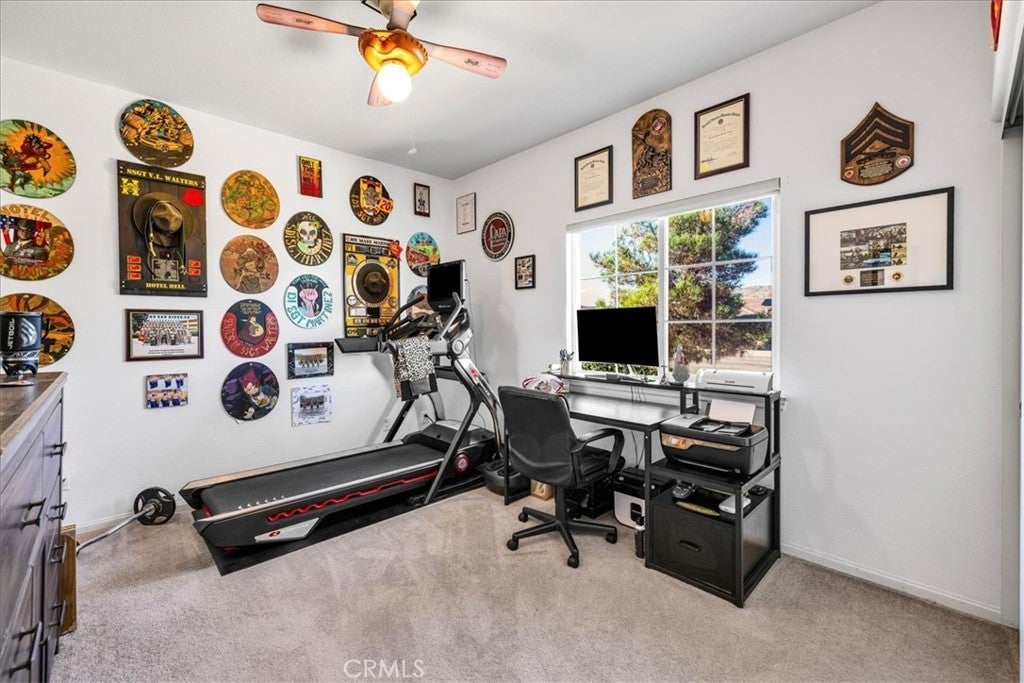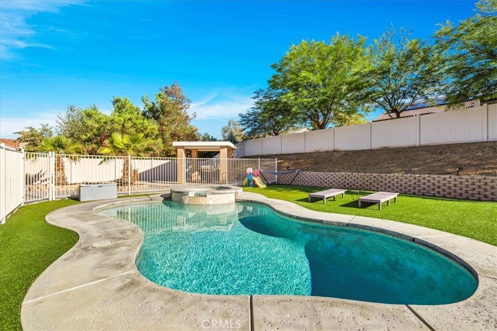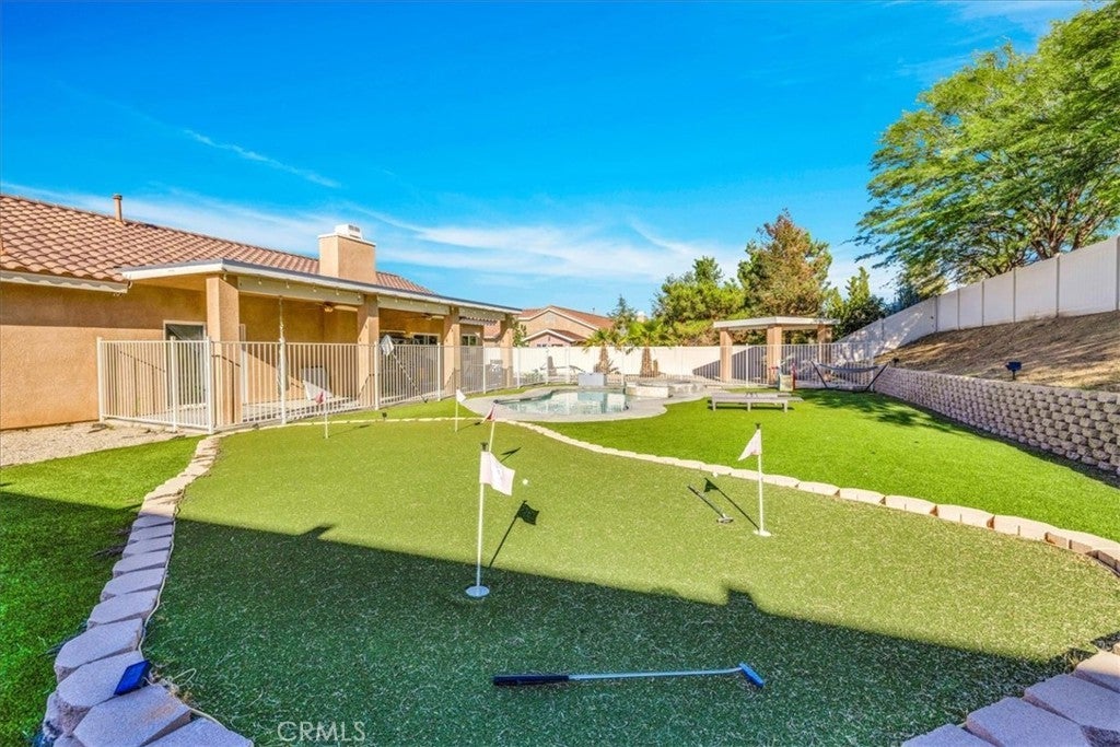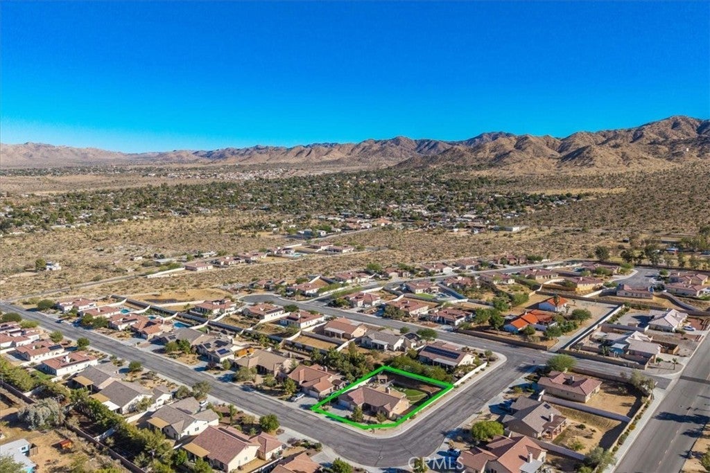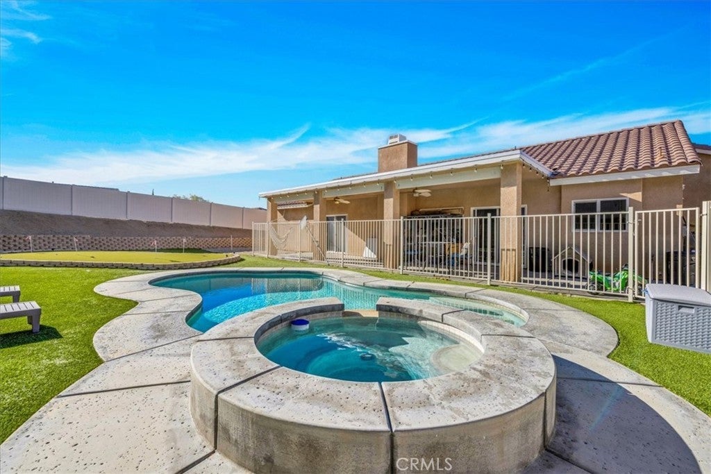 *2-1 BUY-DOWN SELLER CONCESSION* Welcome to 56135 Nez Perce, a stunning turn-key POOL home located in the highly desirable Mesquite neighborhood of Yucca Valley. This beautifully maintained 3 bedroom, 2 bath property is nicely situated on a large corner lot and features 1,764 square feet of living space. As you step inside the bright & airy great room you'll find 10-foot ceilings, earth-toned tile flooring, a lovely gas fireplace and large windows that let in an abundance of natural light. This home's modern style and open-concept layout is one to be desired. The living room flows effortlessly into the dining and kitchen area complete with recessed lighting, upgraded appliances, a center island with beautiful granite countertops and bar seating, ample cabinet & counter space and a walk-in pantry. All bedrooms have carpeted floors & ceiling fans, and the primary bedroom adorns french doors and a sliding glass door that leads to the back patio. The ensuite bathroom is sure to impress with a dual sink vanity, jetted tub, walk-in shower and huge walk-in closet. There is also a convenient indoor laundry room just off the kitchen with a utility sink and additional cabinetry for storage. That's just the inside! The backyard is truly an entertainer's paradise. From the awe-inspiring in-ground pool and spa to the turf putting green, large covered patio with ceiling fans, stucco pergola, Vinyl privacy fencing and ample space for BBQs and get togethers, it's like having a little resort right outside your back door. Not to mention the oversized 3 car garage, low HOA and close proximity to town, schools, shopping, eateries & more! Come take a look & let this homes charming allure do the rest, your new desert home or weekend retreat awaits!