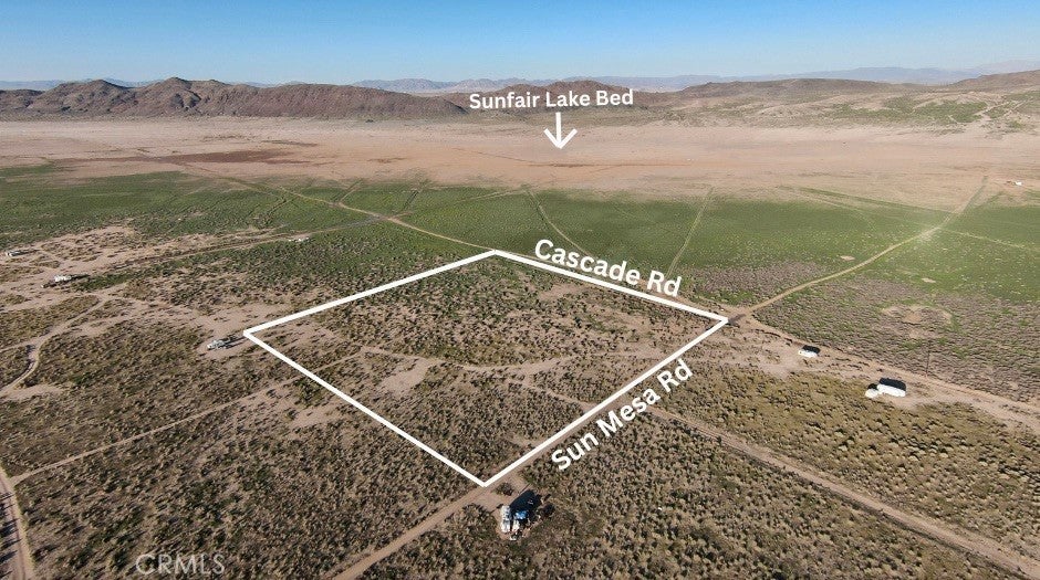 Discover 10 acres of stunning desert landscape on the border of SunFair West and SunFair East, placing you right at the doorstep of the SunFair Lakebed. Perfectly positioned at the corner of Sun Mesa Rd and Cascade Rd, this parcel offers both easy access and ultimate seclusion—an ideal spot to escape the busyness of everyday life. Whether you’re looking to build your dream desert retreat, invest in future development, or simply enjoy a unique private getaway, this lot delivers. Overhead powerlines make utility connection simple, while a private well will be needed for water. All lot lines shown in photos are approximate. Buyer to verify access to utilities and all property details.