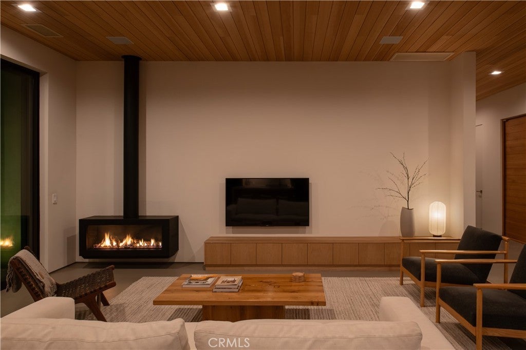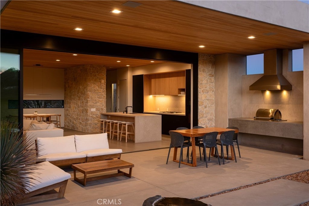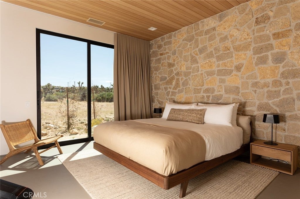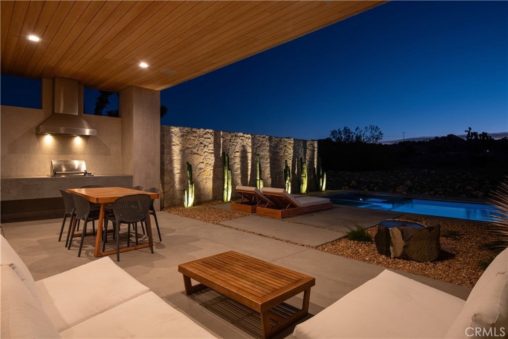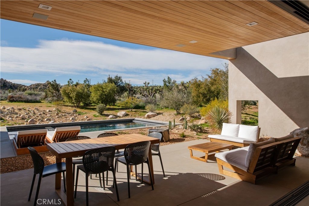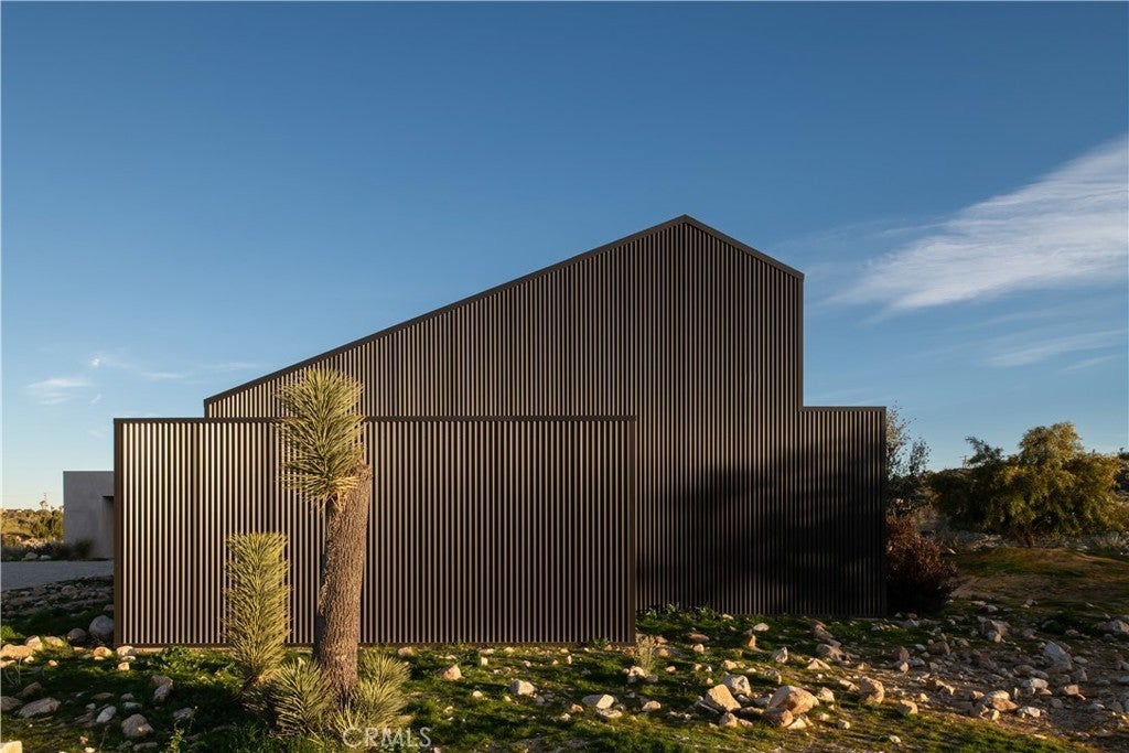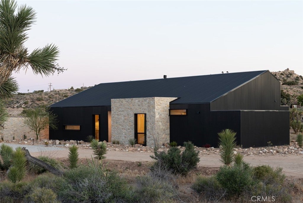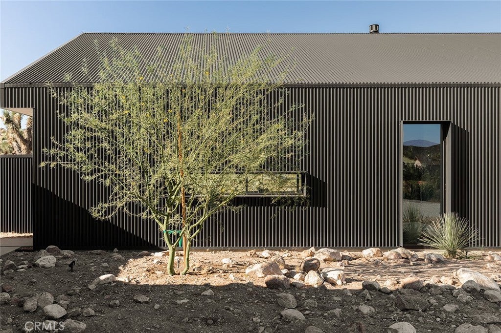 Architecturally significant and quietly dramatic, 5047 Brisbane Ave embodies modern desert luxury living. Set on 2.29 acres in a discreet Yucca Valley enclave with minimal traffic and wide-open sky, the property offers rare tranquility without sacrificing proximity to town, hiking trailheads, and local amenities. Completed in 2023, the 3-bedroom, 2-bath residence spans 2,014 sq ft of thoughtfully designed interior living space. Expansive glazing frames cinematic views of Joshua trees, boulders, and distant mountain ranges. Through careful siting and curated landscaping, the pool and bedroom wing feel quietly protected - a rare architectural balance of privacy and neighborhood ease. Inside, refined materials and quiet luxury define the home. A chef’s kitchen with Miele appliances and Dekton surfaces flows into open living spaces accented by Delta Millworks ceilings, custom doors, and a sleek Ortal fireplace. Spa-like baths feature concrete vanities, curated fixtures, and a freestanding tub ideal for seasonal stays and slow mornings. Dual HVAC zones and high-performance systems ensure year-round comfort. Outdoor living is immersive and intentional: a sparkling pool and spa oriented toward panoramic desert terrain, covered alfresco dining with FireMagic grilling, and layered desert landscaping that elevates sunset lounging, stargazing, and weekend entertaining under the High Desert sky. Offered fully furnished and turnkey, the property appeals to buyers seeking a full-time residence, luxury second home, or flexible holding with optional income potential. Currently operating as an active luxury short-term rental, it demonstrates demand within the modern architecture segment for those considering 1031 exchanges or passive models (buyer to verify). The home offers curated privacy rather than remote seclusion, a combination many desert buyers now actively seek. A rare opportunity to own a modern desert home where architecture, landscape, and livability converge in one of Yucca Valley’s most desirable pockets.