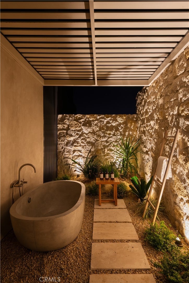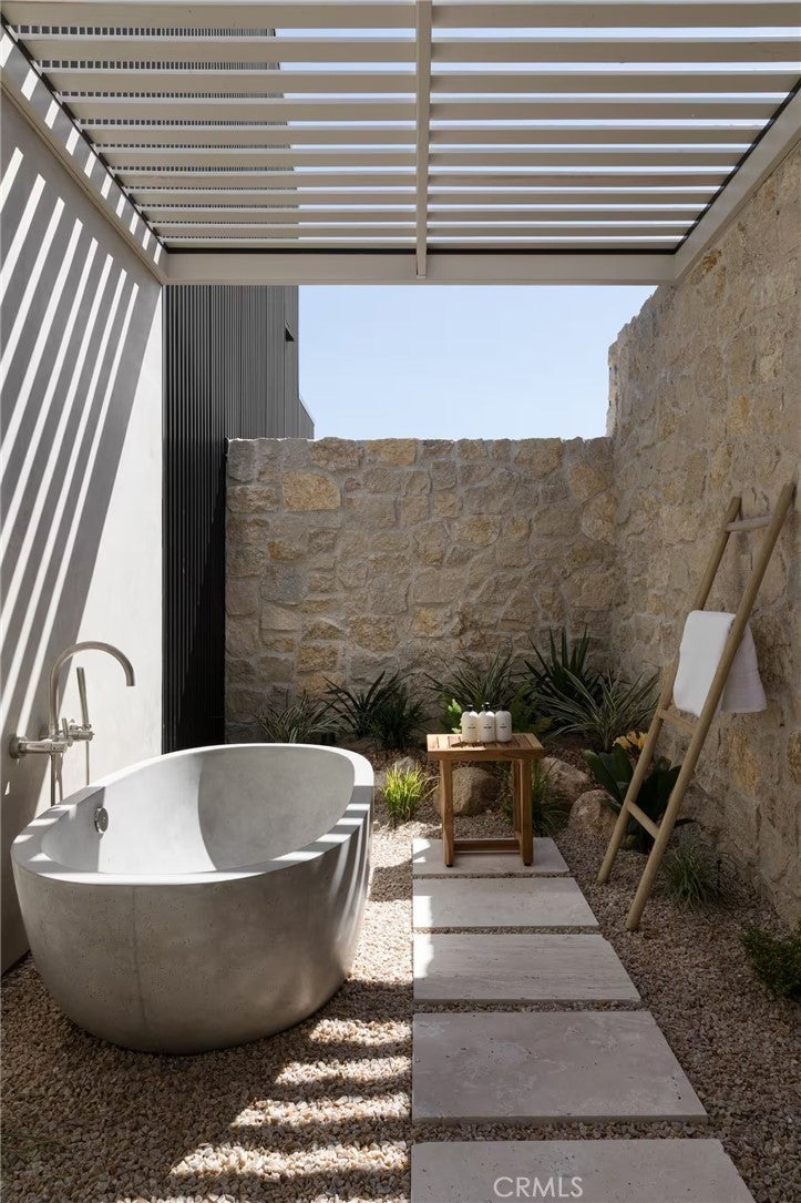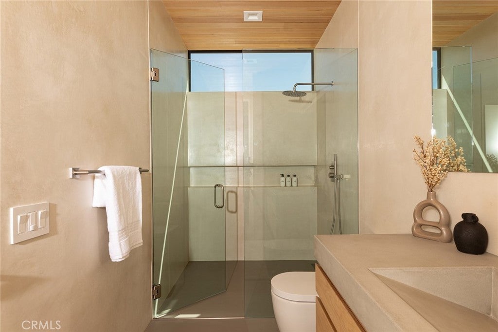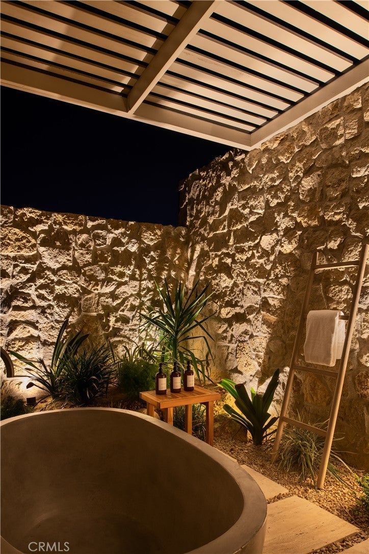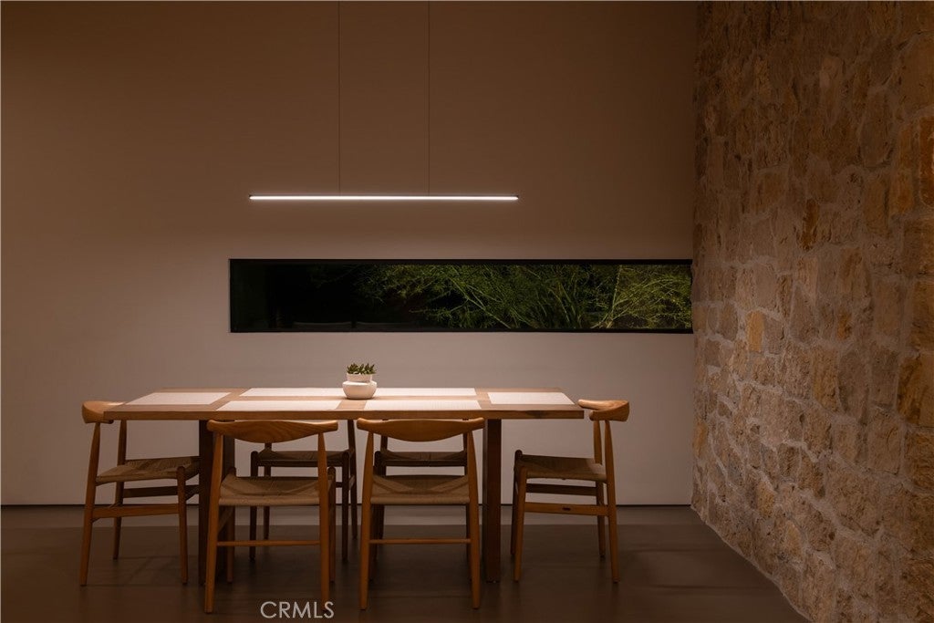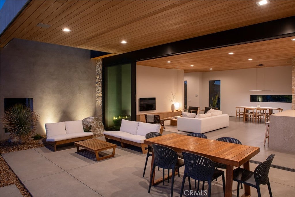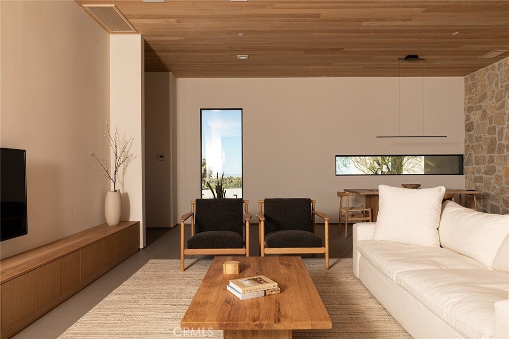 Architecturally significant and quietly dramatic, 5047 Brisbane Ave embodies modern desert luxury living. Set on 2.29 acres in a discreet Yucca Valley enclave with minimal traffic and wide-open sky, the property offers rare tranquility without sacrificing proximity to town, hiking trailheads, and local amenities. Completed in 2023, the 3-bedroom, 2-bath residence spans 2,014 sq ft of thoughtfully designed interior living space. Expansive glazing frames cinematic views of Joshua trees, boulders, and distant mountain ranges. Through careful siting and curated landscaping, the pool and bedroom wing feel quietly protected - a rare architectural balance of privacy and neighborhood ease. Inside, refined materials and quiet luxury define the home. A chef’s kitchen with Miele appliances and Dekton surfaces flows into open living spaces accented by Delta Millworks ceilings, custom doors, and a sleek Ortal fireplace. Spa-like baths feature concrete vanities, curated fixtures, and a freestanding tub ideal for seasonal stays and slow mornings. Dual HVAC zones and high-performance systems ensure year-round comfort. Outdoor living is immersive and intentional: a sparkling pool and spa oriented toward panoramic desert terrain, covered alfresco dining with FireMagic grilling, and layered desert landscaping that elevates sunset lounging, stargazing, and weekend entertaining under the High Desert sky. Offered fully furnished and turnkey, the property appeals to buyers seeking a full-time residence, luxury second home, or flexible holding with optional income potential. Currently operating as an active luxury short-term rental, it demonstrates demand within the modern architecture segment for those considering 1031 exchanges or passive models (buyer to verify). The home offers curated privacy rather than remote seclusion, a combination many desert buyers now actively seek. A rare opportunity to own a modern desert home where architecture, landscape, and livability converge in one of Yucca Valley’s most desirable pockets.