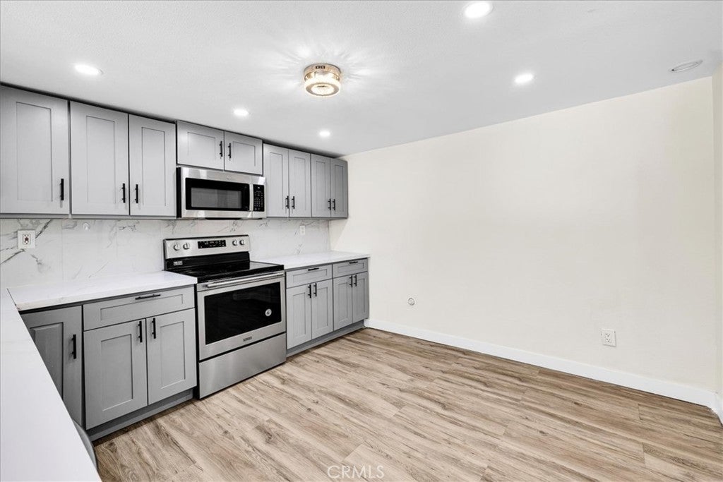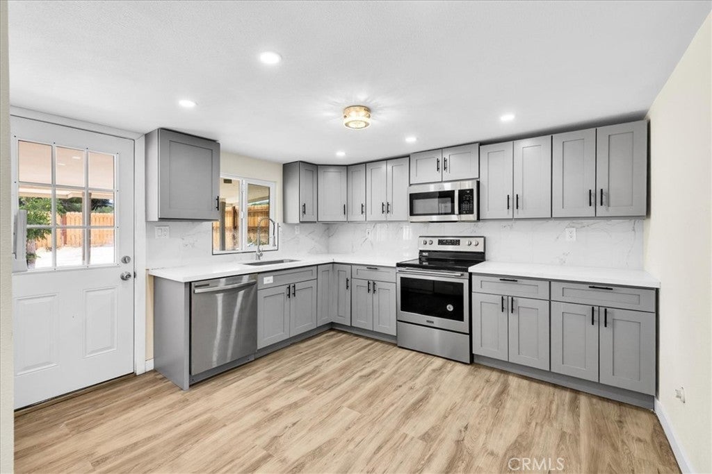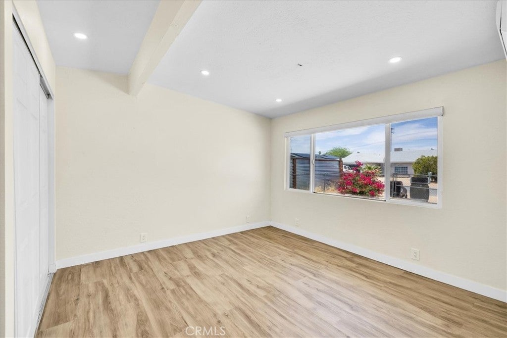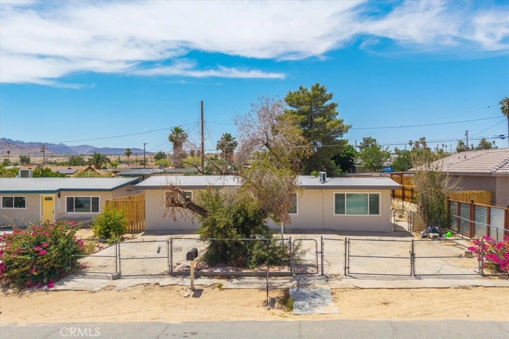 Welcome to your beautifully refreshed desert retreat! This move-in-ready 3-bedroom, 2-bathroom home blends modern updates with everyday comfort, making it the perfect choice for full-time living, a weekend getaway, or a smart investment opportunity. Step inside to discover brand new flooring throughout, freshly painted interiors, and sleek recessed lighting that creates a bright, contemporary feel. The fully upgraded kitchen is a true standout, featuring soft-close cabinets, gorgeous quartz countertops, and a clean, modern design that’s both functional and inviting. The guest bathroom boasts a tiled shower, while the primary suite offers a relaxing shower-tub combo—ideal for unwinding after a day of desert adventures. For year-round comfort, each room is equipped with efficient mini-split systems for heating and cooling. The fully fenced backyard provides privacy and endless potential—whether you envision a serene desert garden, a cozy entertaining space, or a spot to soak up the stars. Perfectly situated close to Joshua Tree National Park, local shops, dining, and schools, this home offers both convenience and a taste of desert tranquility. Don’t miss your chance to make this updated 29 Palms gem your own! Buyer to independently verify all information, including but not limited to permits, property use, bedroom/bathroom counts, square footage, school districts, and enrollment availability. Buyer is strongly encouraged to conduct their own investigations and inspections to confirm the accuracy of all information provided.