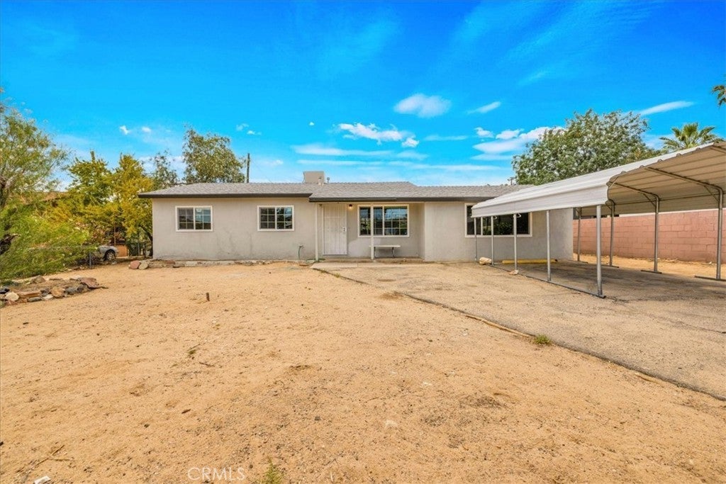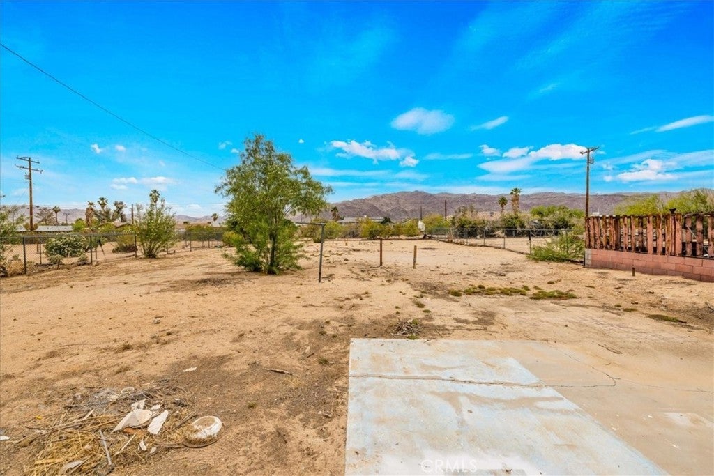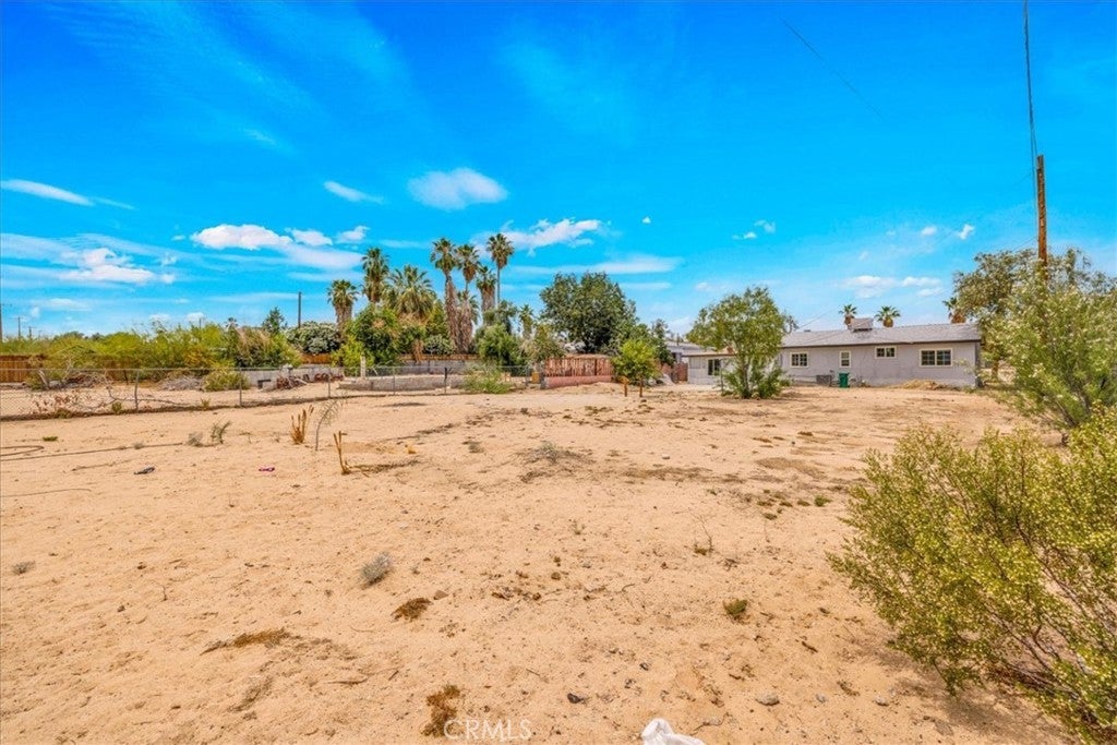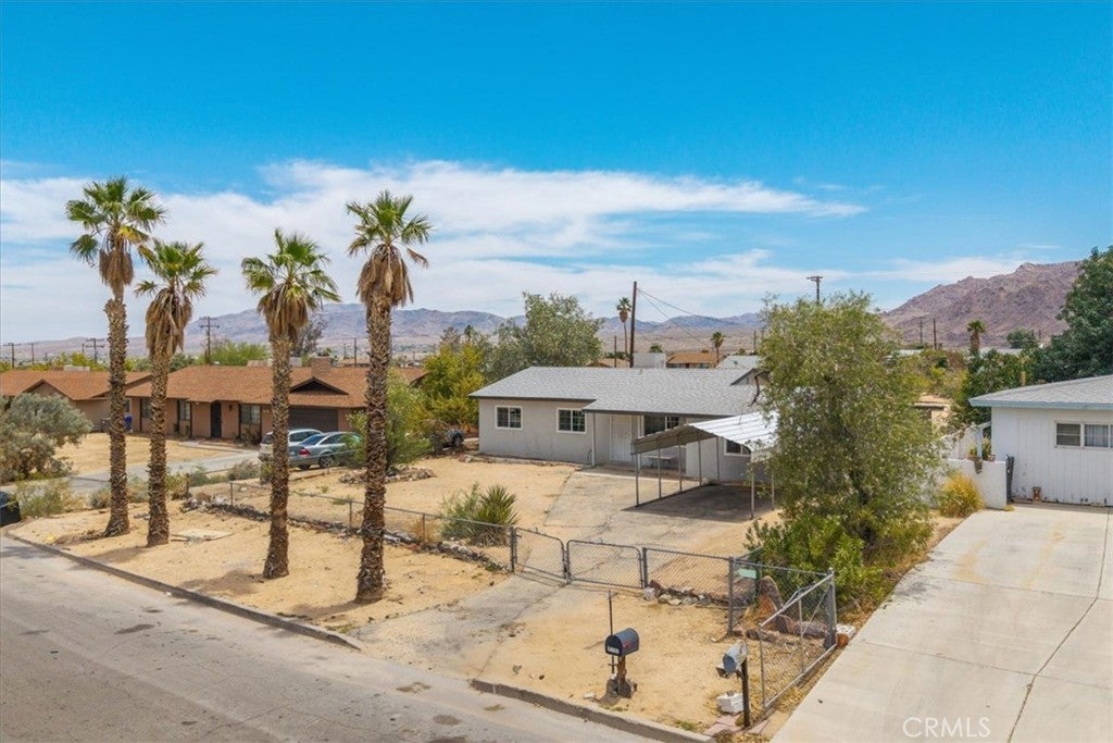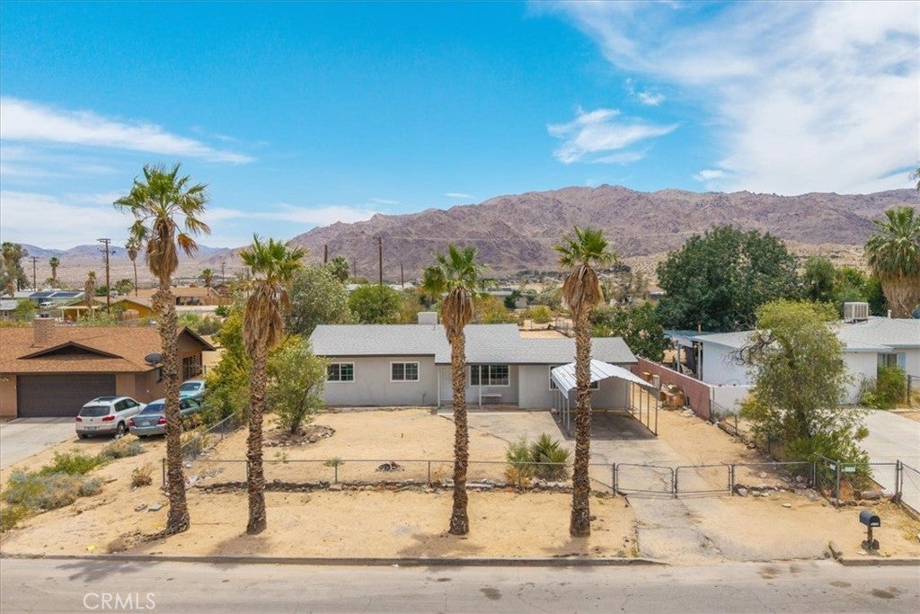 Welcome to this beautifully updated desert home! In the growing community of 29 Palms, this 4-bedroom, 2-bathroom residence blends modern style with timeless desert charm. Thoughtfully upgraded throughout, it’s move-in ready and designed for comfortable living. Step inside to discover new flooring, fresh interior paint, and recessed lighting that creates a bright, contemporary atmosphere. The upgraded kitchen is the heart of the home, featuring soft-close cabinetry, sleek quartz countertops, and ample space for cooking and entertaining. The living room offers a warm and inviting feel with its electric fireplace—perfect for cozy evenings. The guest bathroom includes a convenient shower-tub combo, while the primary suite features a beautifully tiled walk-in shower for a touch of luxury. Efficient mini-split systems provide heating and cooling throughout the home, ensuring year-round comfort. Outside, the spacious, fully fenced backyard offers privacy and endless potential—ideal for entertaining, gardening, or simply relaxing under the desert night sky. Make this updated 29 Palms gem your own—perfect as a full-time residence, vacation home, or investment property. Buyer to independently verify all MLS information, including but not limited to permits, property use, bedroom/bathroom counts, square footage, school districts, and enrollment availability. Buyer is strongly encouraged to conduct their own investigations and inspections to confirm the accuracy of all information provided.