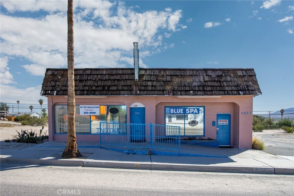 $275K!!! BEST BUY COMMERCIAL in 29 Palms!!! TWO BUSINESS FRONT BUILDINGS (attached) in downtown. TWO STREET ADDRESSES: 5929 & 5933 ADOBE ROAD. No other commercial property with this much space for sale at this price. GREAT BUY. Once side it currently set up for hair stylist. Buyer to call City Hall for uses. Fantastic investment. Schedule a showing with you agent today!!!