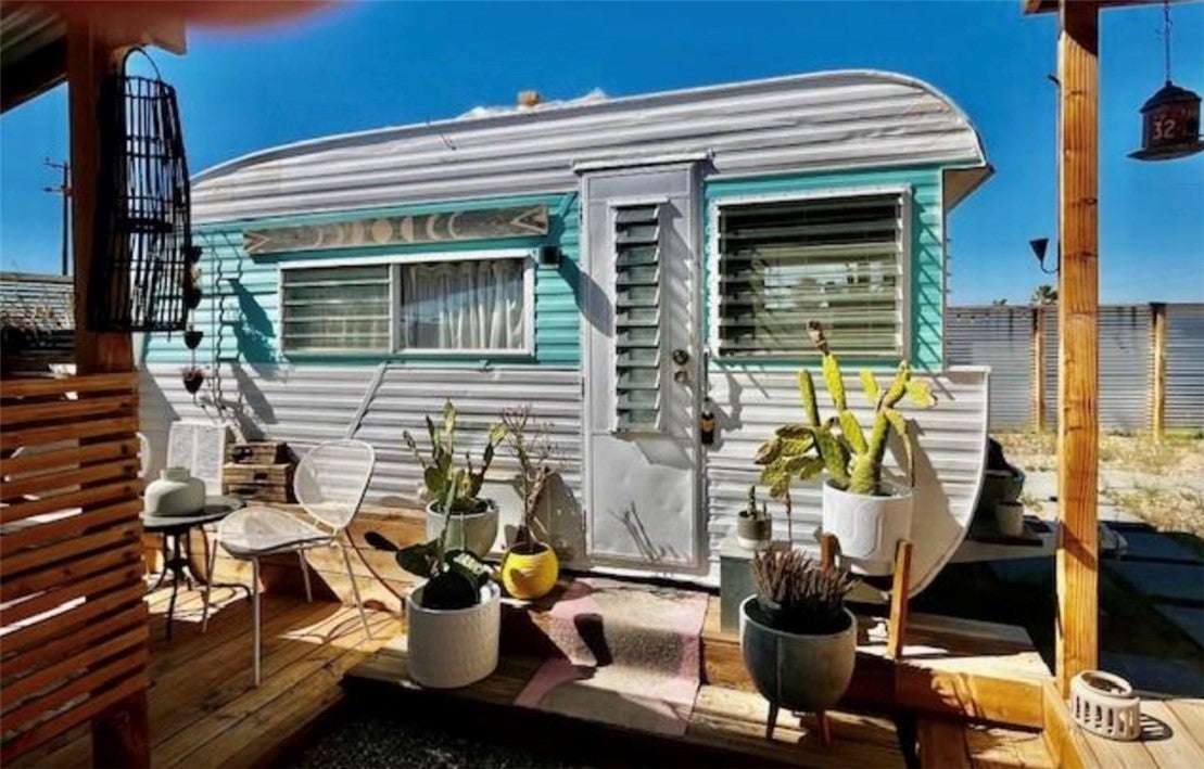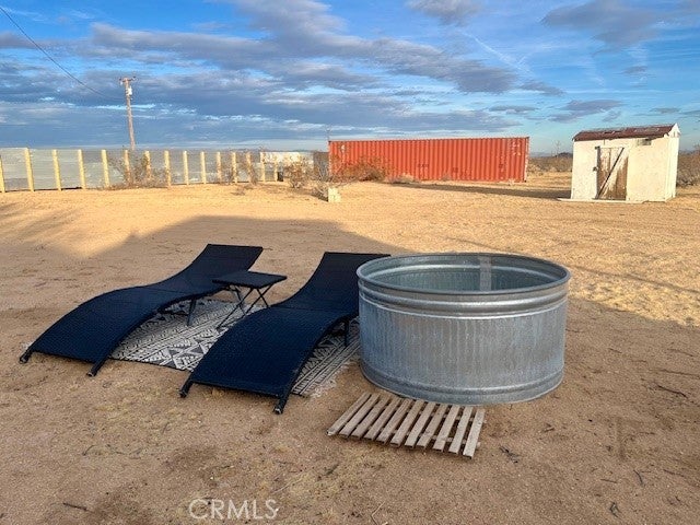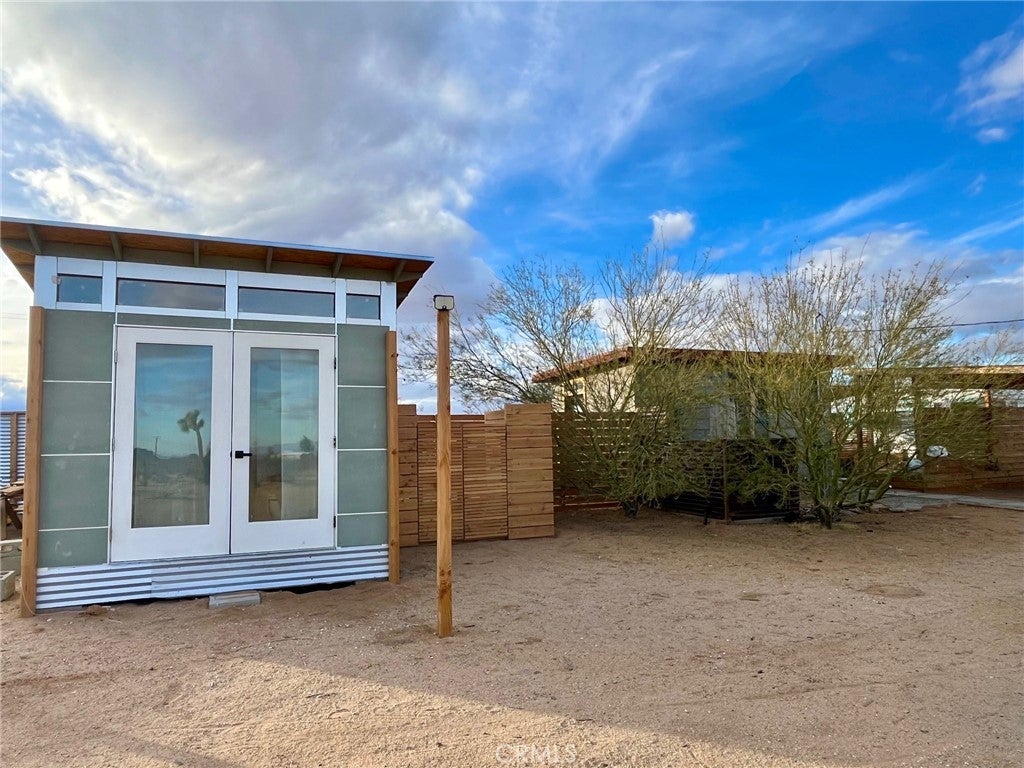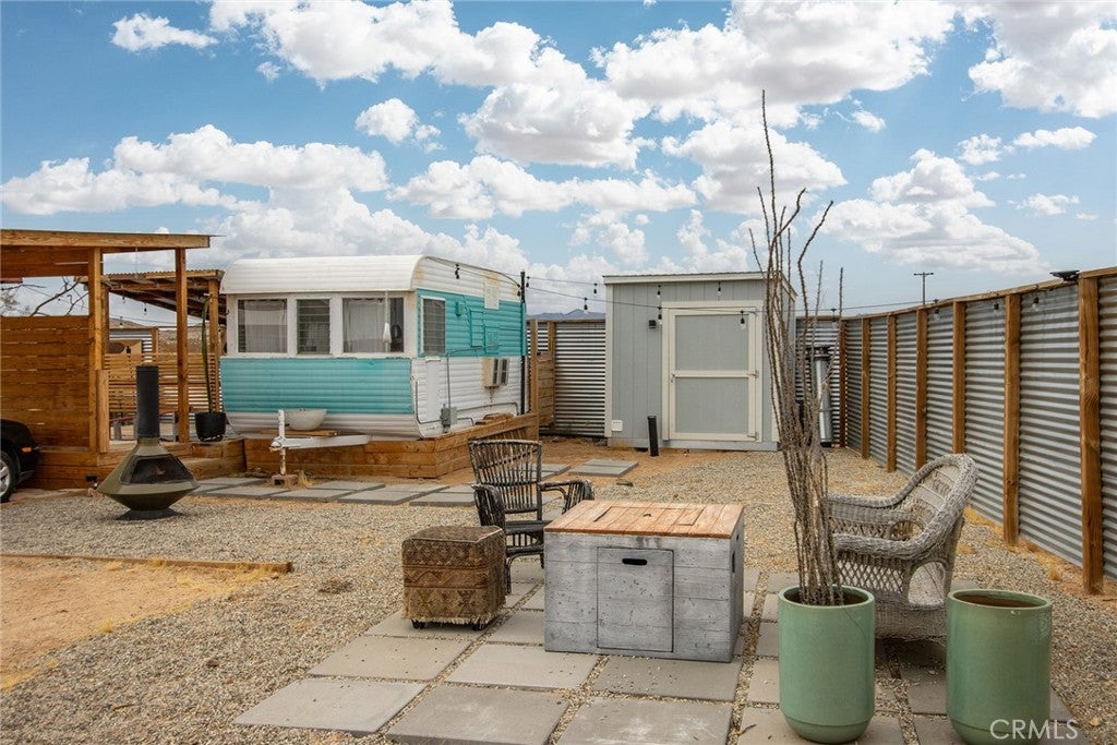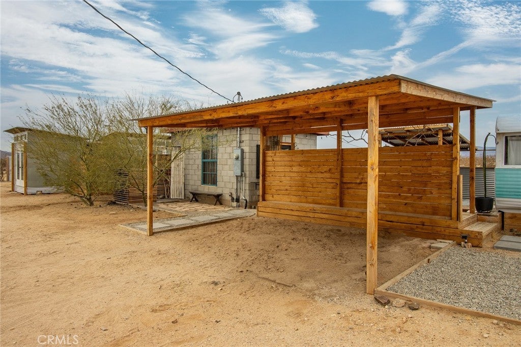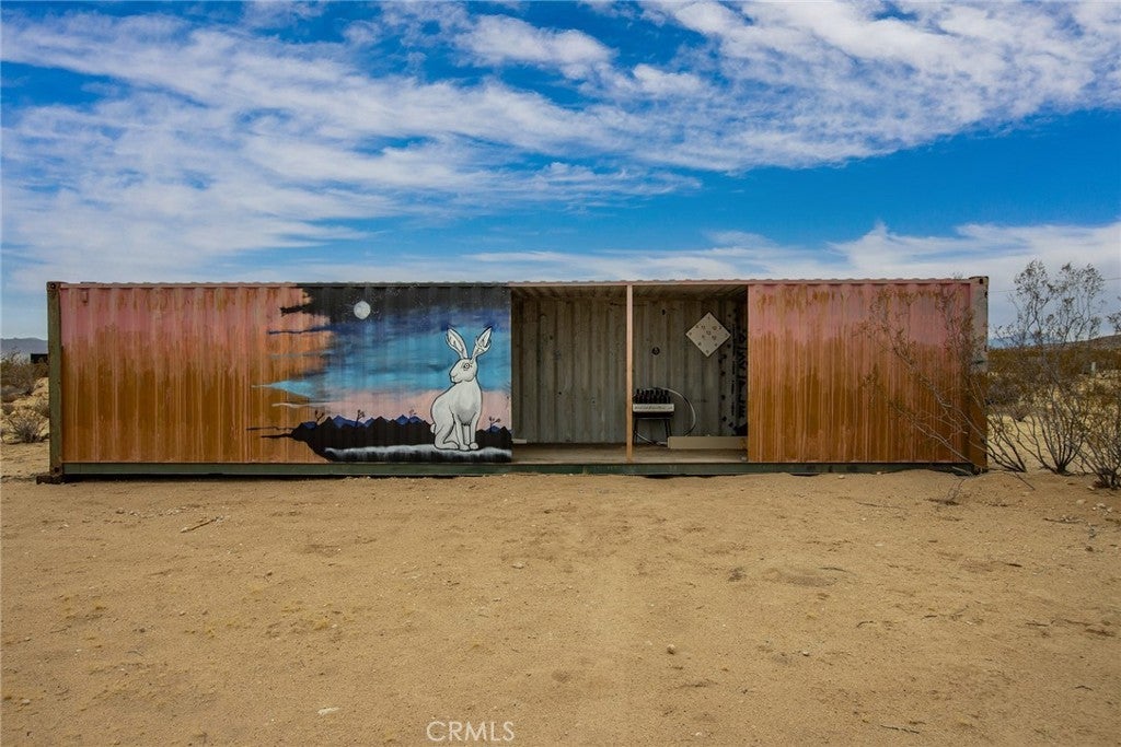 Tucked away on five private acres just ten minutes from downtown Joshua Tree, this hidden gem is a creative’s dreamscape — where art, nature, and possibility converge. What began as an original block-built recreational cabin has evolved into a thoughtfully reimagined desert retreat, blending vintage charm with modern comforts. The main cabin offers upgraded essentials including a new kitchen with stove, sink, refrigerator, and pantry, plus washer and dryer in the large shed hooked up and ready to go. The beginnings of a primary suite and full bath are in place, ready for your personal touch to bring the vision to life. Outdoors, inspiration flows freely. A covered patio serves as the perfect space for painting, gathering, or dining beneath the stars. An original 1960s camper has been transformed into a cozy guest suite with heating, cooling, and a fully remodeled functioning bathroom. Two large shipping containers expand the creative potential — one currently used for storage, the other waiting to become your next art studio, gym, or meditation space. With public water, a brand-new 200 AMP electrical panel, and room to grow, this property offers both comfort and endless opportunity. Whether you’re seeking a private retreat, an artist’s compound, or a place to build your future desert home, this is where your Joshua Tree story begins. Zoned Recreational Cabin (Rec Cabin), not Single Family Residential (SFR) This property is available for purchase CASH ONLY - will not qualify for a loan.