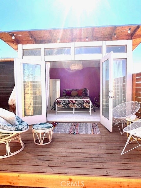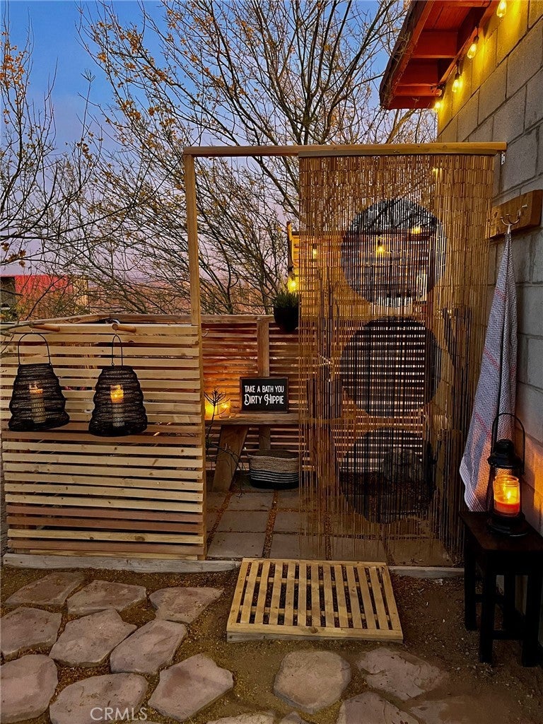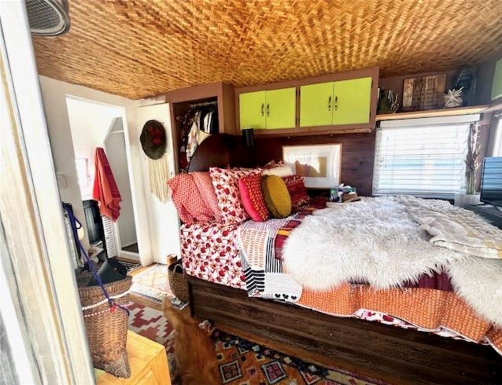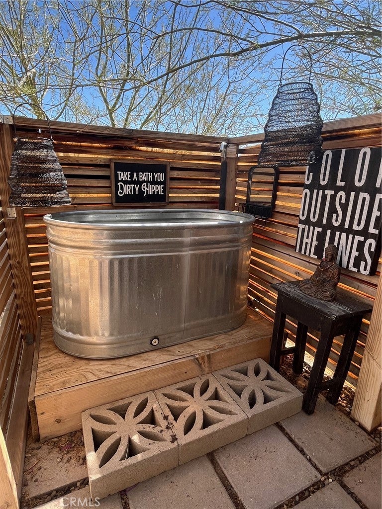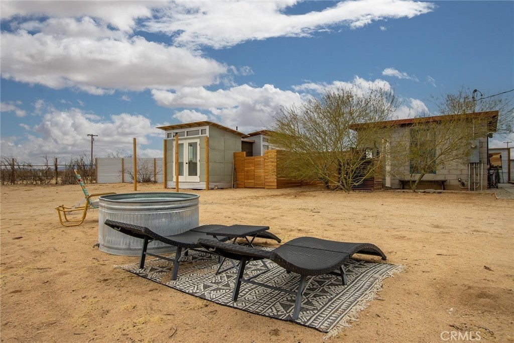 Tucked away on five private acres just ten minutes from downtown Joshua Tree, this hidden gem is a creative’s dreamscape — where art, nature, and possibility converge. What began as an original block-built recreational cabin has evolved into a thoughtfully reimagined desert retreat, blending vintage charm with modern comforts. The main cabin offers upgraded essentials including a new kitchen with stove, sink, refrigerator, and pantry, plus washer and dryer in the large shed hooked up and ready to go. The beginnings of a primary suite and full bath are in place, ready for your personal touch to bring the vision to life. Outdoors, inspiration flows freely. A covered patio serves as the perfect space for painting, gathering, or dining beneath the stars. An original 1960s camper has been transformed into a cozy guest suite with heating, cooling, and a fully remodeled functioning bathroom. Two large shipping containers expand the creative potential — one currently used for storage, the other waiting to become your next art studio, gym, or meditation space. With public water, a brand-new 200 AMP electrical panel, and room to grow, this property offers both comfort and endless opportunity. Whether you’re seeking a private retreat, an artist’s compound, or a place to build your future desert home, this is where your Joshua Tree story begins. Zoned Recreational Cabin (Rec Cabin), not Single Family Residential (SFR) This property is available for purchase CASH ONLY - will not qualify for a loan.