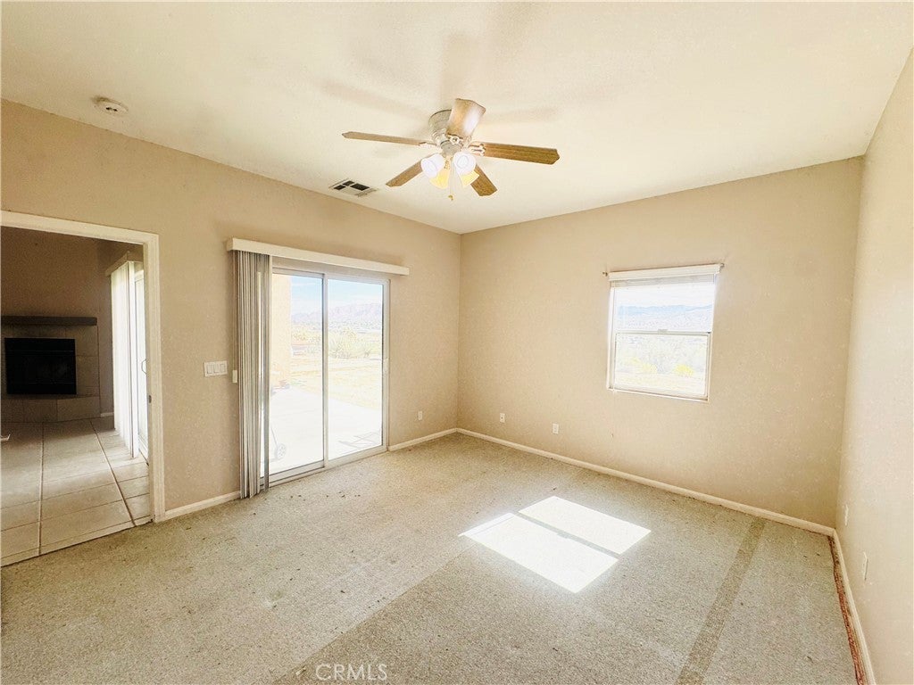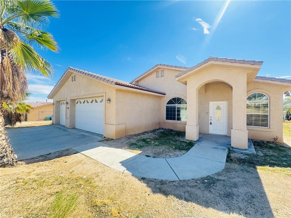 Price Reduction: Price Reduction: With this price reduction carpet allowance may be given. Your Desert View Home in Desirable Western Hills Estates! Welcome to 57627 Old Mill Rd, a spacious 3-bedroom, 2-bath home in one of Yucca Valley's most sought-after neighborhoods. Step inside to an open-concept living area featuring vaulted ceilings, easy-maintenance tile flooring, and a cozy fireplace. The large kitchen flows seamlessly into the living space, offering ample cabinet storage, granite-style countertops, white appliances, and a breakfast bar perfect for casual dining The home includes three generous bedrooms.Primary Bedroom features a large closet and a sliding glass door providing private access to the yard. The property's exterior is a true highlight. An attached three-car garage provides abundant room for vehicles, hobbies, and storage. The expansive, private lot and offers breathtaking, panoramic views of the valley and surrounding mountains. This is a rare opportunity to own a home with this much potential in Western Hills Estates. Don't miss out! Schedule your private showing today
