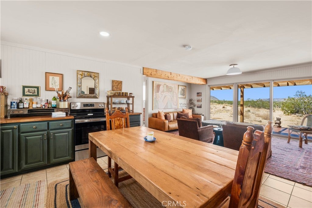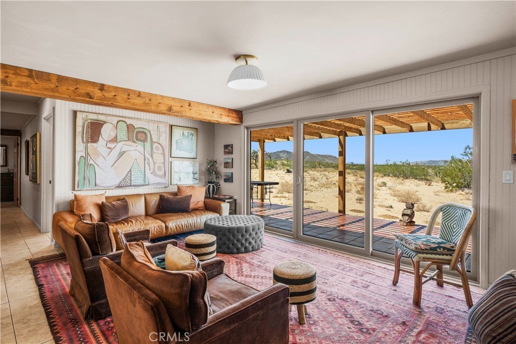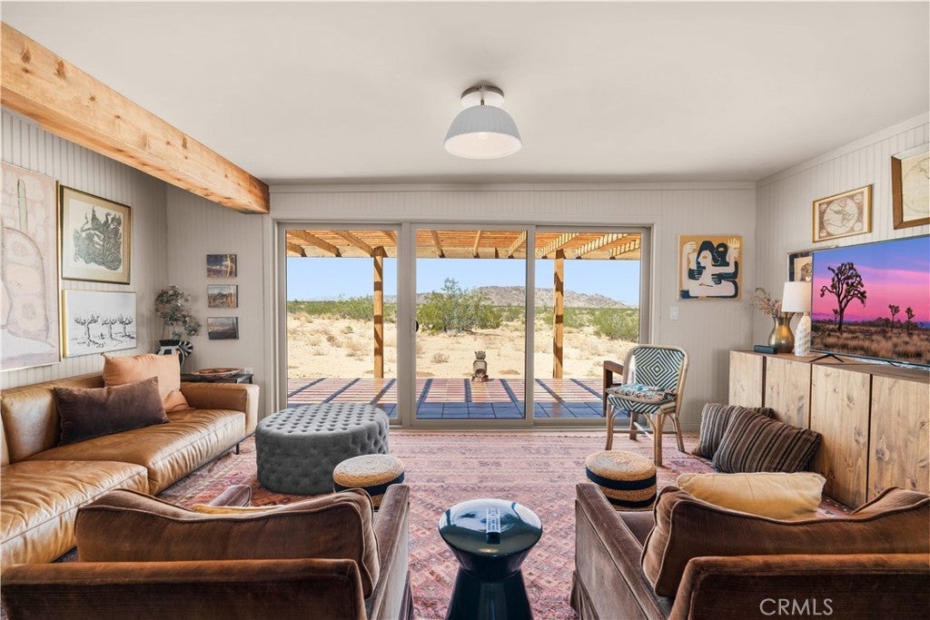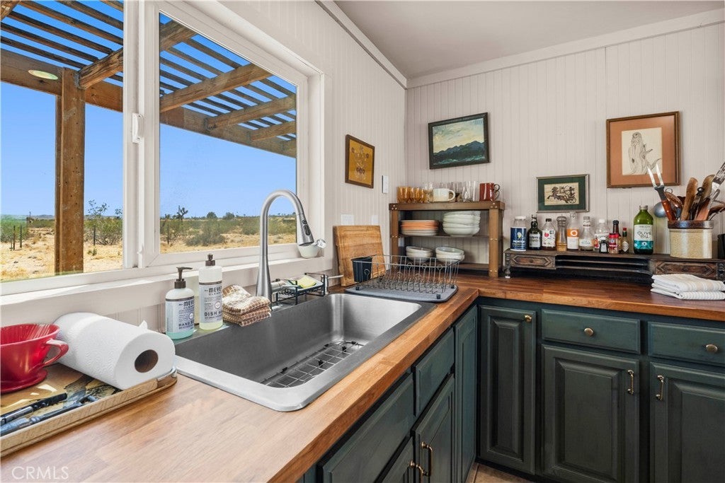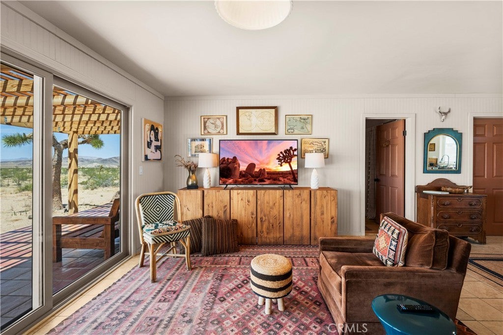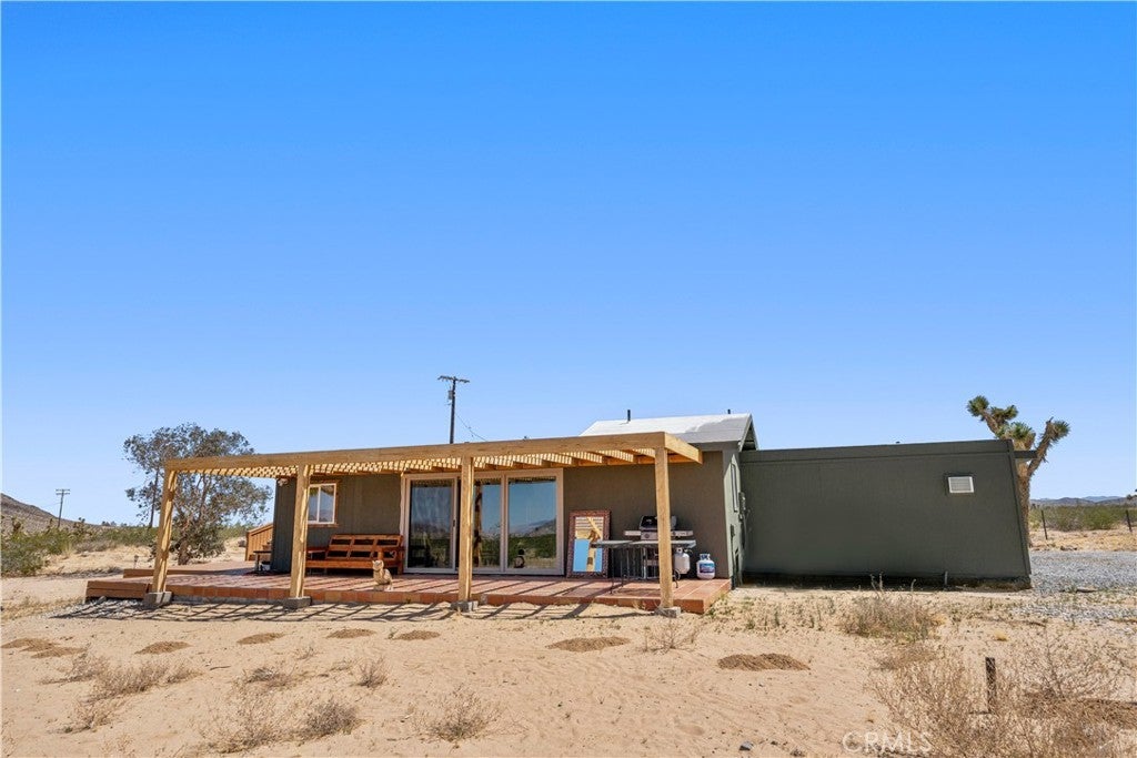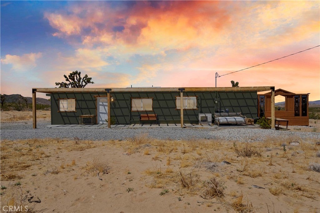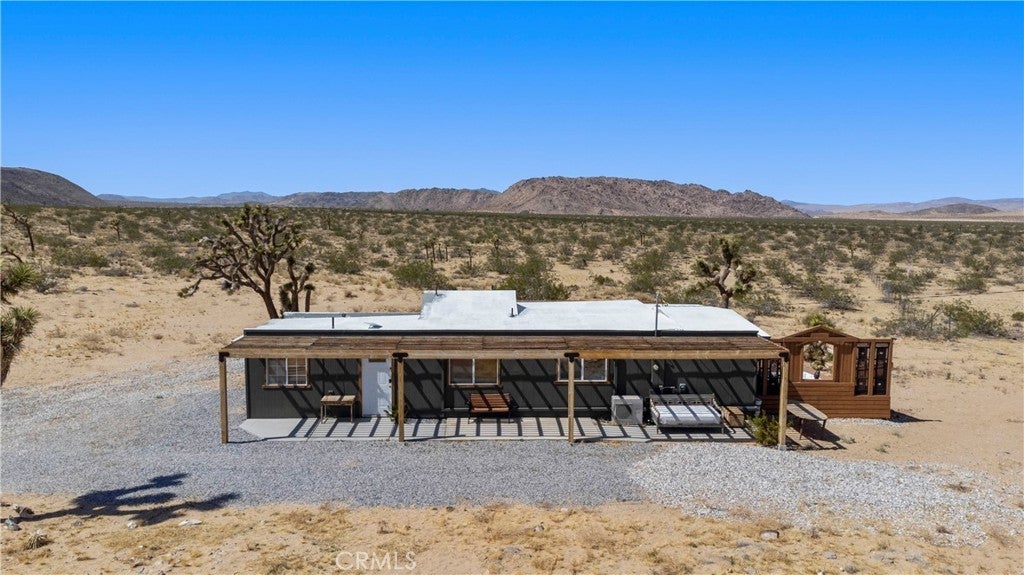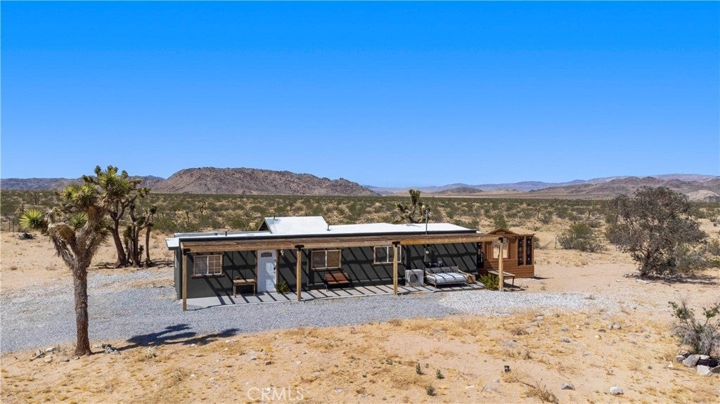 Step into your own private desert paradise with this unique, two bedroom (plus bonus room), one bath, fully-fenced five-acre property, offering peace, privacy, and endless natural beauty. Nestled in the heart of Landers, this charming home, provided fully furnished, provides direct access to miles of government-owned land — a rare opportunity to live next to an unspoiled, forever-wild setting. Hike nearby Goat Mountain or venture out to legendary Giant Rock from right outside your door. Just a short stroll in the other direction, you’ll find the Integratron, offering rejuvenating sound baths and a tranquil escape for the mind and body. Back at home, greet guests on the welcoming front porch or retreat to the private, hidden back porch — the perfect place to relax and take in the sweeping desert views and the seemingly never-ending wilderness that stretches out beyond your property. A brand new viewing deck and spa area are perfect for watching the sunset and stargazing at night. You will love watching the sunrise from the Saltillo-tiled patio. Originally built in 1958 and thoughtfully expanded over the years, this home has been recently updated and remodeled with modern touches. The spacious layout offers plenty of room for relaxation and enjoyment, whether you’re entertaining or seeking solitude. With its unparalleled access to nature, modern conveniences, and boundless potential for customization, this is Landers at its finest. Whether you're looking for an investment property (home is successful short-term rental), remote desert getaway or a place to settle into the tranquility of the desert, this home has it all.