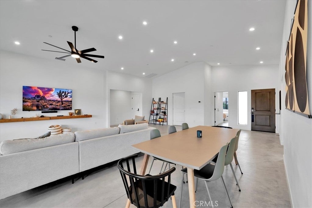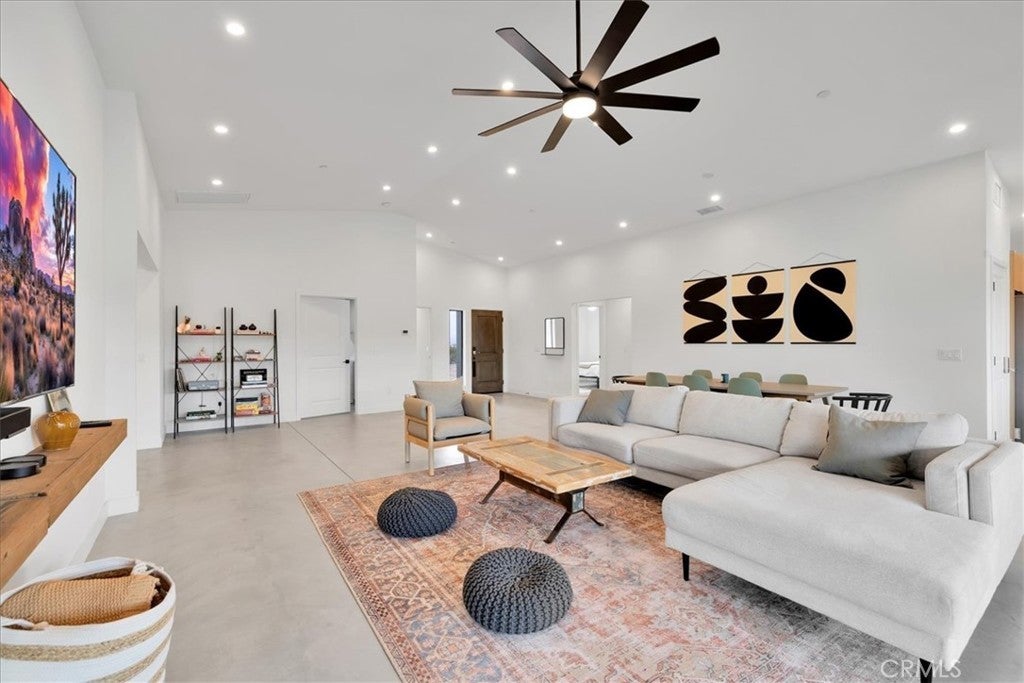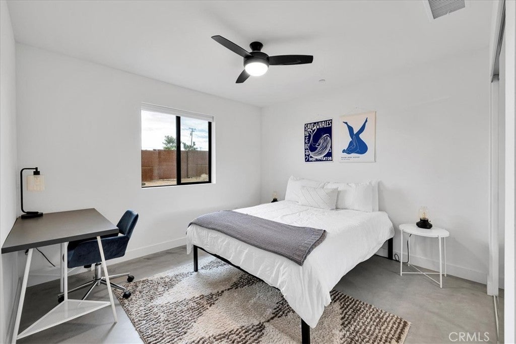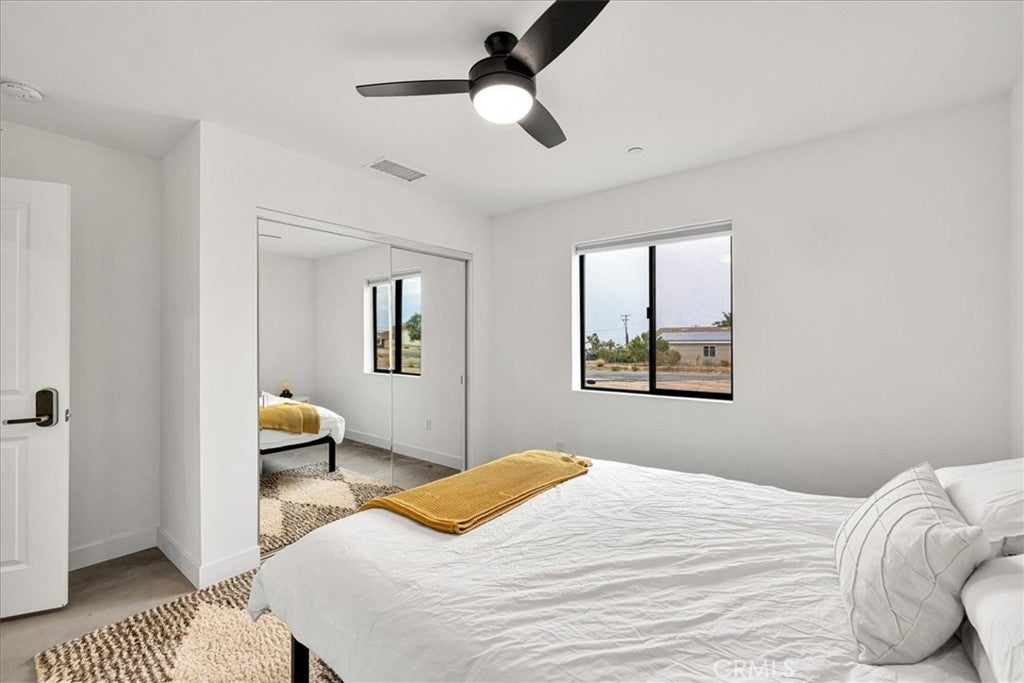 Stunning 4-Bedroom, 2-Bath Home on the Mesa in Yucca Valley! Set on a desirable corner lot with over half an acre of land, this 2022-built home offers the perfect blend of modern comfort and desert charm. Featuring 1,902 sq. ft. of open living space, soaring ceilings, and polished concrete floors throughout, this property is designed with both style and functionality in mind. The heart of the home is the expansive kitchen, complete with quartz countertops, stainless steel appliances, and a generous island that flows seamlessly into the spacious living room—ideal for hosting family and friends. Each of the four bedrooms offers plenty of room to make your own, while the primary suite is a true retreat with high ceilings, double vanity sinks, a huge walk-in closet, and a spa-like bathroom. Additional highlights include central heating and A/C, an indoor laundry room, and a covered back patio—perfect for enjoying peaceful mornings or relaxing evenings under the desert sky. This move-in ready home checks every box. Don’t miss your chance to own a modern desert oasis in beautiful Yucca Valley. Schedule your showing today!