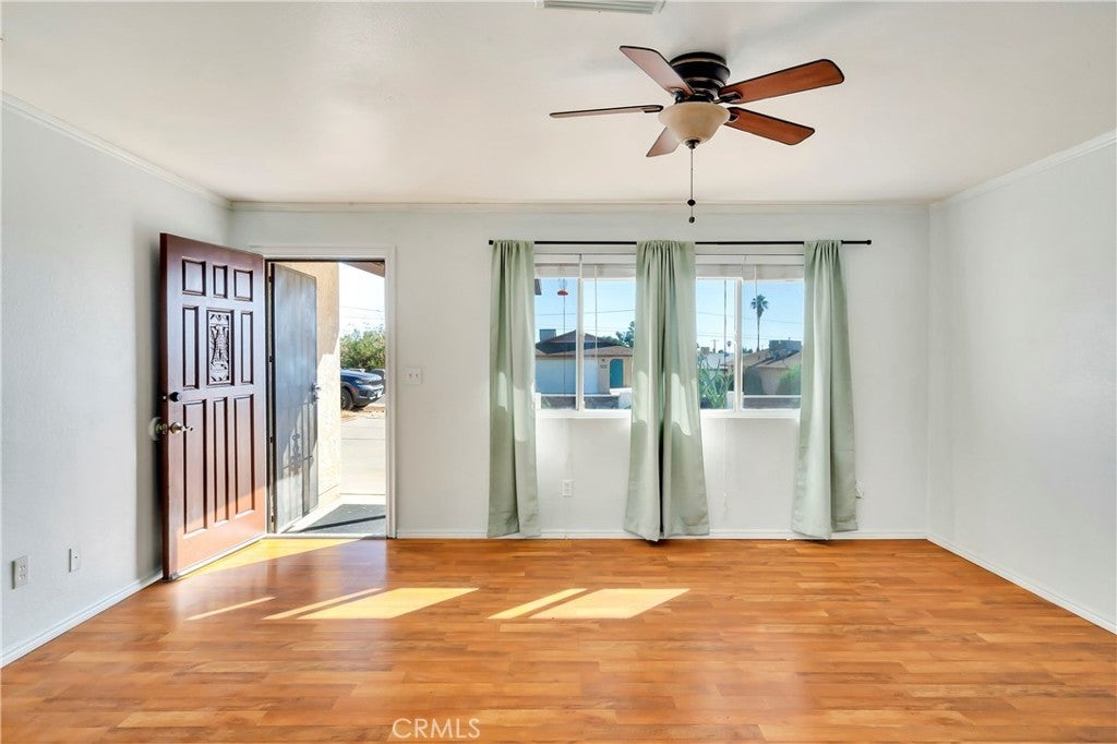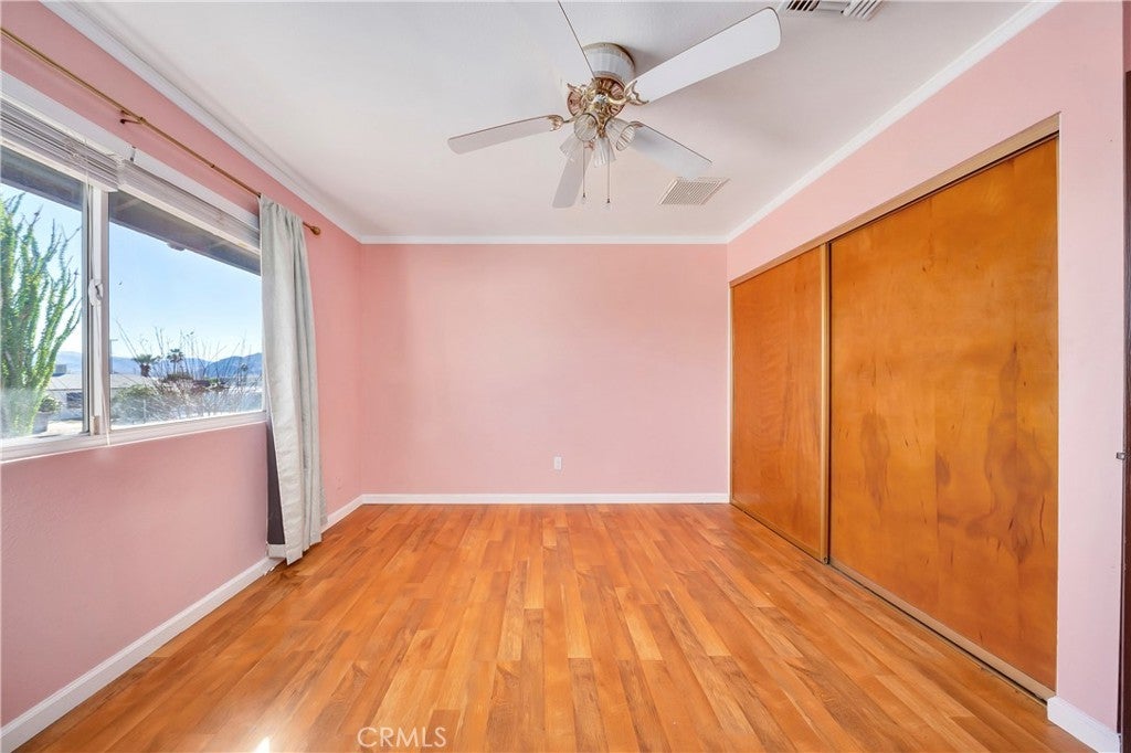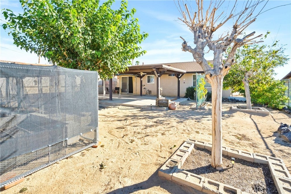 Welcome to your charming home! This delightful two-bedroom, one-bath residence in the sought-after Chocolate Drop area of 29 Palms is ready for its next chapter. With its unique character and well-maintained condition, this property offers the perfect blend of comfort and affordability in today's competitive real estate market. Inside, you'll find stylish wood laminate and tile flooring throughout, adding a contemporary touch to the home. The newer roof, along with a recently installed water heater and refrigerator, ensures modern conveniences for everyday living. Step outside to your very own backyard retreat, featuring a spacious covered patio that's perfect for gardening and outdoor relaxation. The fenced backyard provides privacy and a safe space for pets or children to play. Located on a quiet street in a rapidly growing neighborhood, this property is just minutes from the entrance to Joshua Tree National Park, Downtown 29 Palms with its expanding array of shops and amenities, and the Marine Base. Plus, you're only an hour away from the vibrant atmosphere of Palm Springs. This home is the ideal starter opportunity, investment, or primary residence! Don’t miss the chance to explore this special property—schedule your showing today!