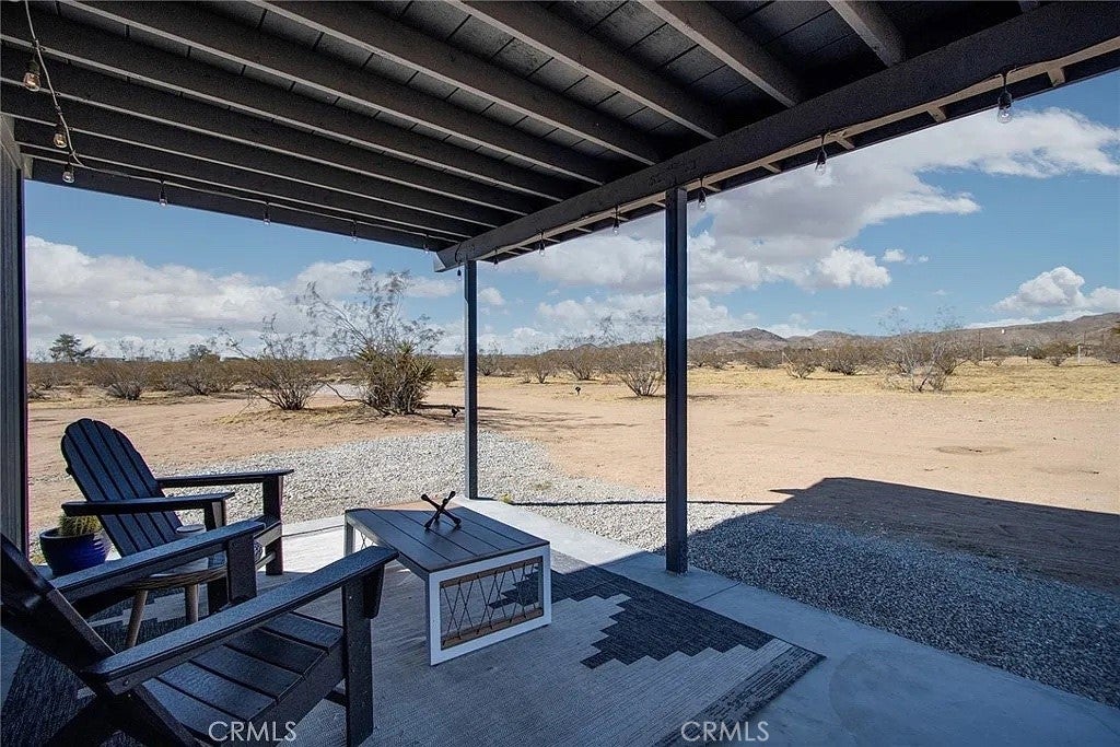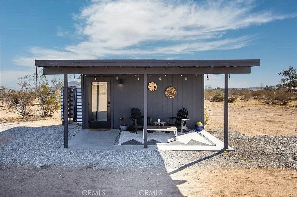 Welcome to your perfect desert getaway! Beautifully remodeled 2-bedroom, 1-bath home with bonus detached studio, offering a peaceful escape with modern style and comfort. Nestled on a massive 5-acre lot, the property also features a fully covered concrete patio and a cowboy tub, complete with a built-in filtration system and outdoor shower. Relax, unwind, and enjoy outdoor desert living at its finest. Also included is a charming 1-bedroom detached studio---perfect for visitors or extra income potential. Just a short jaunt from Yucca Valley and Joshua Tree--don't miss out on this opportunity to own your desert retreat!