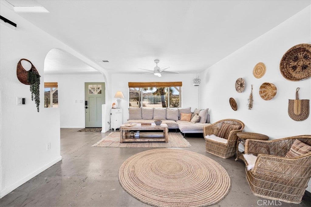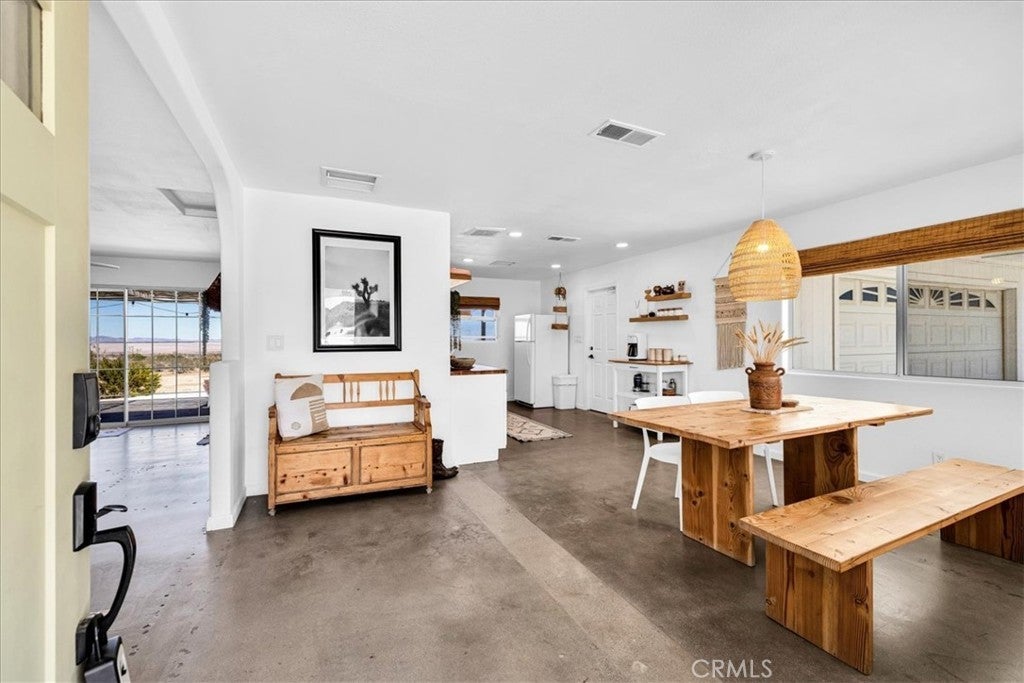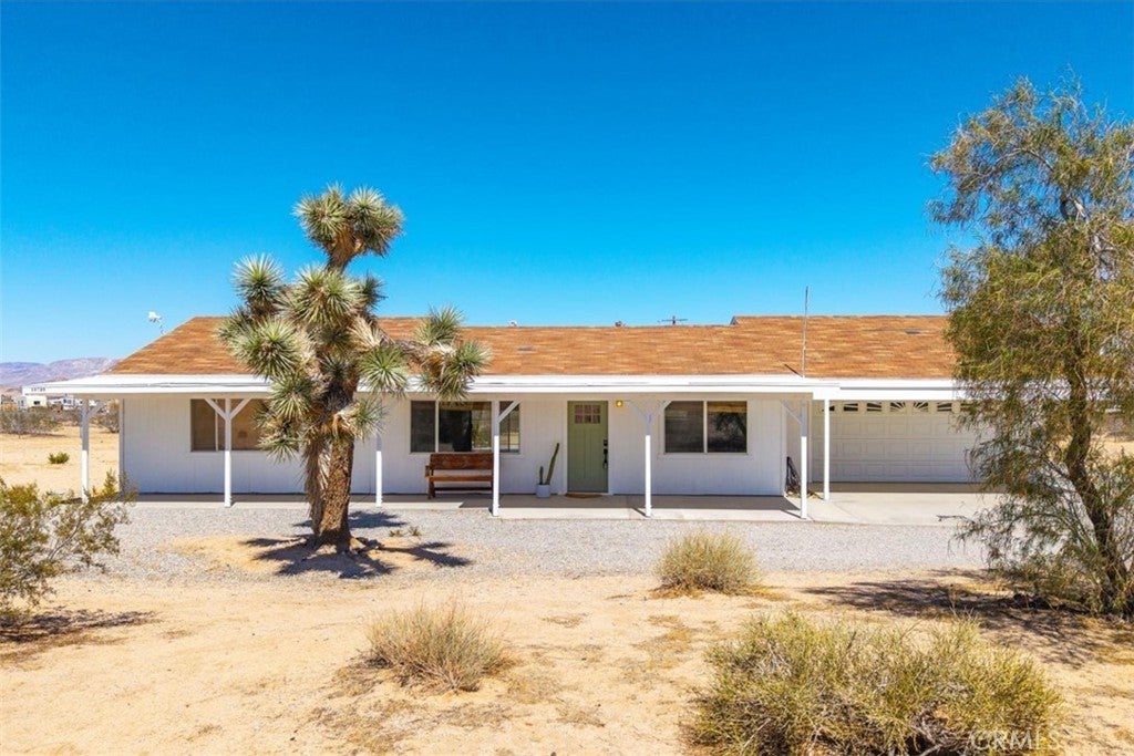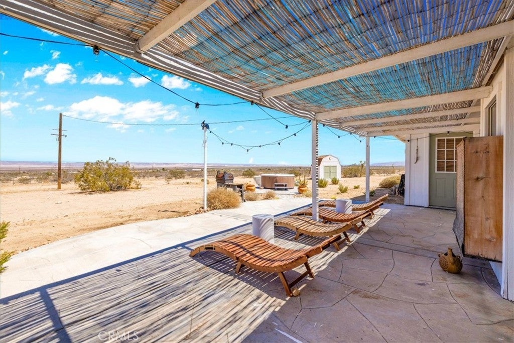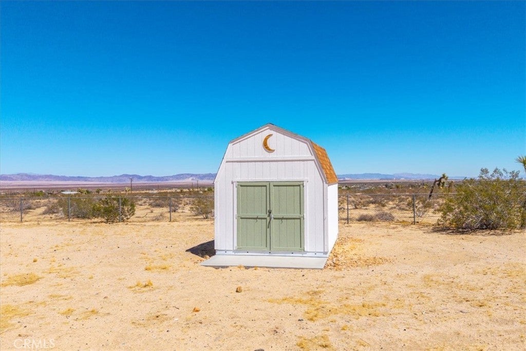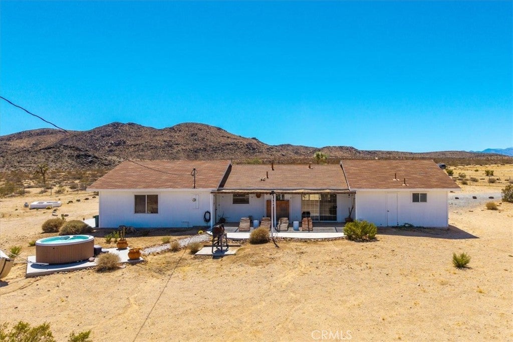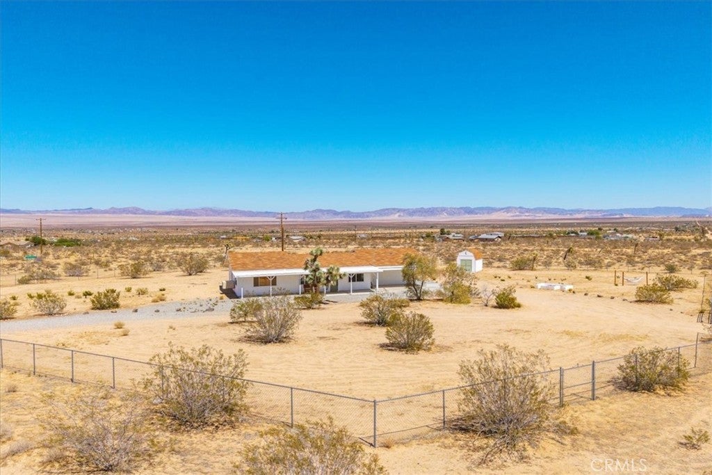 Tucked away in the peaceful expanse of the Mojave, Moonstone Mesa is a fully remodeled, fully furnished desert gem offering a rare blend of privacy, modern comfort, and iconic High Desert beauty. This stunning 2-bedroom, 2-bathroom home is situated on just over 2 acres of fully fenced land, directly adjacent to more than 100 acres of untouched Bureau of Land Management (BLM) land, ensuring uninterrupted views, total seclusion, and a direct connection to the raw beauty of the surrounding landscape. Thoughtfully redesigned from the inside out, the home features a remodeled kitchen with warm custom woodblock countertops with a clean, minimalist aesthetic that complements the desert surroundings. Both bathrooms have been tastefully updated with stylish, modern finishes, and the freshly painted eaves reflect the home’s excellent maintenance and turnkey condition. Step outside and the magic continues. A custom-built patio cover offers shade and comfort for outdoor lounging, while the spa provides a relaxing place to soak under the stars. A custom-built shed expands your options—perfect for a creative studio, extra sleeping space, or a private retreat. Enjoy sweeping mountain views by day and some of the clearest night skies in the region, ideal for stargazing or simply unwinding by a fire pit. The property also includes a spacious attached two-car garage along with curated desert-inspired decor included in the sale—making this a true turnkey opportunity, whether you're seeking a primary residence, vacation home, or income-generating investment. Currently operating as a successful short-term vacation rental in the High Desert, Moonstone Mesa has a proven track record and outstanding guest reviews. Its strategic location—just minutes from Joshua Tree, Joshua Tree National Park, Pioneertown, Yucca Valley, and a short scenic drive to Palm Springs—makes it both a sought-after rental and a peaceful private sanctuary. Whether you're drawn to the tranquility of desert living or the potential of a well-established Airbnb, Moonstone Mesa offers a rare opportunity to own a piece of the High Desert dream—fully furnished, beautifully remodeled, and ready for your next adventure.