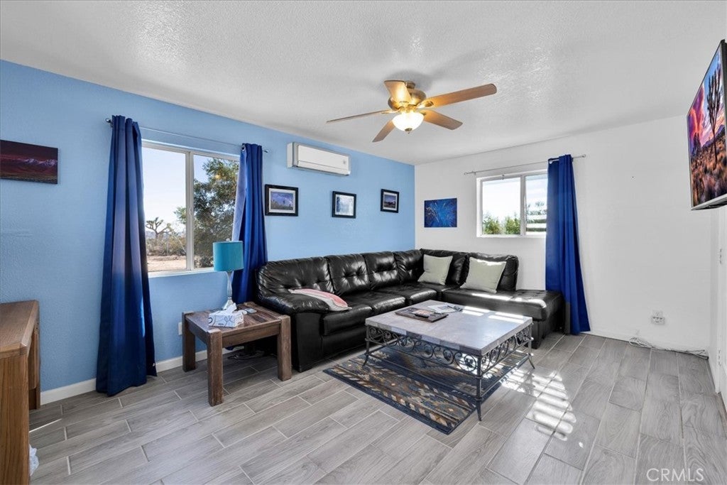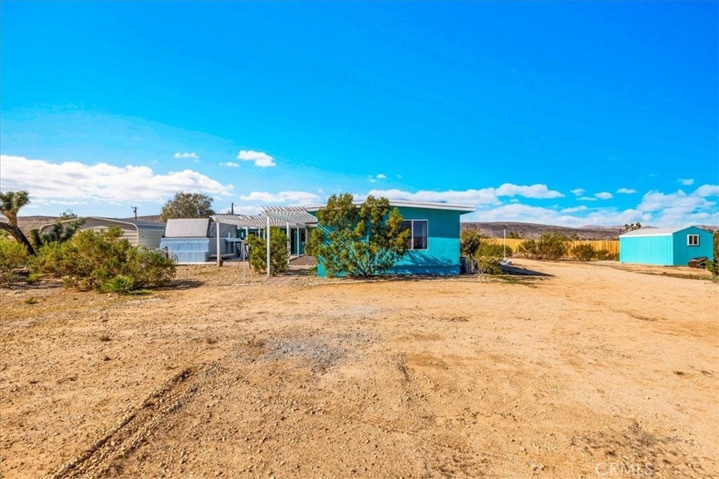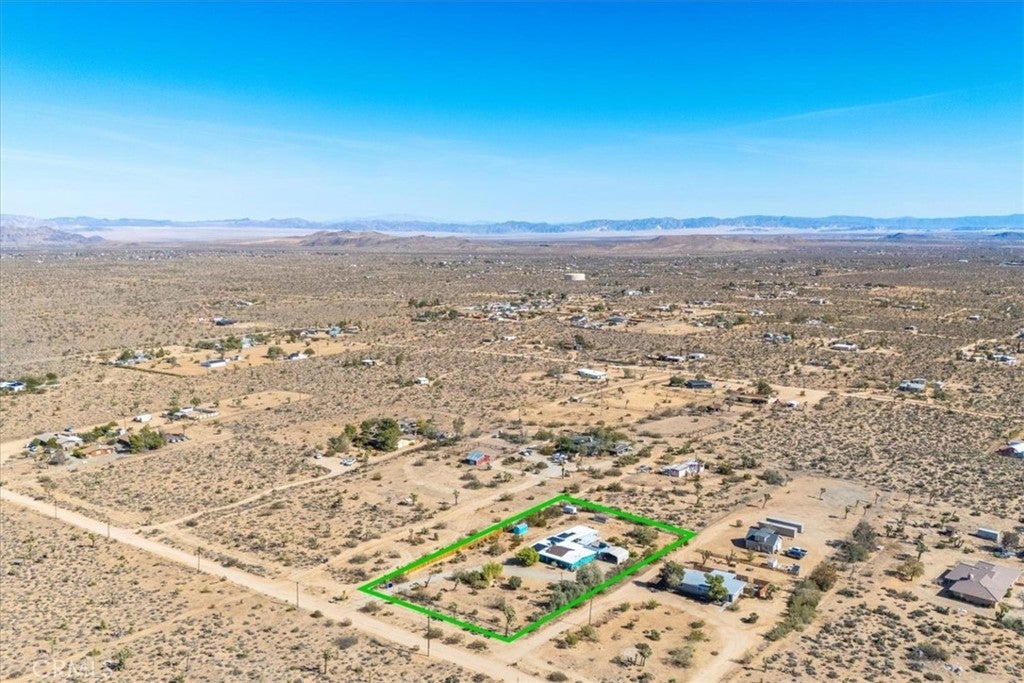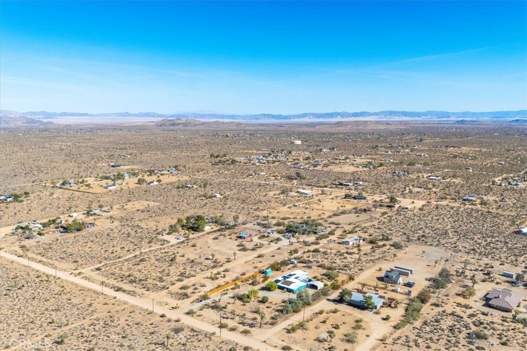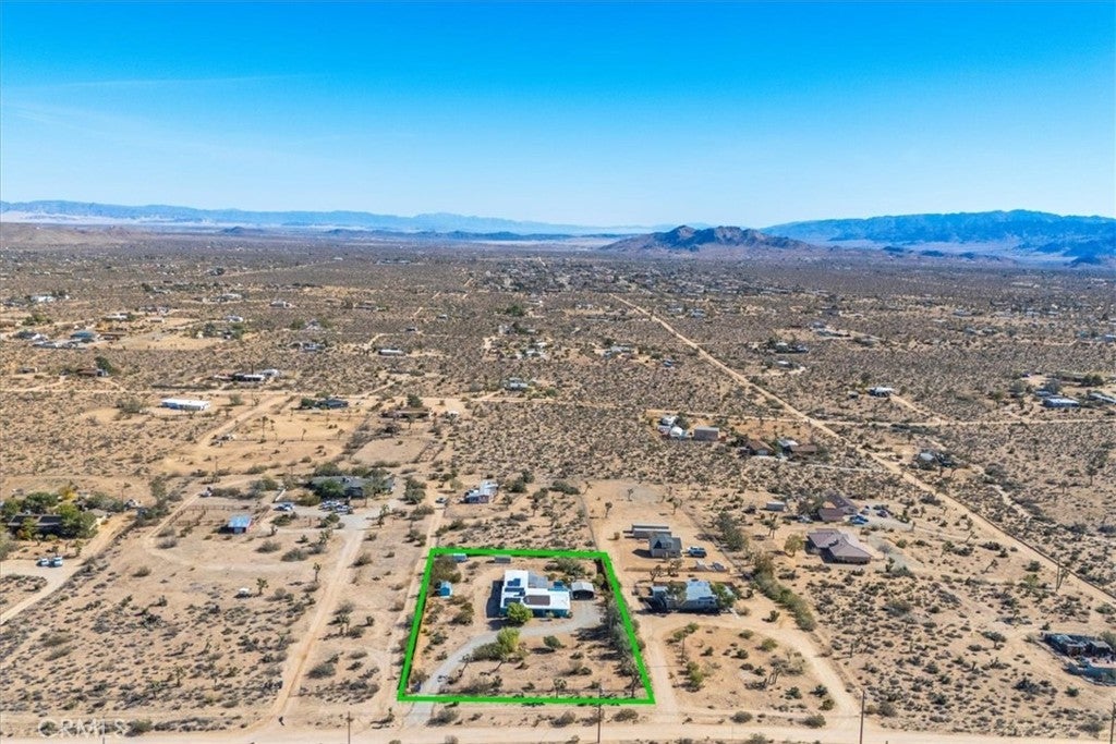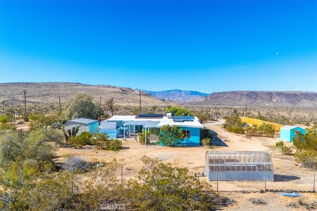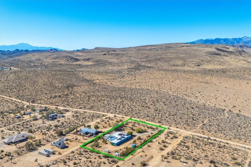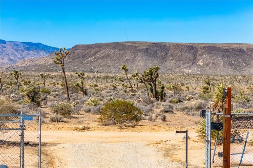 Perched on an acre overlooking the dramatic landscapes of Pipes Canyon and the volcanic mesas of Sand to Snow National Monument, this exceptional 4 bedroom, 4 bath POOL HOME situated high on Yucca Mesa blends privacy, comfort, and desert beauty. Fully fenced with a solar-powered remote gate and lush mature landscaping, the home offers both seclusion and convenience in one of the area’s most scenic settings. Perfect for multi-generational living, the property features a 3 bedroom, 3 bath main house with a 1 bedroom, 1 bath attached pool house/mother-in-law suite. The main house features a welcoming covered front porch perfectly positioned to take in sweeping canyon and mesa views. Inside, a spacious living room with high ceilings, a retro stone hearth with wood stove, and a bank of large windows brings the desert panorama indoors. The kitchen provides ample cabinet space, quartz countertops, and a tile backsplash, connecting seamlessly to a generous dining area ideal for gatherings. Two oversized primary bedrooms each offer a recently remodeled private ensuite bath with glass-doored, tiled walk-in showers. The third bedroom is comfortably sized, and the guest bath features its own glass-enclosed shower with a soaking tub. The attached pool house or mother-in-law suite adds flexibility, complete with its own bedroom, bathroom with tiled walk-in shower, comfortable living area, and kitchenette with tile counters and backsplash. Mini-splits ensure efficient zoned climate control. A dedicated laundry room sits conveniently between the main home and guest quarters, accessible from the back porch. Outdoor living shines here with an extensive back patio area, featuring an Endless Pool for exercise or relaxation. The property also includes a carport, greenhouse, and storage shed, and FULLY PAID SOLAR, completing this one-of-a-kind desert retreat. With its combination of spacious design, modern updates, and panoramic natural surroundings, this property is a rare find for those seeking the best of high desert living. Book a showing to see this beauty for yourself.